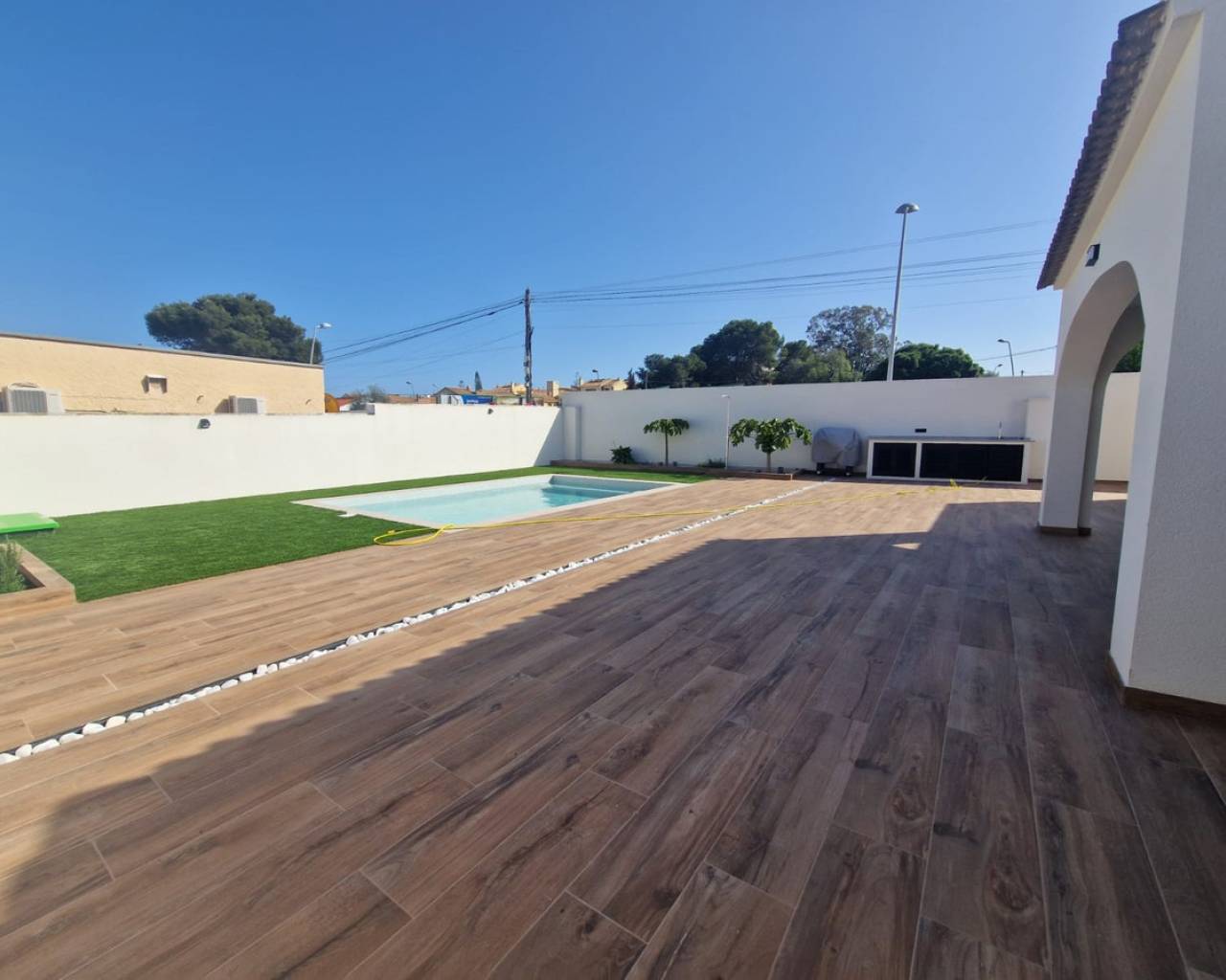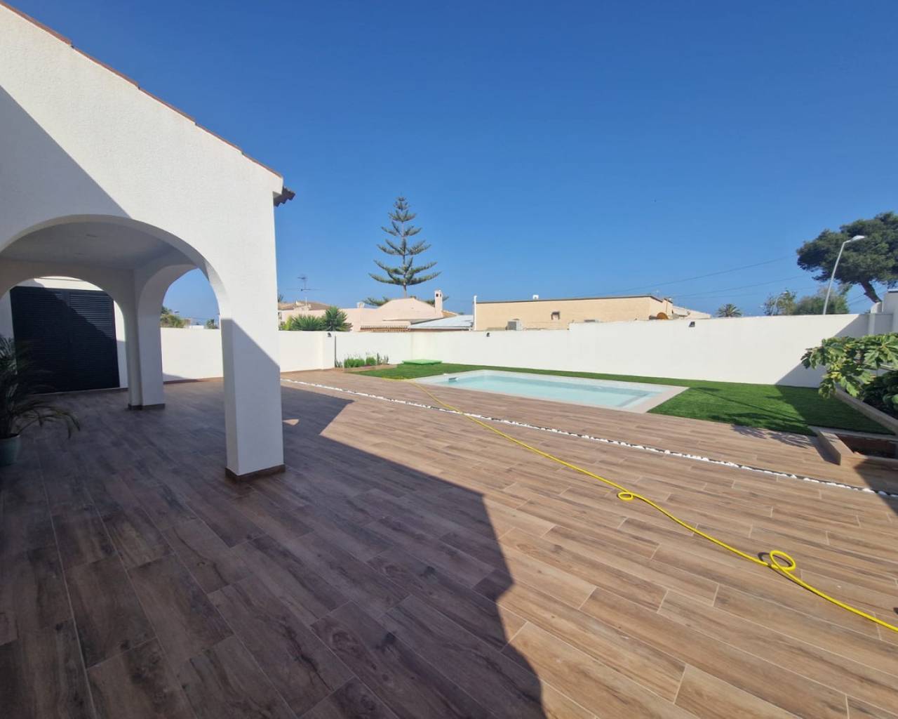Me complace presentarles esta maravillosa villa de obra nueva ubicada en Los Balcones, con 3 dormitorios y 2 baños. La villa cuenta con una hermosa piscina privada con un jardín de fácil mantenimiento, estacionamiento fuera de la carretera en el camino de entrada y el frente de la villa ofrece sombra y relajación con una terraza cubierta. Breve descripción de la propiedad: Se accede al amplio salón-comedor de planta abierta, con la moderna cocina independiente en la parte trasera. Unas puertas corredizas acristaladas conducen directamente a la zona de la piscina, ideal para recibir invitados. Al estar todos en una sola planta, los dormitorios y los baños se encuentran en la parte delantera, lo que facilita el acceso a una familia. Dispone de aire acondicionado en todas las estancias. Los Balcones es una zona residencial tranquila y consolidada, situada al sur de Torrevieja, en la Costa Blanca española, cerca de Punta Prima. Ofrece fácil acceso tanto a la N-332 como a la autopista AP-7 hacia los aeropuertos. Hay transporte público disponible, con servicios regulares de autobús. La cercana Laguna Salada de Torrevieja, famosa por su color rosado y sus beneficios para la salud, realza el atractivo de la zona. Ofrece una variedad de servicios, como supermercados, farmacias, bancos y el Centro Comercial Filton, con una amplia gama de tiendas. Los parques con zonas de juegos infantiles y las playas de Punta Prima y Torrevieja están a poca distancia en coche.