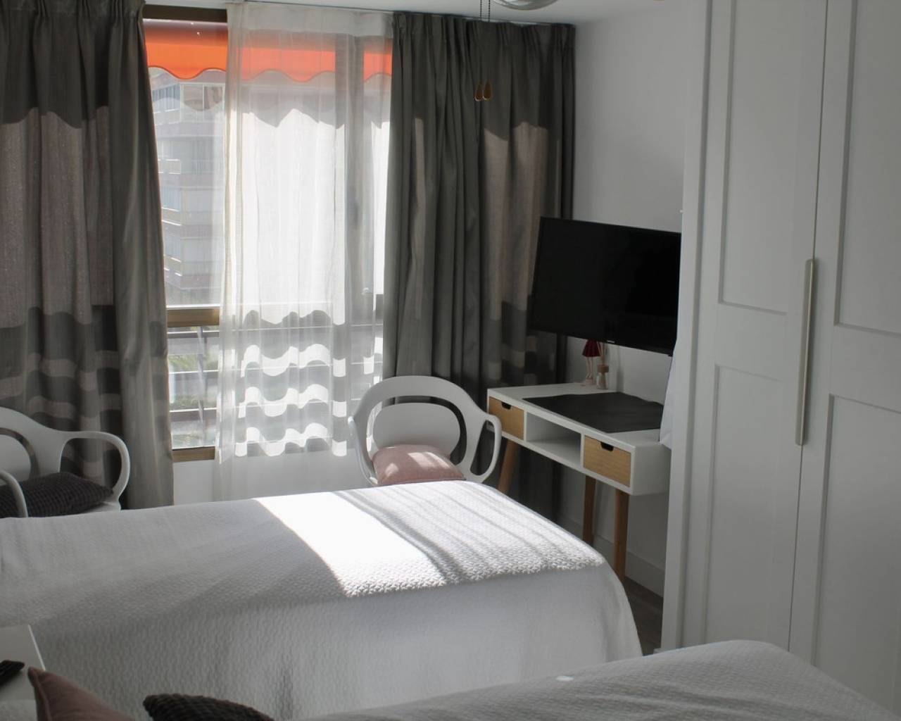 Apartamento Planta Media, Playa de San Juan, Costa Blanca. 2 Dormitorios, 2 Baños, Construidos 82 m². Posición : segunda línea de Playa. Orientación : Sur. Estado : Excelente. Piscina : Comunitaria. Climatización : Aire Acondicionado, A/A Caliente. Vistas : Mar. Caracteristicas : Terraza Cubierta, Ascensor, Armarios Empotrados, Cerca de Transporte. Muebles : Amueblada. Cocina : Equipada. Jardin : Comunitario. Seguridad : Recinto Cerrado. Aparcamiento : Privado. Servicios Públicos : Electricidad, Agua Potable, Teléfono, Gas. Categoría : Frente a la playa.