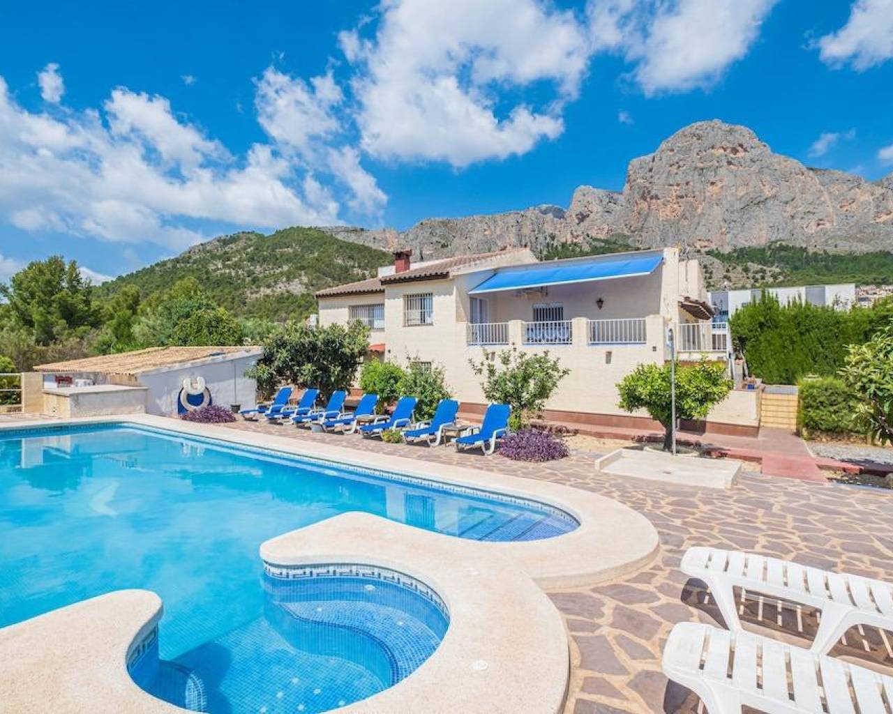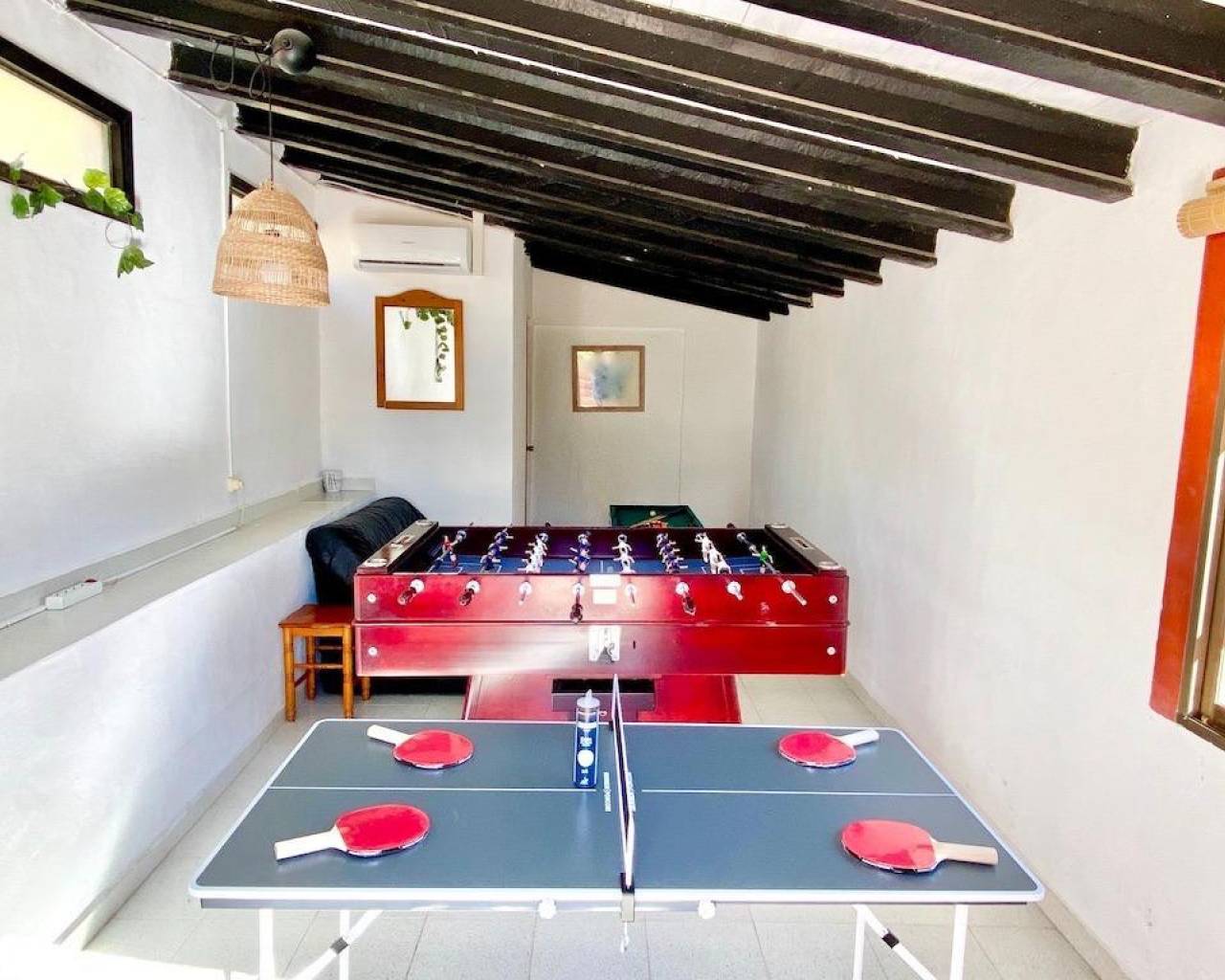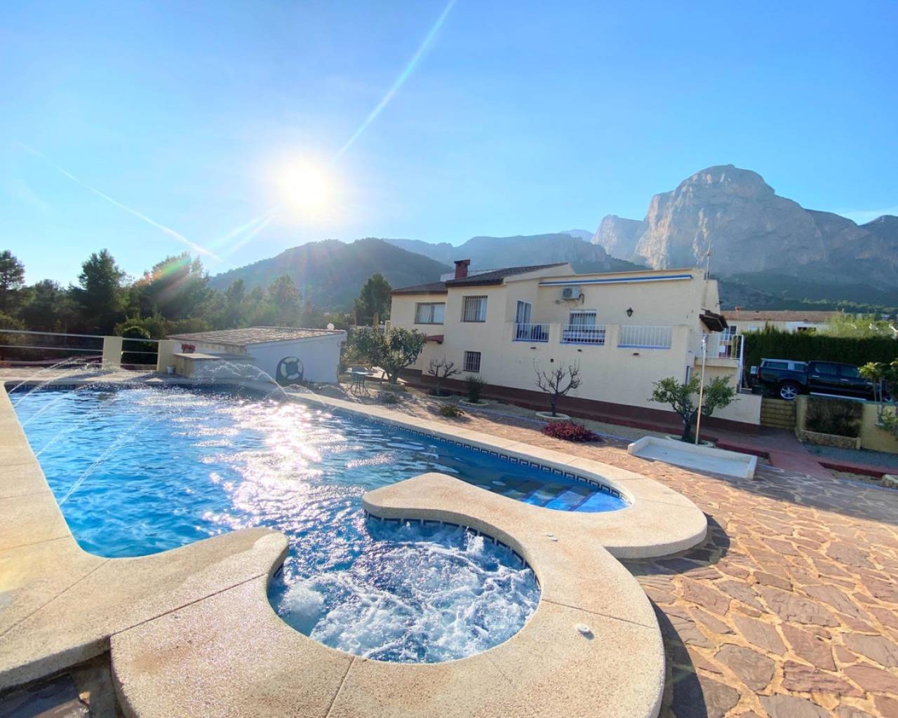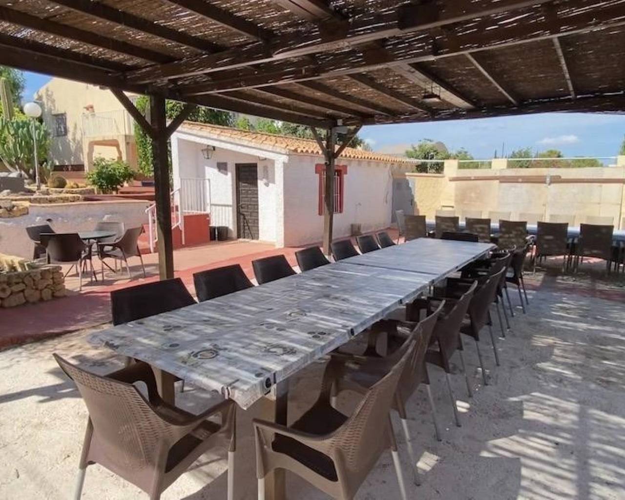 Esta propiedad tiene varias zonas y edificios y ofrece grandes posibilidades. La vivienda principal está dividida en varios dormitorios, baños, cocina amplia, salón comedor con estufa y una amplia terraza techada. En la planta baja hay dos dormitorios, un baño completo y trastero grande. En una esquina del chalet hay un trastero grande que se puede utilizar como taller. Hay varias máquinas de aire acondicionado con frío y calor en ambas plantas. Cerca de la casa principal hay una pequeña caseta con aseo y sala de juegos. Finalmente hay un mini chalet, con dormitorio, baño completo, salón y cocina americana, todo nuevo y con altas calidades. Esta vivienda está pensada para personas con dificultades de movimiento y tiene aire acondicionado con frío y calor. En la parcela soleada hay un parking grande para muchos coches, dividido en varias zonas. Hay dos espacios exteriores perfectos para comer y relajarse , zona de petanca, piscina, skatepark, barbacoa y una pista de tenis. La vivienda ofrece muchas posibilidades y los propietarios actuales están alquilando la vivienda para temporadas cortas. Aunque está cerca de varias nuevas promociones en obra, la sensación es de estar en el campo y hay mucha tranquilidad. Desde la vivienda se tienen todos los servicios a un par de minutos en coche.