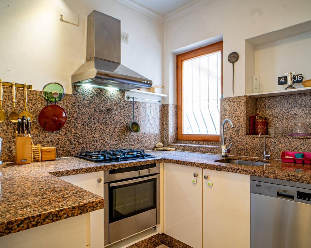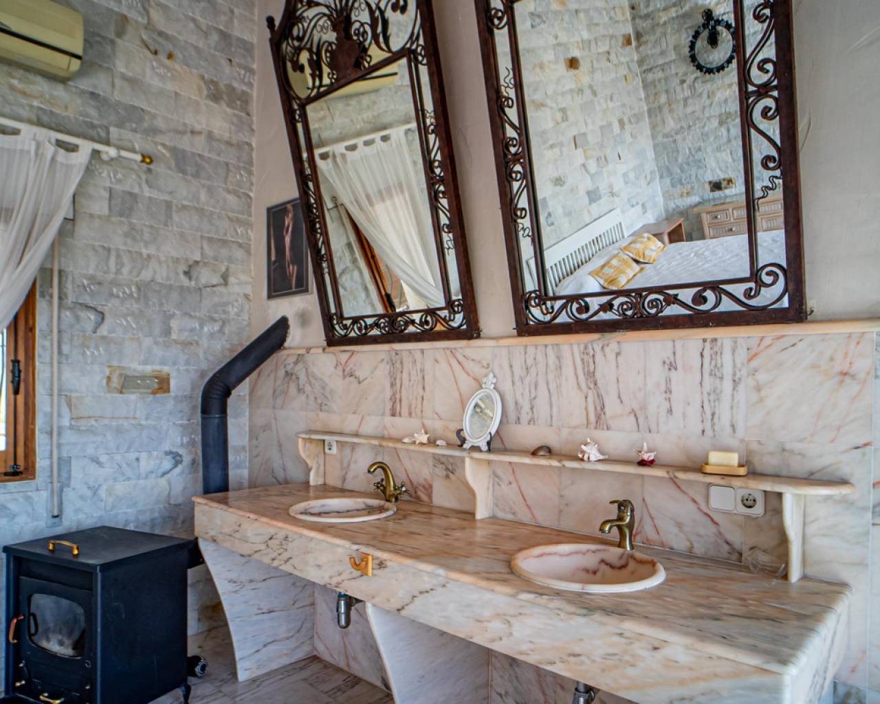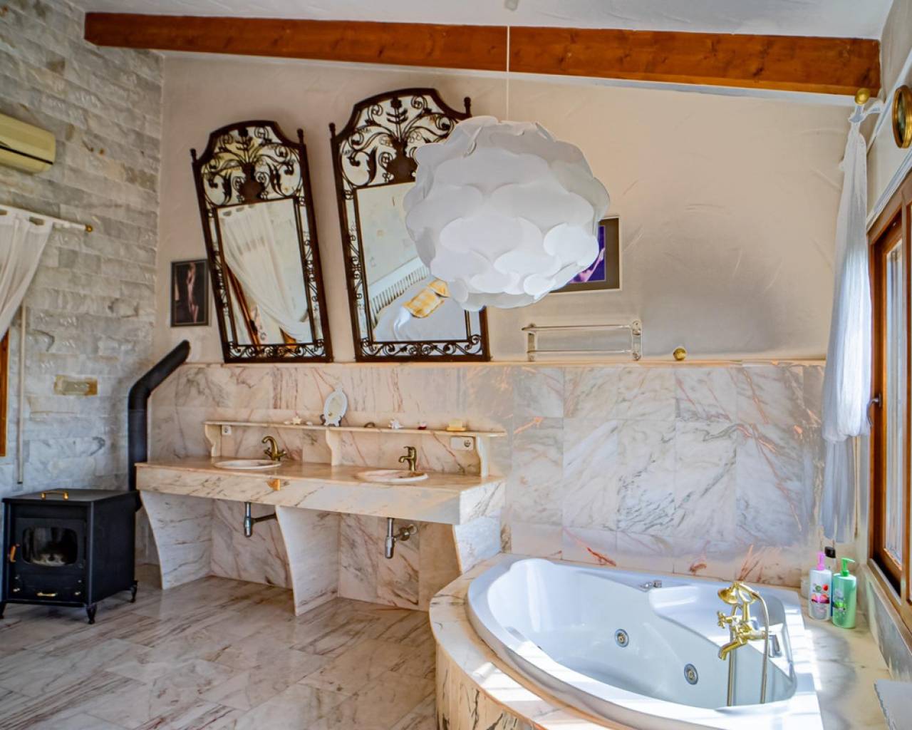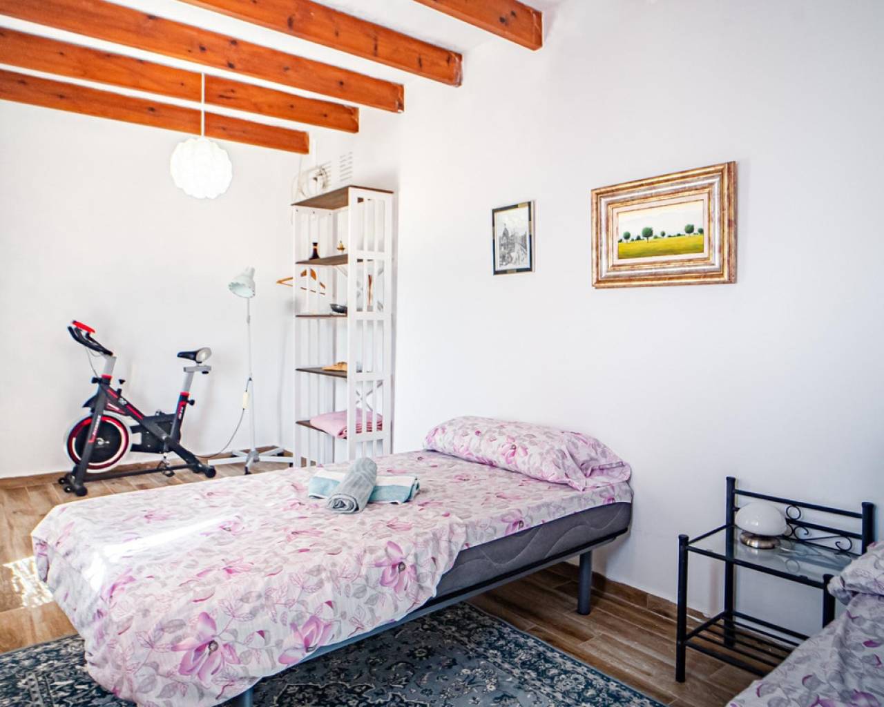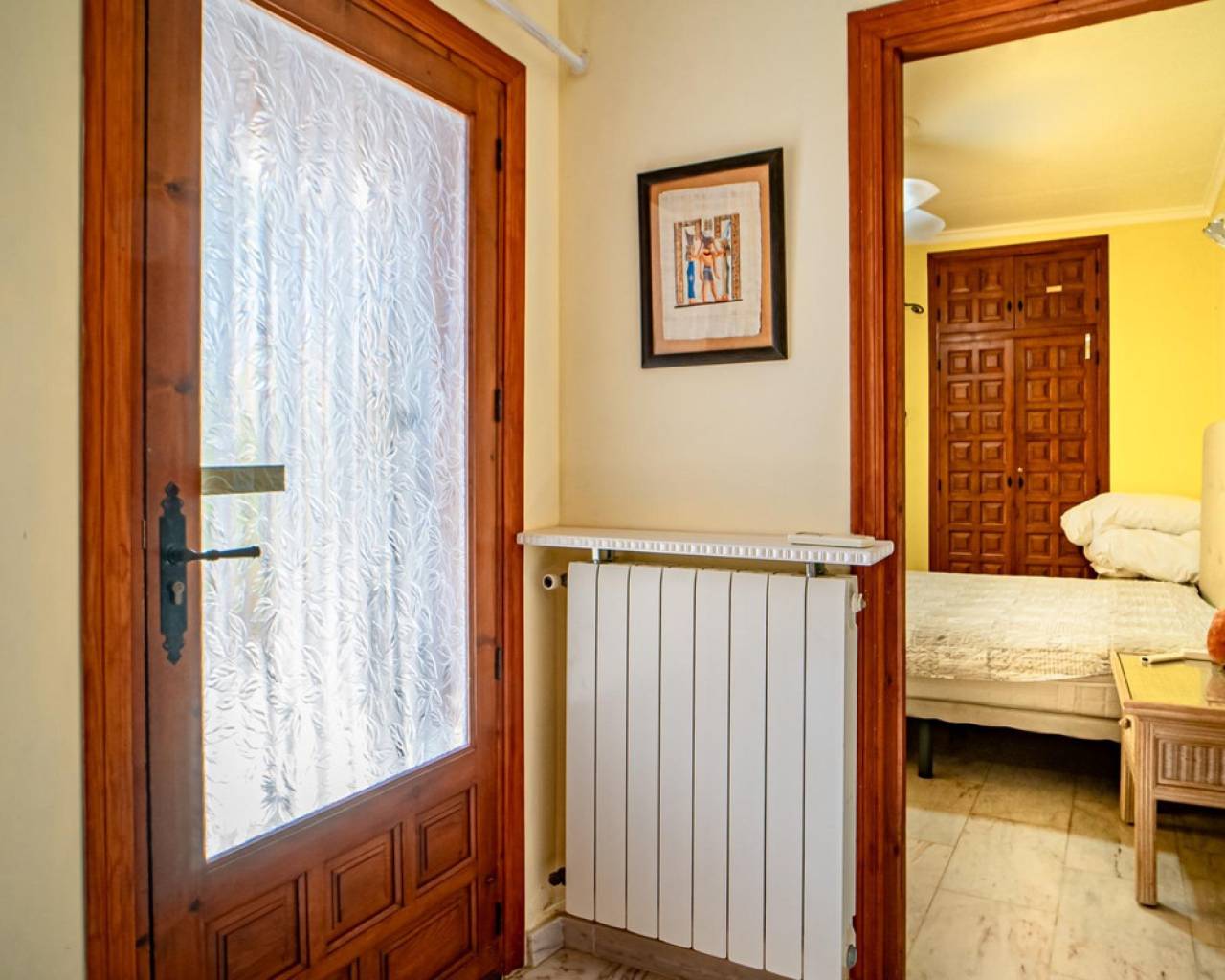 Este chalet situado al final de una calle tiene su entrada a través de un garaje grande de 93 m2, con dos trasteros amplios y cargador para un coche eléctrico. El chalet tiene dos entradas, lo que es práctico si se tienen invitados, ya que en cada planta hay dormitorios y baños. En la planta principal hay dos salones, uno grande con chimenea, y otro con muchas ventanas y vistas al mar. En esta planta está la cocina, un aseo y un dormitorio principal muy grande y con mucha personalidad, armarios empotrados, un jacuzzi, chimenea y un balcón con vistas al mar y montaña. En la planta bajo la principal, conectadas por una escalera, hay un baño completo y dos dormitorios amplios. La propiedad dispone también de un apartamento de invitados con su propia entrada y un baño completo. En el jardín que rodea la casa hay una zona de piscina con vistas al mar, una pérgola grande y una barbacoa. En la parte trasera de la vivienda hay una sauna. La casa tiene varios aparatos de aire acondicionado, placas solares, mucha privacidad y ofrece muchas posibilidades. Moraira está tan solo a 10 minutos en coche y Calpe a unos 20.