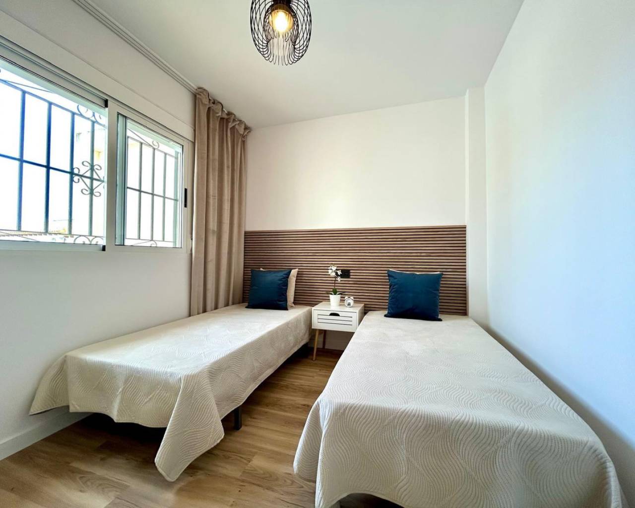 Completamente reformada casa adosada ubicada en la tranquila comunidad de Los Naranjos, en Los Altos. La vivienda ha sido completamente renovada y se encuentra en estado impecable, lista para entrar a vivir. Con la superficie construida de 83m2, consta de tres dormitorios y dos baños completos, salón -comedor, cocina independiente, porche delantero cubierto. La cocina equipada con todos los electrodomésticos modernos, con la zona de lavadero. La vivienda se distribuye en dos plantas y tiene un diseño funcional y moderno. Acceso a la vivienda a través de un jardín privado. En la planta superior se encuentran dos amplios dormitorios dobles, ambos con armarios, y un segundo baño completo con bañera. El dormitorio principal orientado al sur, lo que le proporciona una luz natural durante todo el día. Aire acondicionado instalado en cada estancia. Se vende completamente amueblada, con muebles de calidad y todo lo necesario para entrar a vivir (excepto efectos personales y elementos decorativos). Residencial ofrece una preciosa piscina comunitaria, y la vivienda se sitúa en una calle muy tranquila, con fácil aparcamiento y entorno agradable. A solo 400 metros esta el supermercado Consum, varios restaurantes, a 15 minutos andando del centro comercial Punta Marina. La Playa de Punta Prima esta a 2 km.