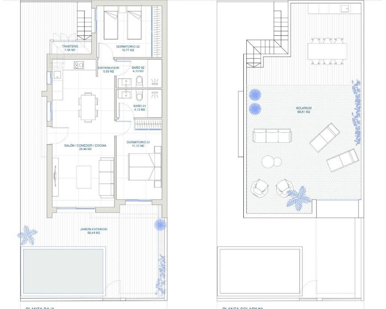 Estupenda villa de 2 dormitorios con solarium, piscina y jardín en Roldán, Murcia La planta baja es el corazón del hogar: un espacio abiertocon el salón, comedor y cocina conectados. Grandes ventanales inundan el ambiente con luz natural y conectan visualmente con el jardín exterior, un oasis privado con piscina, ideal para disfrutar del clima mediterráneo. A un lado, el dormitorio principal, amplio y acogedor, ofrece una vista directa al jardín, invitando al descanso y la serenidad. Cerca de él, se encuentra un baño completo que combina diseño y practicidad. El pasillo distribuye el acceso hacia un segundo dormitorio, perfecto para invitados o familiares, y un baño adicional. Un pequeño trastero aprovecha el espacio. Arriba, un amplio solárium se abre al cielo. Este espacio ha sido diseñado para el disfrute y el relax. UBICACIÓN: Roldán es un encantador pueblo murciano perteneciente a Torre Pacheco, rodeado de campos y naturaleza, donde se respira calma y autenticidad. Su ambiente acogedor y su buena oferta de servicios —restaurantes, tiendas y zonas deportivas— lo convierten en un lugar ideal para vivir o descansar. A tan solo 20 minutos del Mar Menor, 25 minutos de Cartagena y 30 minutos de Murcia capital, Roldán disfruta de una ubicación estratégica. El Aeropuerto Internacional de Murcia (Corvera) se encuentra a solo 15 minutos, y el Aeropuerto de Alicante-Elche a una hora. Con varios campos de golf en los alrededores y más de 300 días de sol al año, Roldán ofrece un estilo de vida relajado, conectado y lleno de luz mediterránea. Si tiene alguna pregunta, no dude en ponerse en contacto con nosotros!