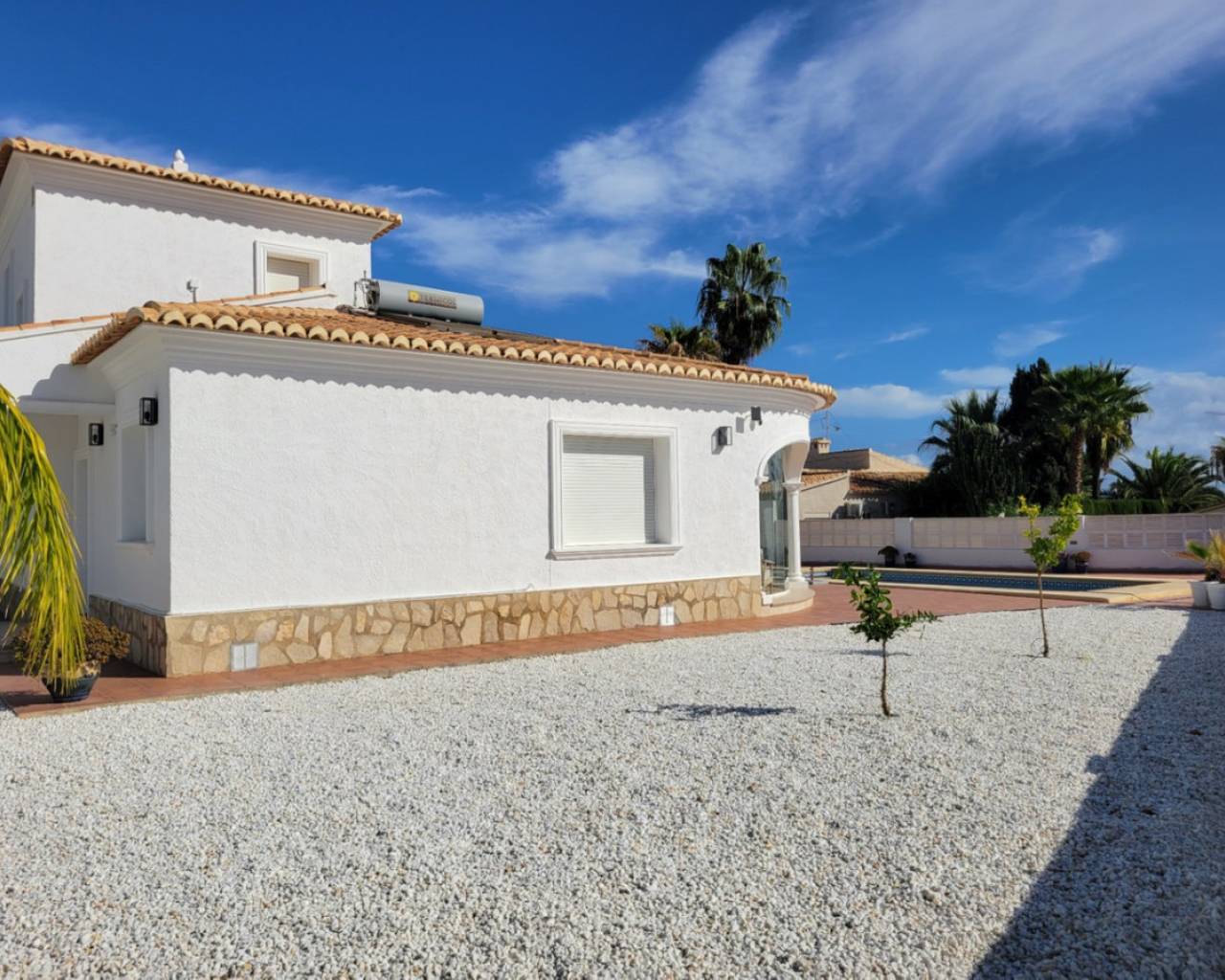 Acogedor Chalet en CalpeUbicado en la hermosa ciudad de Calpe, este encantador chalet combina elegancia y comodidad en un entorno natural privilegiado de la provincia de Alicante. Con un diseño funcional y acogedor, esta propiedad se convierte en el refugio ideal para disfrutar de la tranquilidad del Mediterráneo. Distribución Pensada para el BienestarLa vivienda cuenta con 4 amplias habitaciones, proporcionando el espacio perfecto para familias o grupos que buscan confort y privacidad. Los 3 baños están diseñados con materiales de calidad, enfocados en la funcionalidad y el bienestar de sus ocupantes. Amplios Espacios y ComodidadesCon una superficie construida de 237 m² y un extenso terreno de 803 m², este chalet ofrece diversas áreas tanto interiores como exteriores. Angulosas y luminosas estancias, ideales para disfrutar del estilo de vida mediterráneo, están acompañadas por un hermoso jardín que invita a relajarse. La propiedad también se beneficia de una piscina de agua salada equipada con bomba de calor y placas solares para calentarla - si hace falta- así como de un práctico garaje para 2 coches para su comodidad y seguridad. Además, se encuentra totalmente cerrada, proporcionando un entorno seguro. Comodidades ModernasEquipada con aire acondicionado frío/calor y calefacción con gas, la vivienda garantiza un clima agradable durante todo el año. La cocina está diseñada para satisfacer las necesidades culinarias modernas, facilitando la preparación de deliciosas comidas. La propiedad también incluye comodidades adicionales como sistema de satélite, almacenamiento, internet y ventanas de doble acristalamiento, asegurando tanto confort como eficiencia en la vivienda. Ubicación EstratégicaCalpe es conocida por su impresionante paisaje costero, destacándose por sus playas y su famoso peñón. La ubicación de este chalet permite disfrutar no solo de vistas espectaculares, sino también de la cercanía a diversos servicios, restaurantes y actividades recreativas que enriquecen la vida cotidiana. Este chalet en Calpe no es solo una propiedad, es un lugar donde crear memorias duraderas mientras se disfruta de la belleza y el ambiente de la Costa Blanca. Los espacios acogedores, las características cuidadosamente seleccionadas y la ubicación privilegiada hacen de este hogar una opción irresistible.