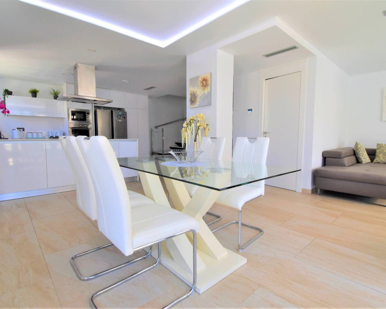 br /> Esta villa independiente de tres dormitorios construida en 2018 y orientada al oeste en Las Filipinas, una popular zona residencial dentro de Villamartin. A sólo diez minutos a pie encontrará una gran variedad de bares y restaurantes; la principal cadena de supermercados más cercana, a cinco minutos en coche junto con tres campos de golf, Villamartin Plaza, centro comercial La Fuente. El centro comercial La Zenia Boulevard está a diez minutos en coche y las playas de la costa a quince minutos. Habiendo sido construida por un constructor de renombre, las calidades dentro de esta propiedad son insuperables. La sala de estar principal es de planta abierta con dos juegos de puertas corredizas anchas, una desde el salón y la otra desde el comedor que conducen al área de la piscina, también hay escaleras que conducen al primer piso y al sótano. La cocina está totalmente equipada y hay un baño con ducha además de un dormitorio doble con baño en suite y una terraza. En la primera planta hay otro dormitorio doble con vestidor, baño en suite y acceso al solárium. El sótano consta de un salón y cocina además de un dormitorio doble con baño en suite, puertas correderas dobles al exterior y una zona de cocina. El jardín está alicatado con una zona de césped artificial, una piscina privada de 7x4 y aparcamiento exterior. Los extras incluyen aire acondicionado, portones eléctricos y armarios empotrados en los dormitorios.