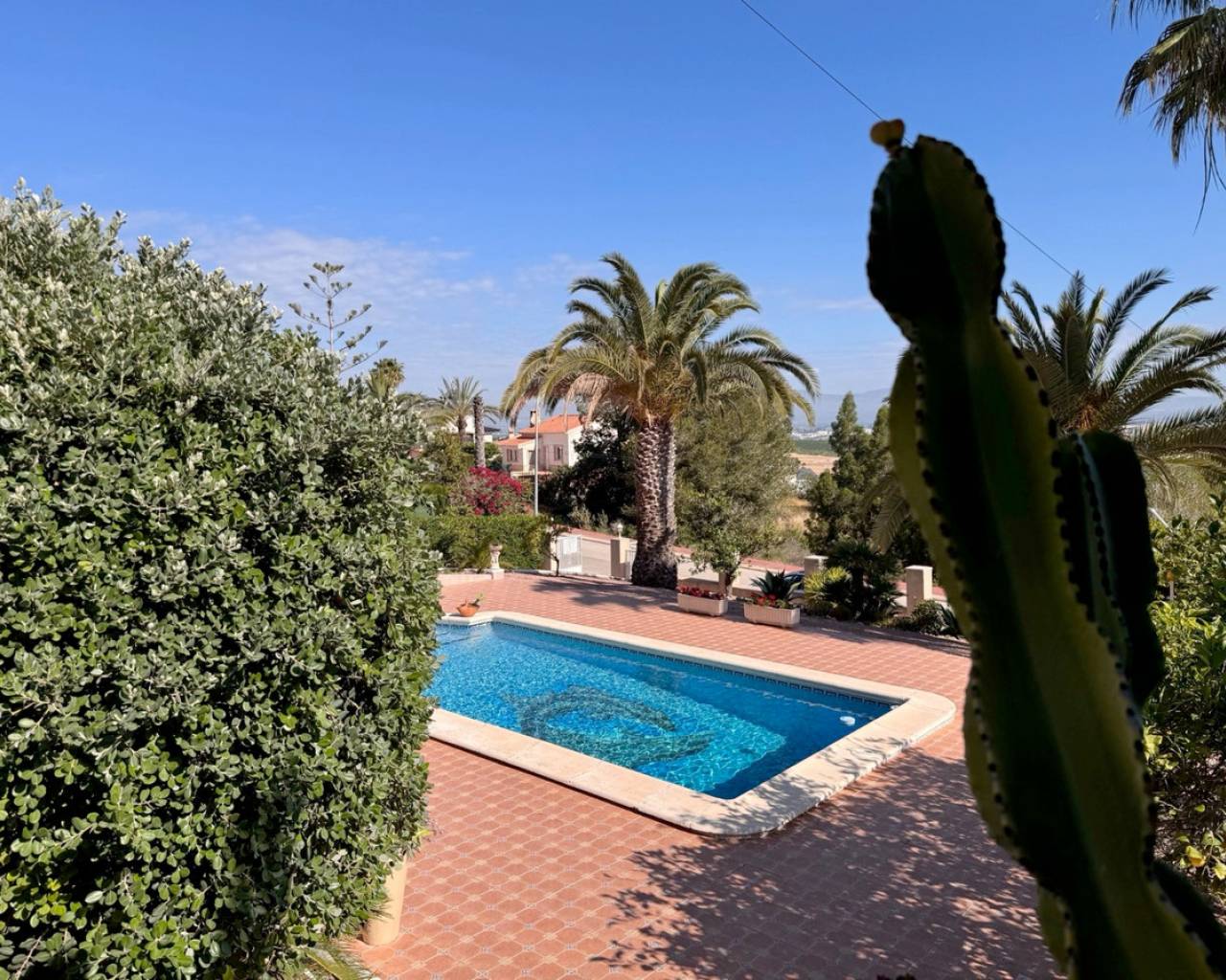 Esta imponente villa independiente de 191 m2 y tres dormitorios en Lomas de La Juliana está ubicada en una zona residencial muy solicitada, con un club de tenis en la entrada y el hotel, spa y campo de golf La Finca 5* justo en la puerta, donde podrá También encontrará una variedad de lugares para comer y tiendas. Las principales cadenas de supermercados se pueden encontrar en Almoradí y Benijófar, que están a sólo 5 minutos en coche. Las playas de la costa en coche están a unos 20 minutos. Esta excepcional casa ocupa una parcela ajardinada privada de 1220m2 con las vistas más amplias que encontrará en la zona. Se accede a la sala de estar principal de la villa a través de una escalera exterior a una terraza cubierta en forma de "L", que luego proporciona acceso a la hermosa y luminosa sala de estar, que tiene un juego de puertas correderas y tres juegos de ventanas, con chimenea abierta; increíble cocina equipada/sala de desayunos; dormitorio doble y cuarto de baño familiar. Se accede a la planta baja de la propiedad desde el exterior y consta de salón, arco de acceso a la cocina equipada, baño y dos dormitorios dobles. El jardín es de guijarros y baldosas y tiene un largo camino de entrada que conduce a dos garajes; El área de la piscina tiene un revestimiento de azulejos y hay muchos árboles maduros, arbustos y palmeras alrededor. Los extras incluyen calefacción por suelo radiante en toda la planta principal, aire acondicionado, armarios empotrados en todos los dormitorios, sistema de riego.