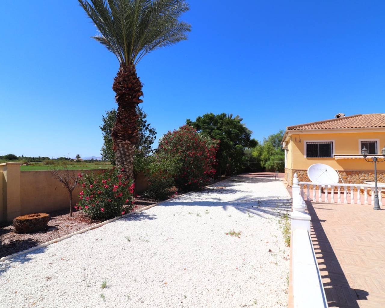 Esta villa rural de tres dormitorios con orientación sur en Catral se encuentra en un hermoso campo abierto, con vistas a la montaña y a solo 5 minutos en coche de los servicios del pueblo de Catral. Los campos de golf de La Finca y La Marquesa están a unos 20 minutos, mientras que las impresionantes playas de la Costa Blanca están a solo 15 minutos. Distribuida en una sola planta, la espaciosa construcción de 235 m² se asienta sobre una parcela privada de 2400 m². La villa consta de una terraza cubierta que da acceso al recibidor, un salón curvo con chimenea de leña, comedor y un amplio arco que da a una cocina bien equipada con lavadero y puerta exterior. Hay tres dormitorios dobles, todos con ventiladores de techo con control remoto, un baño familiar y un baño en suite con ducha en el dormitorio principal. El jardín amurallado, diseñado para facilitar el mantenimiento y la vida al aire libre, cuenta con aparcamiento privado, cochera, fuente central, árboles maduros y palmeras, zona de barbacoa, sistema de riego y una piscina privada de 10 x 5 en la parte trasera, con tranquilas vistas abiertas. Los extras incluyen aire acondicionado y una fosa séptica recién instalada. Una casa familiar ideal o un refugio en el campo, pero cerca de la costa y de los servicios, en la Costa Blanca Sur.
