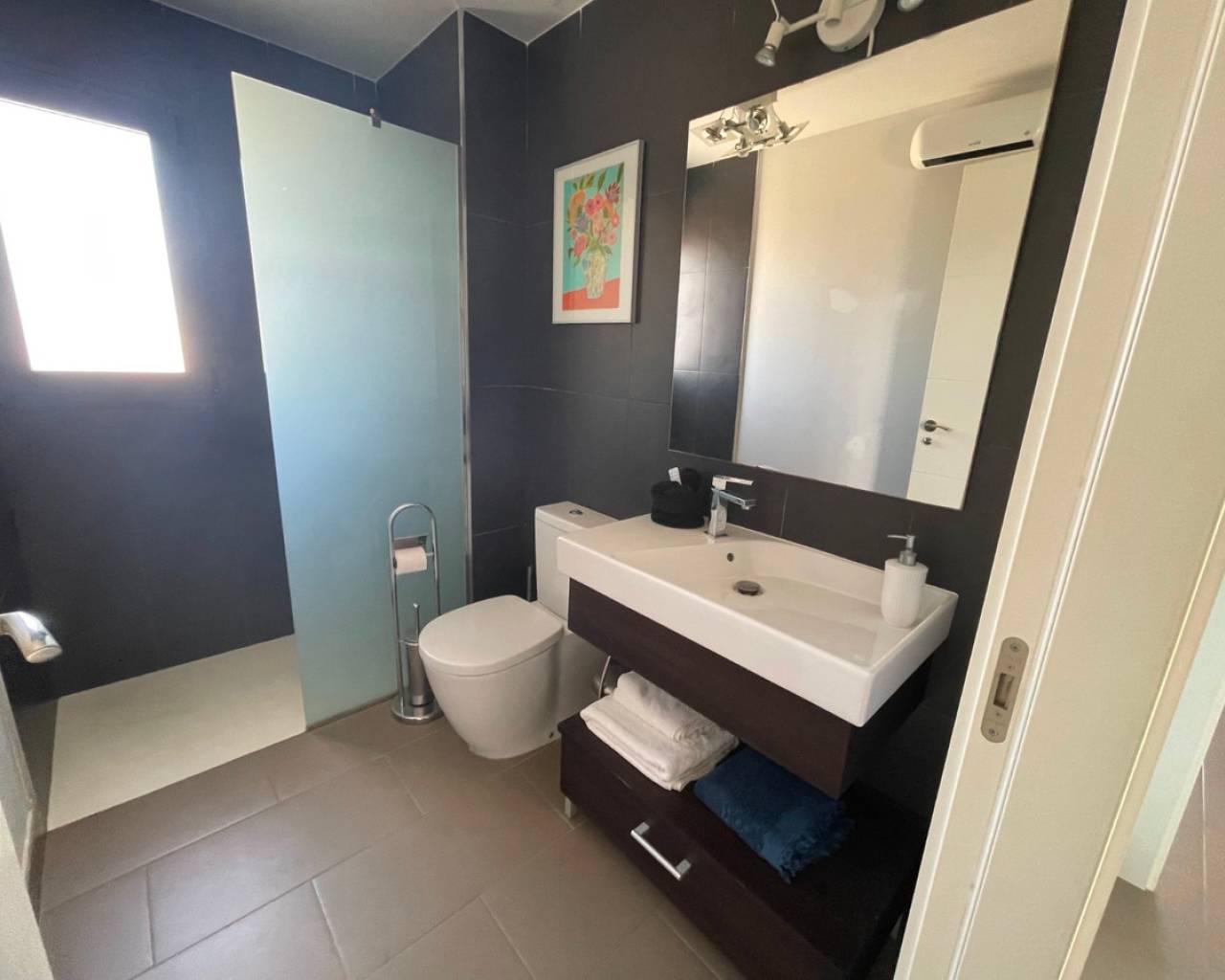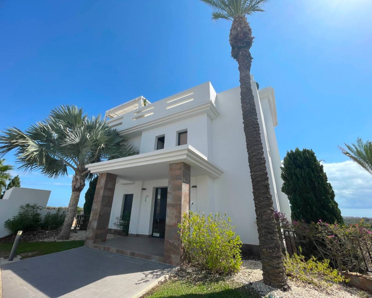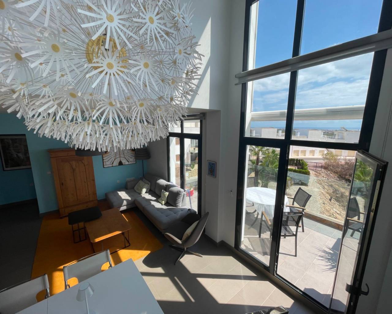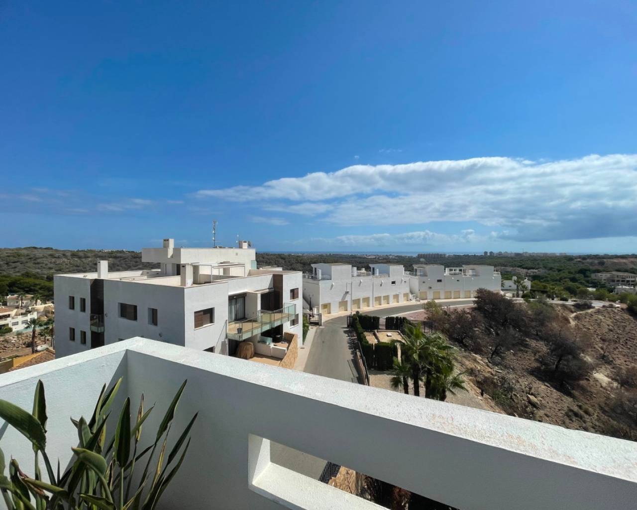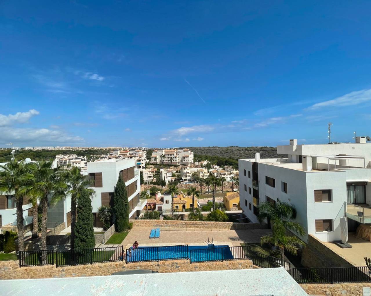 Este ático dúplex de tres dormitorios con orientación sureste en Las Ramblas Golf se encuentra junto a este prestigioso campo de golf, lindando también con Campoamor Golf. A un corto trayecto en coche se encuentran Villamartín, el popular centro comercial La Zenia Boulevard y las hermosas playas de Orihuela Costa, a unos 10 minutos. Esta impresionante casa de diseño arquitectónico moderno ofrece 97 m² distribuidos en dos plantas, con una ubicación elevada y vistas increíbles, pero con acceso cómodo a la sala de estar principal desde la planta baja. El luminoso salón-comedor cuenta con dos puertas correderas acristaladas que dan a la terraza, con una parte de la estancia con techo abovedado y una escalera abierta ultramoderna que permite apreciar plenamente las espectaculares vistas abiertas a través del ventanal de suelo a techo. Una cocina bien equipada con barra americana, dos dormitorios dobles y un baño familiar con ducha completan esta planta. La primera planta alberga el dormitorio principal con baño en suite y acceso directo a una impresionante terraza en forma de L, equipada con toldo retráctil y prácticos armarios de almacenamiento: el lugar perfecto para relajarse y disfrutar de las vistas. Ubicada en una comunidad impecablemente cuidada y bien presentada, los residentes disfrutan de una impresionante piscina comunitaria infinita y aparcamiento privado. Los extras incluyen aire acondicionado. Una propiedad verdaderamente excepcional donde "impresionante" no es suficiente para describir las cualidades y el lujo que ofrece esta casa en la Costa Blanca Sur.