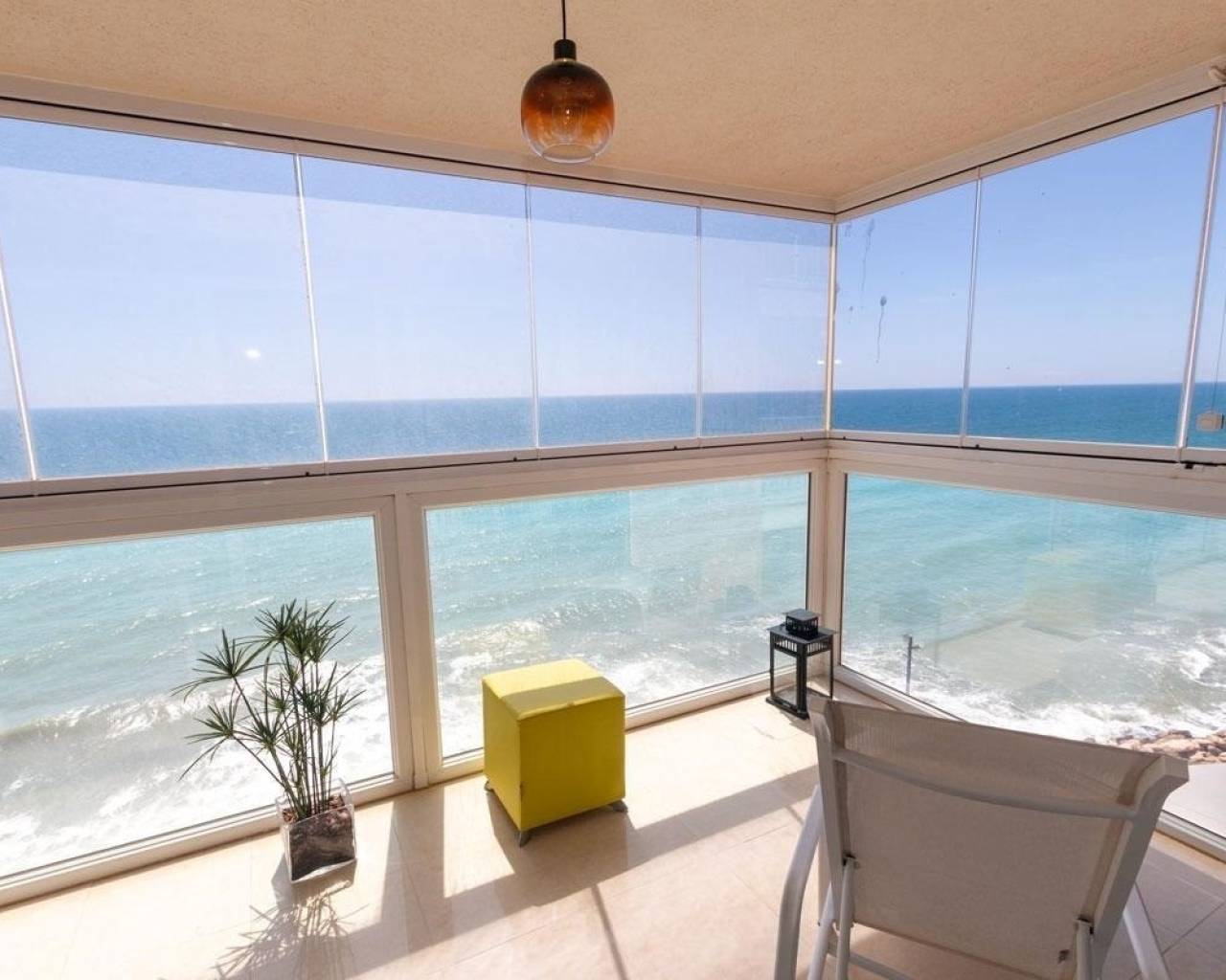 Este apartamento en primera línea de mar, con orientación sur, tres dormitorios y situado en la novena planta de un edificio en Torrevieja, goza de una ubicación inmejorable, justo en primera línea de playa, ofreciendo unas vistas panorámicas espectaculares del mar Mediterráneo. A tan solo dos minutos a pie de supermercados, bares y restaurantes, esta ubicación privilegiada le ofrece todo lo que pueda necesitar a un paso, ¡y con la playa literalmente a sus pies! El apartamento cuenta con una cocina americana totalmente equipada con una práctica barra americana y un lavadero. El espacioso salón-comedor dispone de aire acondicionado y grandes puertas correderas que dan a una terraza cubierta acristalada donde podrá relajarse y disfrutar de las impresionantes vistas al mar, así como de una agradable vista a la piscina comunitaria. Hay tres dormitorios dobles, todos con armarios empotrados y aire acondicionado. El dormitorio principal cuenta con un baño privado con ducha y acceso directo a una terraza privada, perfecta para contemplar el amanecer sobre el mar. Un segundo baño moderno con ducha da servicio a los otros dos dormitorios. Situado en una de las zonas más cotizadas de primera línea de playa de Torrevieja, este apartamento ofrece una oportunidad única para disfrutar de una elegante vida costera con todas las comodidades a mano y el relajante sonido del mar como telón de fondo diario. Una vivienda verdaderamente excepcional en la Costa Blanca Sur.
