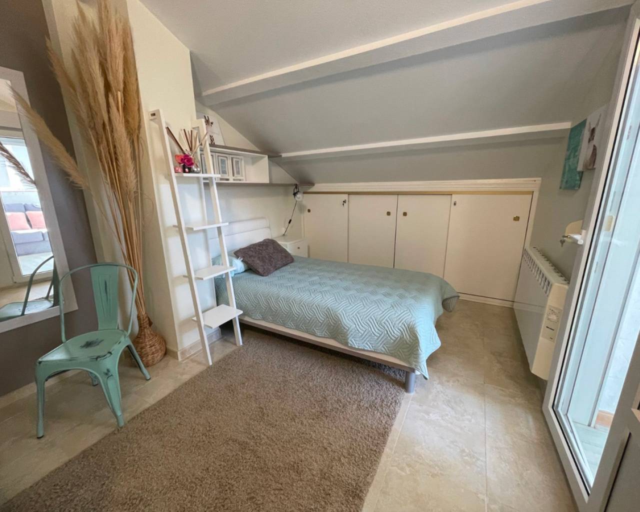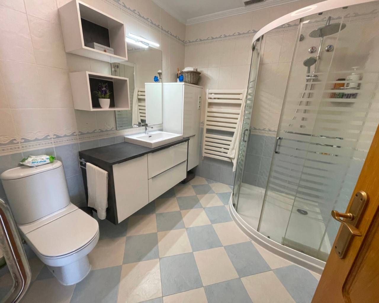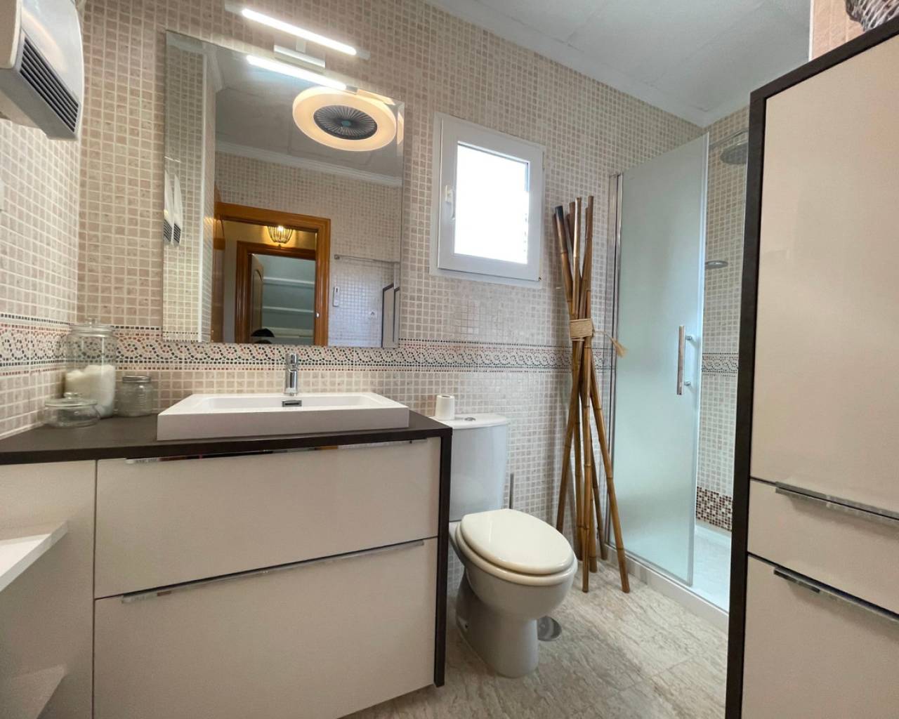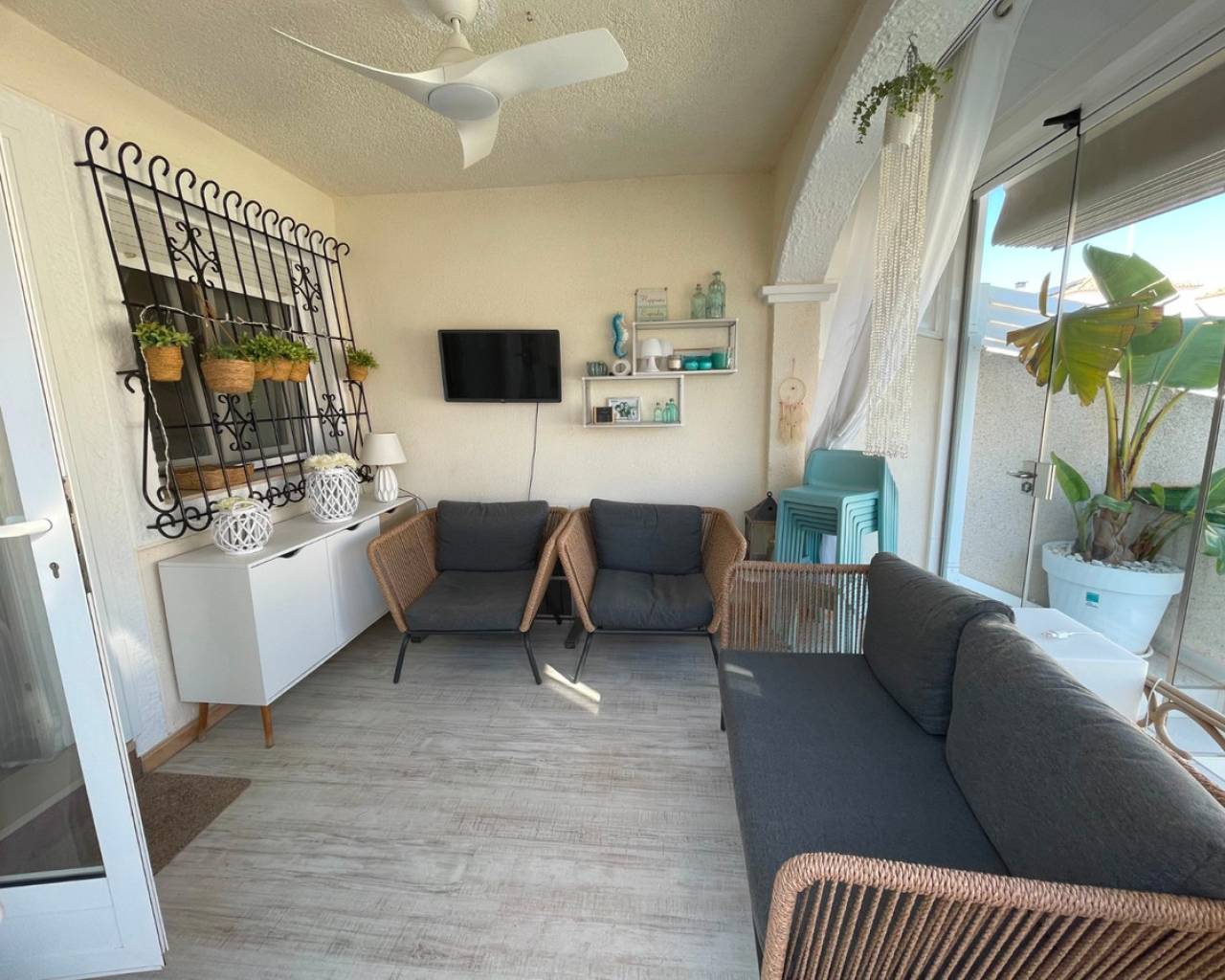 Esta casa adosada reformada de tres dormitorios en Torre de la Horadada se encuentra a solo 15 minutos a pie de su idílica playa, en un entorno tradicional español, cerca de la popular plaza, el puerto deportivo, bares, supermercado y restaurantes. Pilar de la Horadada está muy cerca, con Lo Romero Golf y Orihuela Costa, incluyendo el famoso centro comercial La Zenia Boulevard, a solo 10 minutos en coche. Renovada con un acabado impecable por un diseñador de interiores en 2023, esta casa de 85 m² con acabados de alta calidad se distribuye en dos plantas. La propiedad disfruta de una amplia terraza de entrada cerrada con cortinas de cristal con vistas a la piscina, un lugar ideal para relajarse o cenar durante todo el año. En el interior, el salón cuenta con una estufa de leña con un elegante marco decorativo, una pared decorativa, ventilador de techo y un comedor. Una encantadora cocina independiente equipada ofrece acceso al jardín trasero de baldosas. También en la planta baja hay un dormitorio doble con ventilador de techo y un moderno baño familiar con ducha. La primera planta consta de dos dormitorios dobles adicionales con acceso a una terraza cerrada, actualmente utilizada como sala de estar, y otro baño familiar contemporáneo con ducha. Un solárium privado ofrece espacio exterior adicional para disfrutar del sol. El jardín delantero cuenta con una piscina privada rodeada de césped artificial y amplio espacio de almacenamiento. Entre las comodidades adicionales se incluyen aire acondicionado, radiadores eléctricos y toallero calefactado. Una propiedad realmente impresionante, presentada con un gusto excepcional, ubicada en una de las zonas costeras más codiciadas de la Costa Blanca Sur.