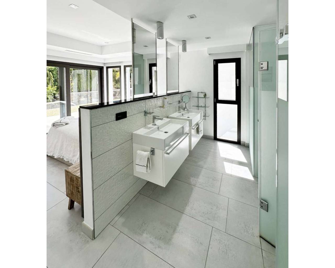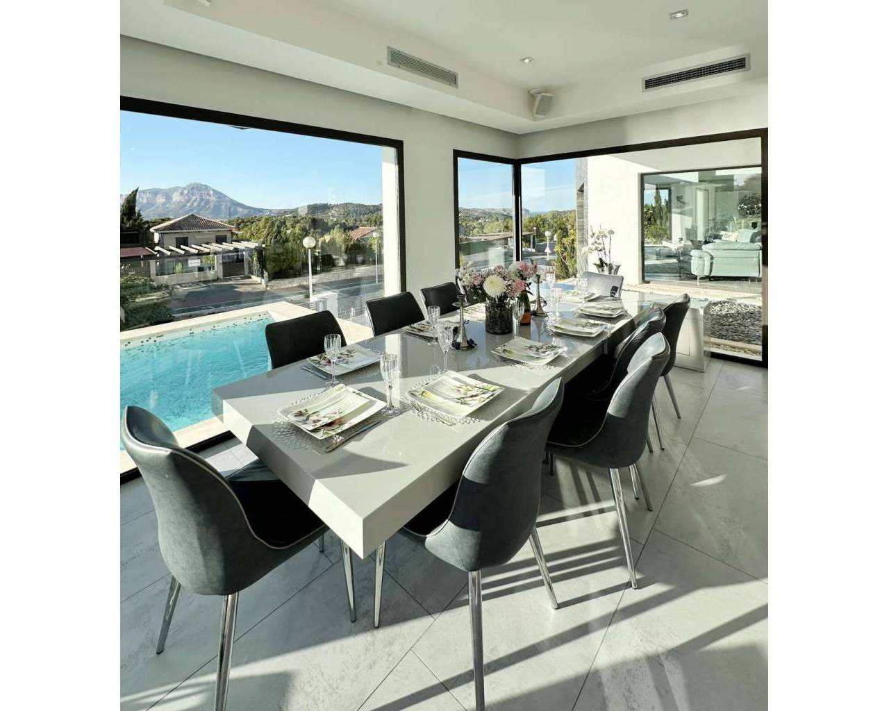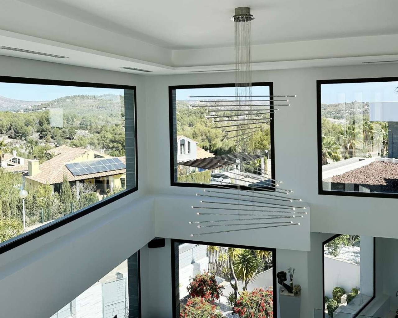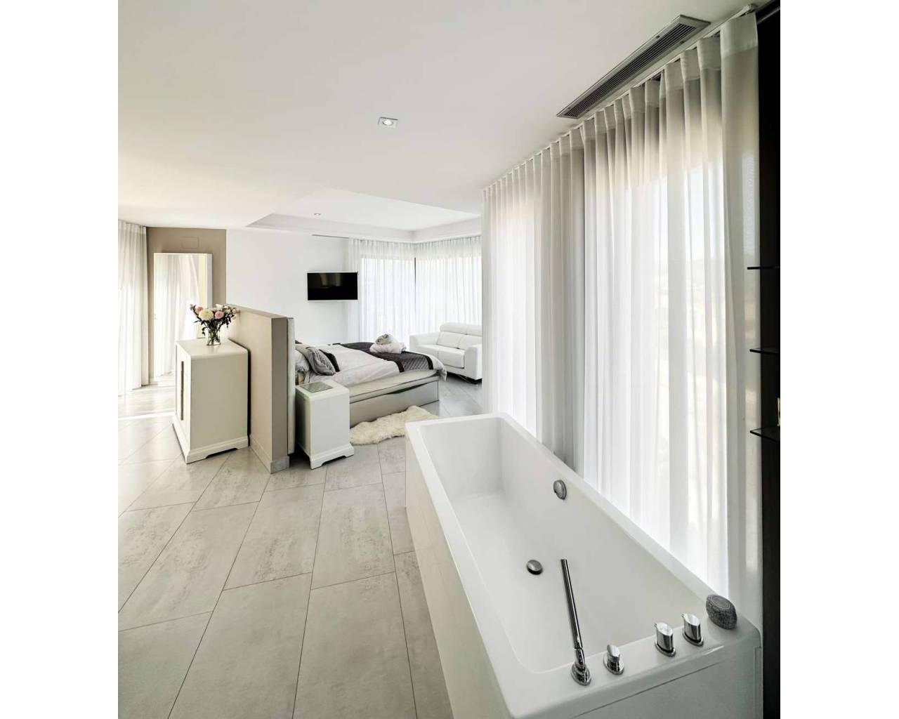 Eleve su estilo de vida en esta impresionante obra maestra de 525 metros cuadrados, donde el lujo se fusiona con la modernidad. Distribuida en tres plantas cuidadosamente diseñadas, ofrece una experiencia de vida inigualable. La sala de estar de concepto abierto está llena de luz natural gracias a sus ventanales de piso a techo, y una impactante escalera flotante con barandillas de cristal sirve como hermosa pieza central, conectando todos los niveles.Hay cinco espaciosas habitaciones, incluyendo una lujosa suite principal de 27 metros cuadrados, y ocho elegantes baños para mayor comodidad y privacidad. La cocina gourmet se integra a la perfección con el comedor, ideal tanto para comidas familiares íntimas como para recibir invitados.Relájese en su piscina cubierta climatizada privada, disfrute de la sauna y el gimnasio, o vea películas en la moderna sala multimedia. Dos patios combinan la vida interior y exterior, mientras que en el exterior encontrará dos piscinas adicionales: una piscina en el jardín con fuente y una zona de chapoteo poco profunda para niños, además de una piscina infinita con vistas a la montaña y al mar.Las características adicionales incluyen un amplio loft, amplio espacio de almacenamiento con cuatro armarios, lavandería, garaje seguro y una gran entrada. La casa es ecológica y cuenta con un sistema de paneles solares de 18 kW, almacenamiento de baterías y una estación de carga para vehículos eléctricos. Los hermosos jardines paisajísticos aportan privacidad y tranquilidad.Esta residencia no es solo una casa; es un lienzo para tus sueños: una combinación perfecta de comodidad, sofisticación y lujo. Experimenta la máxima expresión de la vida moderna en este impresionante santuario.