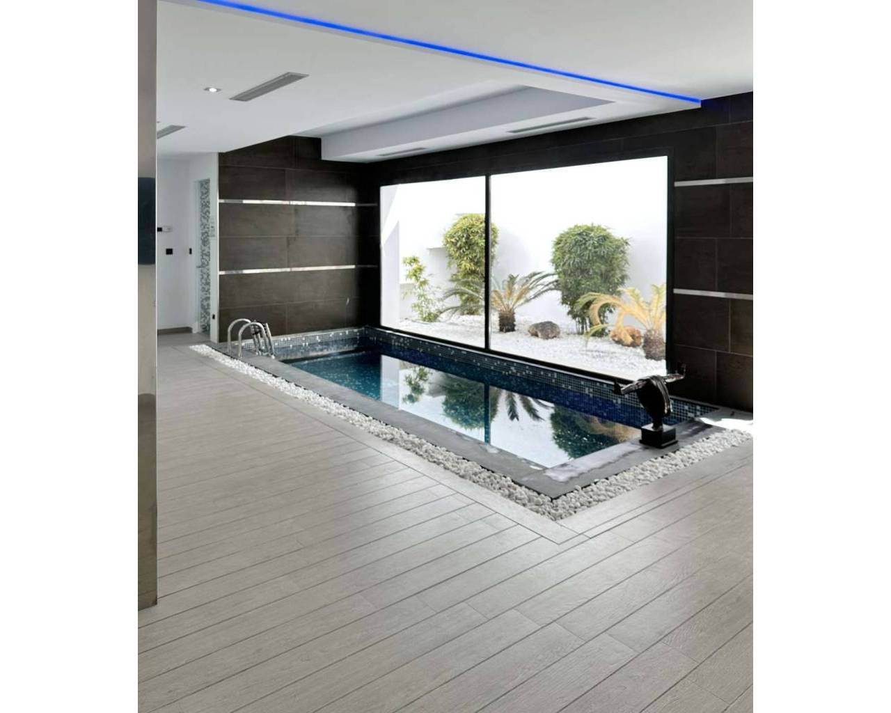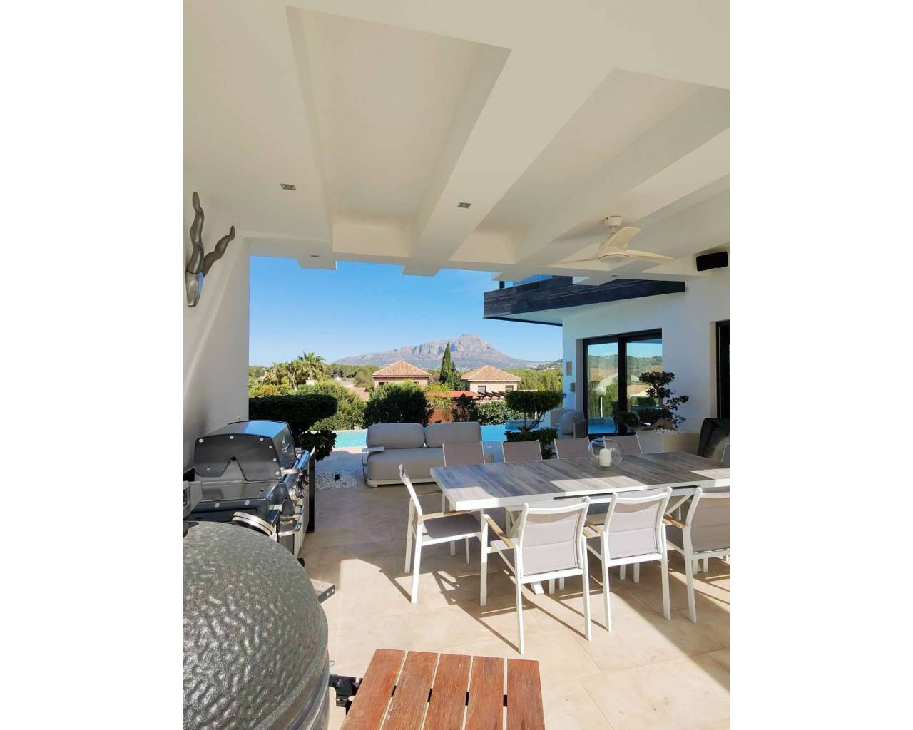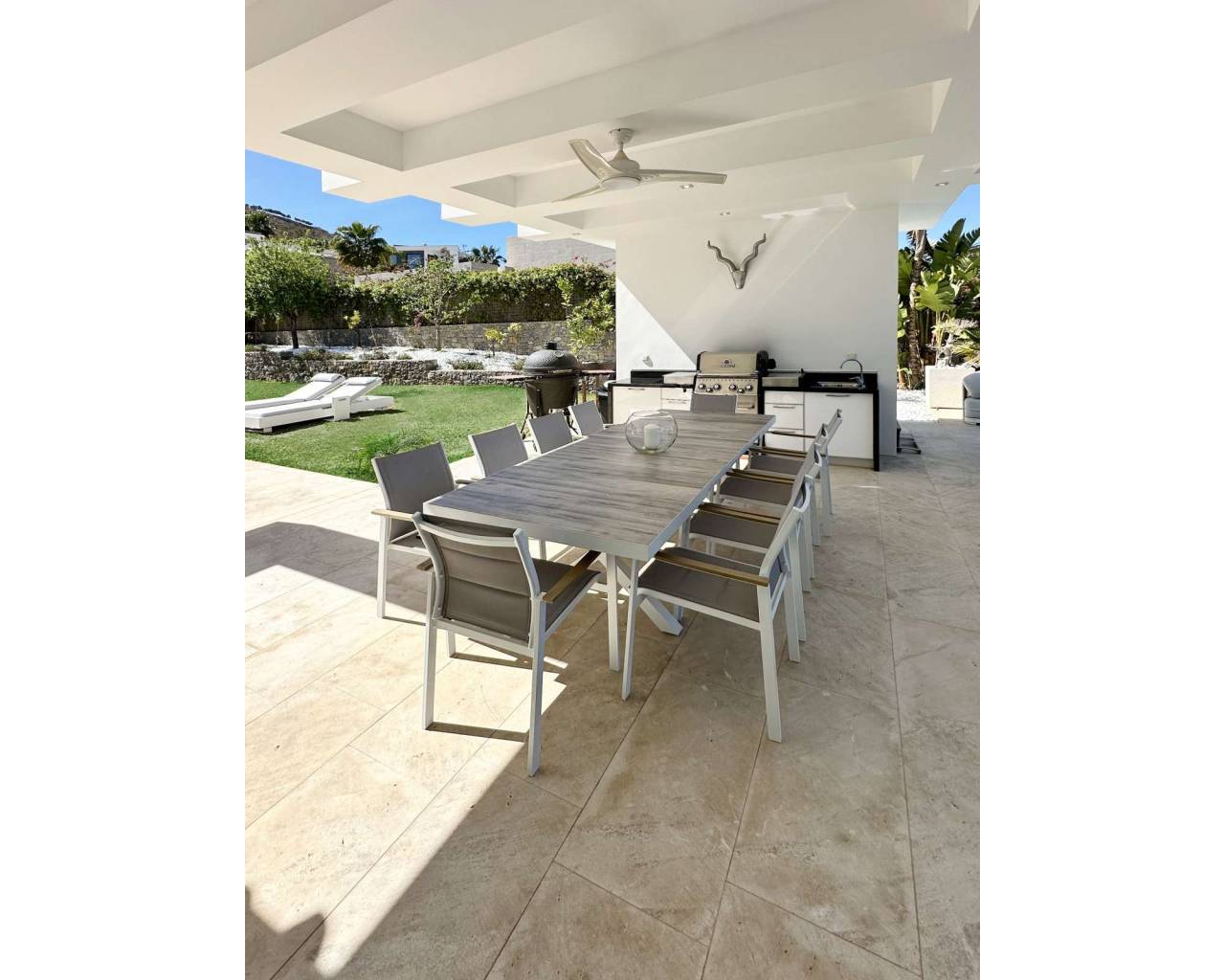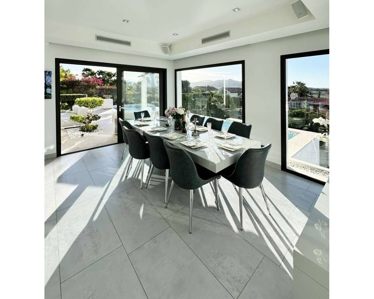 Eleve su estilo de vida en esta impresionante obra maestra de 525 metros cuadrados, donde el lujo se fusiona con la modernidad. Distribuida en tres plantas cuidadosamente diseñadas, ofrece una experiencia de vida inigualable. La sala de estar de concepto abierto está llena de luz natural gracias a sus ventanales de piso a techo, y una impactante escalera flotante con barandillas de cristal sirve como hermosa pieza central, conectando todos los niveles.Hay cinco espaciosas habitaciones, incluyendo una lujosa suite principal de 27 metros cuadrados, y ocho elegantes baños para mayor comodidad y privacidad. La cocina gourmet se integra a la perfección con el comedor, ideal tanto para comidas familiares íntimas como para recibir invitados.Relájese en su piscina cubierta climatizada privada, disfrute de la sauna y el gimnasio, o vea películas en la moderna sala multimedia. Dos patios combinan la vida interior y exterior, mientras que en el exterior encontrará dos piscinas adicionales: una piscina en el jardín con fuente y una zona de chapoteo poco profunda para niños, además de una piscina infinita con vistas a la montaña y al mar.Las características adicionales incluyen un amplio loft, amplio espacio de almacenamiento con cuatro armarios, lavandería, garaje seguro y una gran entrada. La casa es ecológica y cuenta con un sistema de paneles solares de 18 kW, almacenamiento de baterías y una estación de carga para vehículos eléctricos. Los hermosos jardines paisajísticos aportan privacidad y tranquilidad.Esta residencia no es solo una casa; es un lienzo para tus sueños: una combinación perfecta de comodidad, sofisticación y lujo. Experimenta la máxima expresión de la vida moderna en este impresionante santuario.