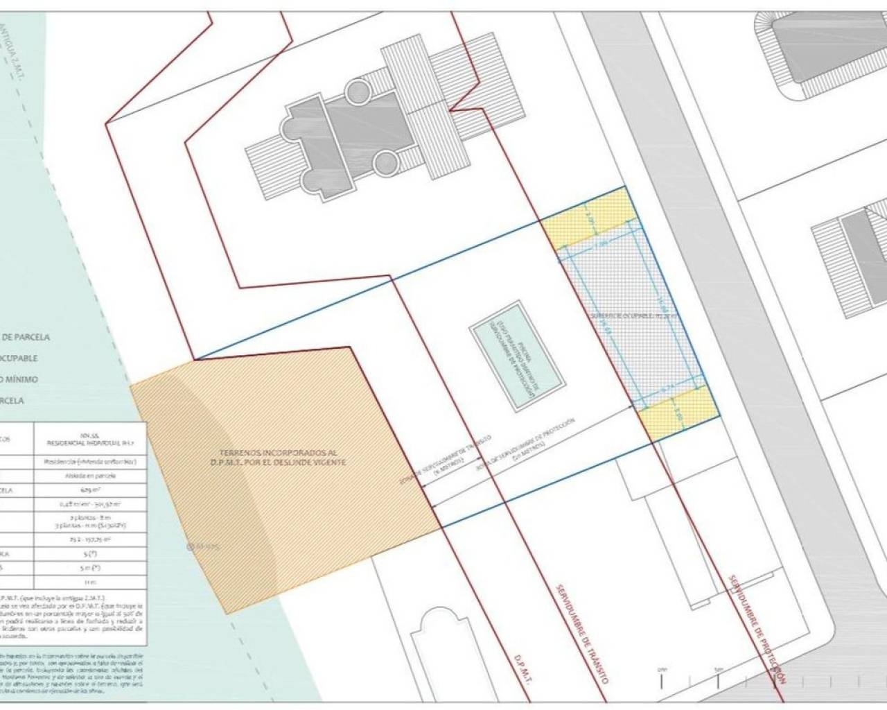 La Manga del Mar Menor parcela de 629 m2 frente al mar con playa propia para poder constuir una vivienda unifamiliar con una vivienda de 2 plantas de 157 m2. ~