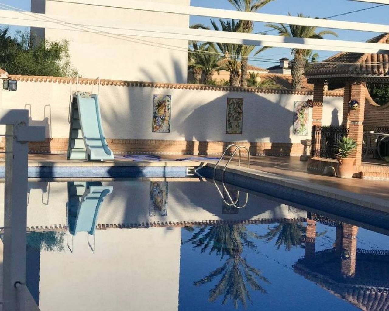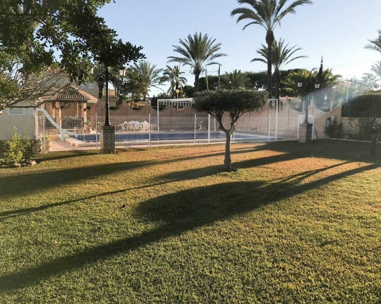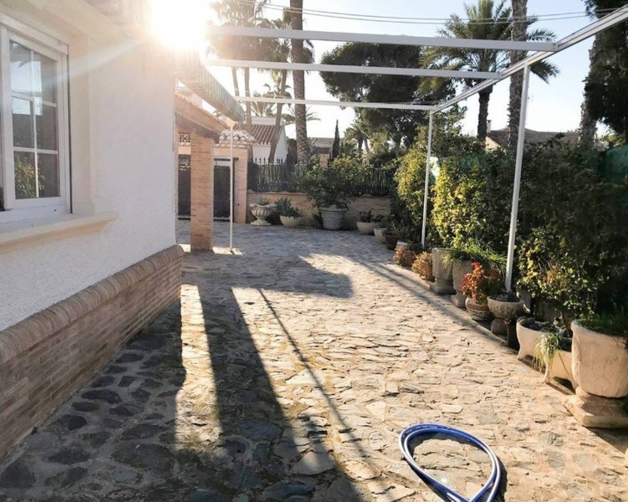 Eche un vistazo a esta Magnífica Villa Independiente ubicada a solo 3 minutos a pie de las playas de Cabo Roig. La propiedad está construida sobre una parcela de 1500m2 y consta de 6 dormitorios grandes (algunos con balcones privados) y armarios empotrados, 3 baños, amplio salón con comedor y chimenea y una cocina independiente amueblada recién renovada con lavadero. La propiedad se beneficia de un gran jardín privado y varias terrazas que rodean la propiedad, también encontrará una barbacoa, pérgola para comer al aire libre, una cancha de baloncesto, garaje y una gran piscina privada. La propiedad se vende Totalmente Amueblada. Cabo Roig se encuentra a 10 kilómetros al sur de Torrevieja, en el sur de la Costa Blanca en el este de España. La encantadora ciudad del antiguo Cabo Roig tiene amplias avenidas bordeadas de palmeras y jardines con vistas al Mediterráneo a la península de La Manga y al Mar Menor, lo que proporciona un entorno pintoresco junto a las hermosas playas. A menos de una hora en coche del aeropuerto de Alicante y a unos 30 minutos en coche del aeropuerto de Murcia San Javier. Cabo Roig es una excelente ubicación para los golfistas, ya que está cerca de muchos excelentes campos de campeonato, incluidos los tres campos de Villamartín. El mundialmente famoso complejo de golf de La Manga también está a poca distancia. La playa de Cabo Roig (también llamada playa de invierno) ofrece todo tipo de deportes acuáticos, como Paddle Sup, Kayak, motos de agua, alquiler de embarcaciones, etc. Es una playa que ofrece música en directo en los chiringuitos. Los restaurantes recomendados son La Bahía y Stella Maris, que ofrecen una carta amplia y de muy buena calidad. Está cerca de la zona de Agua Marina donde hay una gran selección de restaurantes, bares, mercado y mercadillo todos los jueves, centro de salud, farmacias, cafeterías y heladerías.