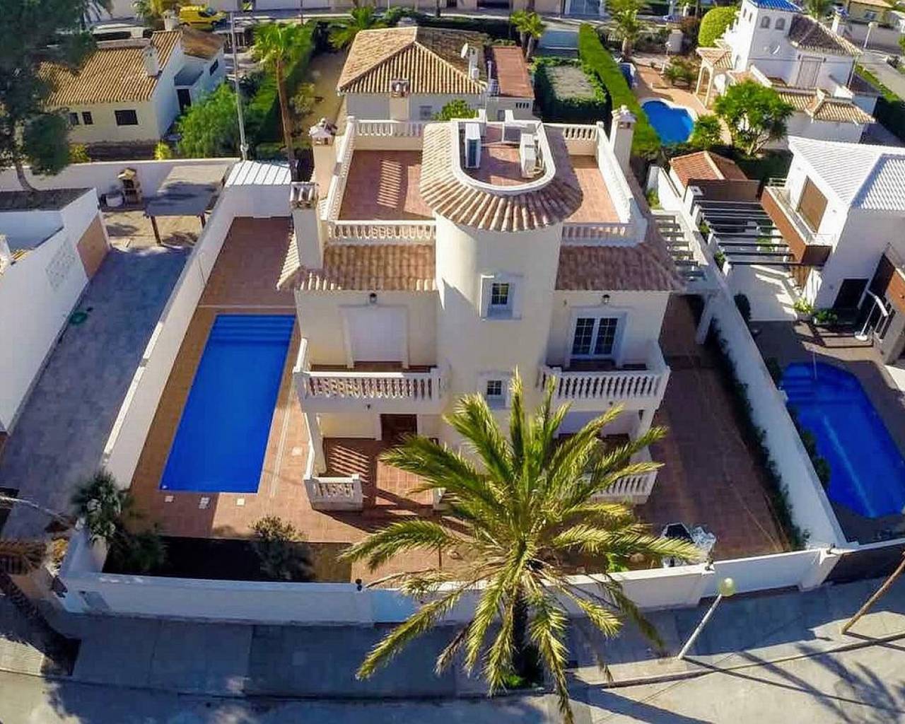 Te presentamos esta Increíble Villa Independiente ubicada a solo 400m de las hermosas playas de Cabo Roig. La villa consta de 4 dormitorios grandes con armarios y cada uno con baño en suite y un aseo en la planta baja, salón / comedor con chimenea y cocina totalmente equipada. La propiedad se beneficia de aire acondicionado, varias áreas de terrazas, jardín privado, estacionamiento fuera de la carretera, solarium, trastero y una piscina privada. Cabo Roig se encuentra a 10 kilómetros al sur de Torrevieja, en el sur de la Costa Blanca en el este de España. La encantadora ciudad del antiguo Cabo Roig tiene amplias avenidas bordeadas de palmeras y jardines paisajísticos con vistas al Mediterráneo a la península de La Manga y al Mar Menor, lo que proporciona un entorno pintoresco junto a las hermosas playas. A menos de una hora en coche del aeropuerto de Alicante y a unos 30 minutos en coche del aeropuerto de Murcia San Javier. Cabo Roig es una excelente ubicación para los golfistas, ya que está cerca de muchos excelentes campos de campeonato, incluidos los tres campos de Villamartín. El mundialmente famoso complejo de golf de La Manga también está a poca distancia. La playa de Cabo Roig (también llamada playa de invierno) ofrece todo tipo de deportes acuáticos, incluyendo Paddle Sup, Kayak, motos de agua, alquiler de embarcaciones, etc. Es una playa que ofrece música en directo en los chiringuitos. Los restaurantes recomendados son La Bahía y Stella Maris, que ofrecen una carta amplia y de muy buena calidad. Está cerca de la zona de Agua Marina donde hay una gran selección de restaurantes, bares, mercado y mercadillo todos los jueves, centro de salud, farmacias, cafeterías y heladerías.