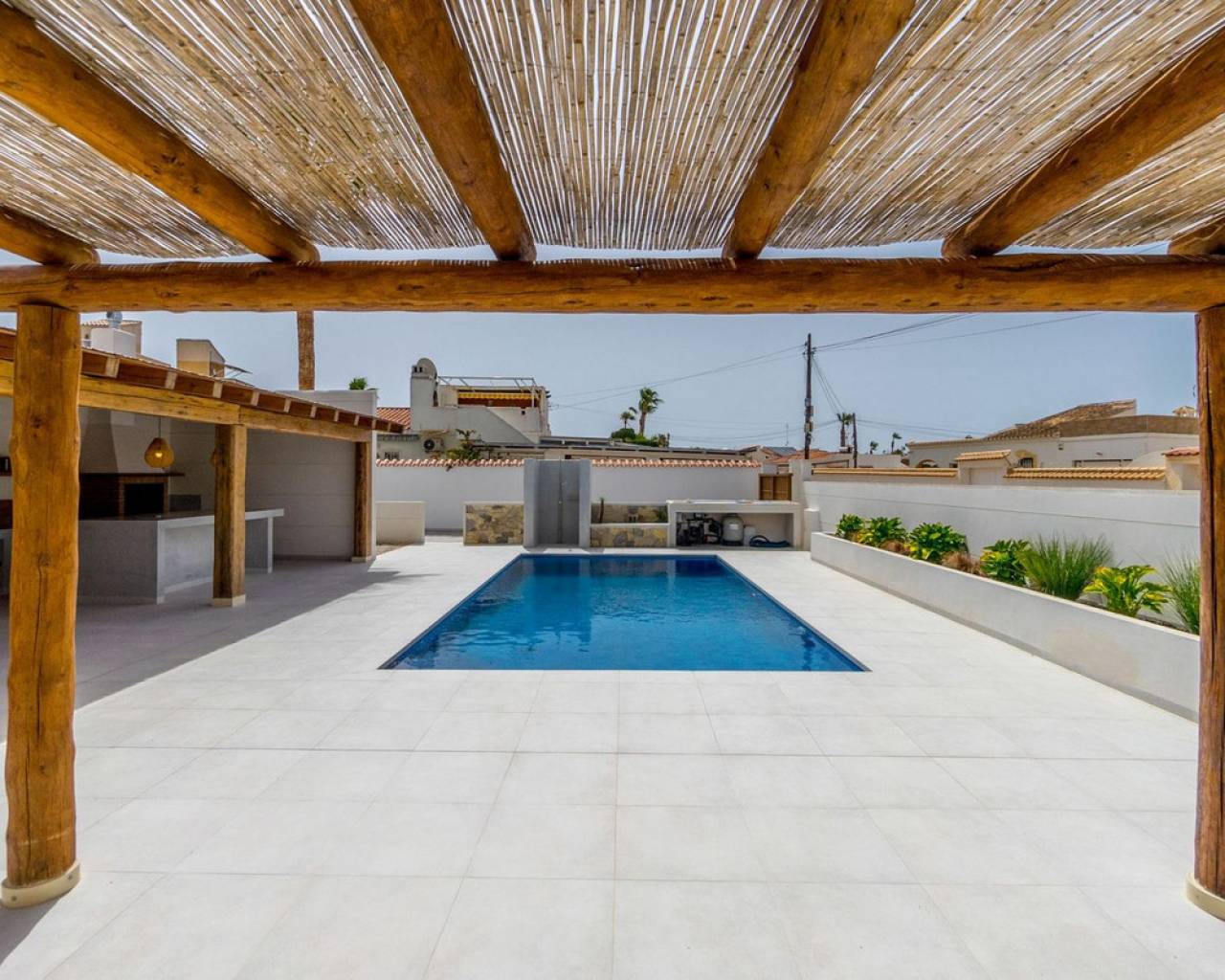 Estamos orgullosos de presentarles esta Impresionante Villa Independiente, completamente renovada en la zona de Torreta Florida en Torrevieja. La villa está construida sobre una parcela de 800m2 y consta de 4 amplios dormitorios, 3 baños, salón / comedor y una cocina totalmente equipada con electrodomésticos. La propiedad está amueblada con un estándar y calidad muy altos. La propiedad también ofrece cocina exterior y barbacoa, estacionamiento fuera de la carretera, iluminación con sensores, aire acondicionado, piscina privada y áreas de terrazas privadas que rodean la propiedad para relajarse, entretenerse o disfrutar de un refrescante baño. Situada en una zona tranquila y cotizada, esta propiedad ofrece el lugar perfecto sin dejar de estar cerca de todas las comodidades que Torrevieja tiene para ofrecer. Cuenta con excelentes comunicaciones, centros comerciales y todos los servicios que rodean la urbanización. A solo 5 minutos del centro de Torrevieja, pero con todas las comodidades y tranquilidad de una urbanización que cuenta con áreas comerciales, supermercados, centros de salud, parques y áreas naturales como la Laguna de La Mata y Torrevieja. Podrás disfrutar de un clima magnífico con temperaturas muy cálidas durante todo el año. La ciudad y sus alrededores ofrecen una gran variedad de actividades de ocio, ya que cuenta con numerosos y variados deportes acuáticos, centros comerciales, cines, parques acuáticos, restaurantes, presumiendo además de buenas conexiones por carretera e infraestructuras para acceder a los campos de golf cercanos, así como conectar con las ciudades vecinas como Alicante, Elche o Murcia. Hay muchas zonas para vivir en Torrevieja, pero ninguna de ellas está tan bien ubicada como ésta.
