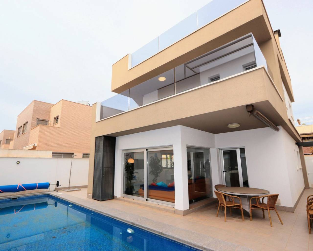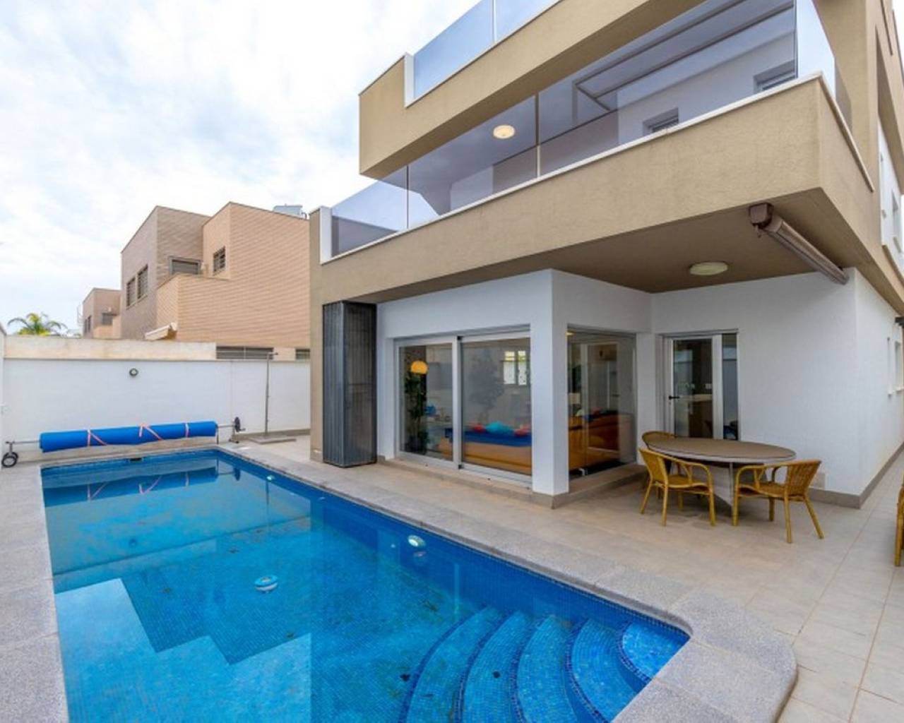 Nos complace presentarles esta increíble Villa Independiente de Reventa de Nueva Construcción, ubicada en Torre de la Horadada, a poca distancia de todos los servicios en el Centro Comercial Plaza Nueva, donde encontrará una variedad de bares, restaurantes y tiendas, y a solo 350 m de las playas. La propiedad consta de 3 dormitorios con armarios empotrados, 3 baños, amplio salón / comedor con cocina totalmente equipada. La villa se beneficia de varias terrazas, solárium en la azotea con vistas al mar y cocina exterior, estacionamiento fuera de la carretera, calefacción central, aire acondicionado, persianas eléctricas en todas partes y piscina privada. Torre de la Horadada es un complejo costero ubicado en el sur de la Costa Blanca con algunas playas de arena fina que son ideales para familias con niños que han venido a pasar sus vacaciones de verano. Hay dos aeropuertos cerca de Torre de la Horadada que son Alicante y Murcia. Torre de la Horadada se encuentra al norte del Mar Menor, junto a Pilar de la Horadada, y también está cerca de Torrevieja, La Zenia, Mil Palmeras, Cabo Roig, Campoamor, Playa Flamenca y Punta Prima. Torre de la Horadada es también uno de los centros turísticos más bonitos del sur, con una atractiva costa y paseos marítimos, así como una carismática torre de vigilancia que data de la época en la que los piratas navegaban por estos mares, numerosas playas de arena, un clima soleado y un encantador puerto deportivo con mucho espacio para amarres. Torre de la Horadada se ha desarrollado principalmente en los últimos tiempos, con la creciente demanda de casas de vacaciones en la costa y realmente actúa como el brazo costero de la cercana Pilar de la Horadada, que como ciudad se encuentra en el interior de la costa. Muy cerca de la frontera de Alicante y Murcia, Torre de la Horadada junto con Pilar de la Horadada y El Mojón es uno de los centros turísticos más meridionales de la Costa Blanca, si se dirige más al sur se encontrará con la Costa Cálida y los centros turísticos del Mar Menor, un poco más lejos llegará a la ciudad de Cartagena con sus antiguas ruinas romanas y cartaginesas.