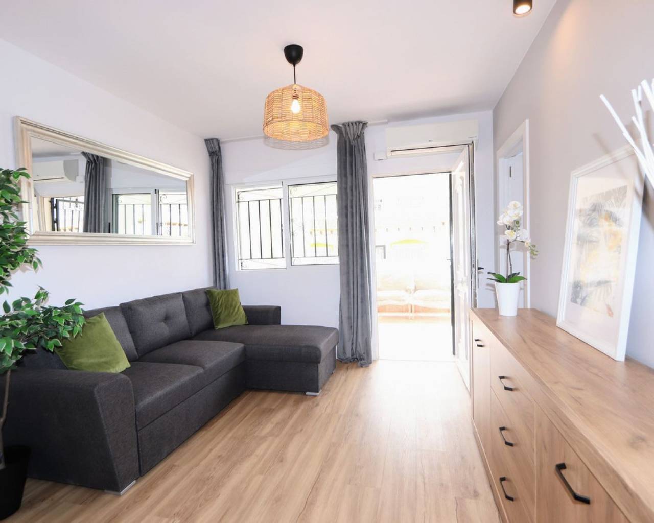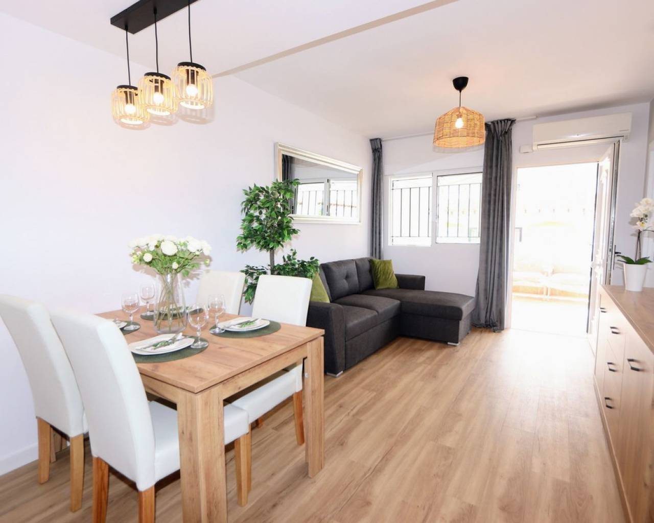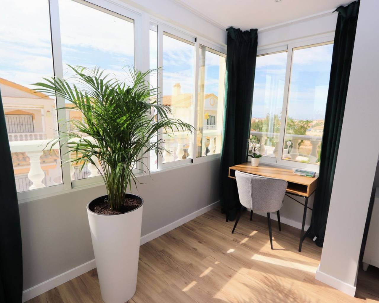 Nos enorgullece presentarles esta hermosa casa adosada completamente renovada, ubicada en la popular zona de Punta Prima, en el Residencial Naranjos II, a poca distancia del centro comercial Punta Marina, con numerosas tiendas, restaurantes y bares, y a solo 1 km de las playas. La propiedad ofrece 3 dormitorios con armarios empotrados, 2 baños, salón-comedor y cocina equipada con lavadero. Dispone de terraza privada, aire acondicionado y se vende amueblada. También cuenta con piscina comunitaria. Punta Prima es un destino turístico costero español situado en el sur de la Costa Blanca, a 30 minutos de dos aeropuertos internacionales, Murcia y Alicante. Sus playas son de las más limpias de la zona y cuentan con la Bandera Azul. Punta Prima también cuenta con un centro comercial con supermercado y numerosos restaurantes de cocina internacional. En la zona hay tres campos de golf, además de deportes acuáticos, pesca y vela. Los sábados puede visitar el mercado local de Playa Flamenca para comprar frutas, verduras, zapatos, bolsos y ropa. Para los más enérgicos, pueden llegar a Torrevieja a pie, con un simple paseo de treinta minutos a lo largo de la costa, o hay un servicio de autobús cada hora que los lleva allí.