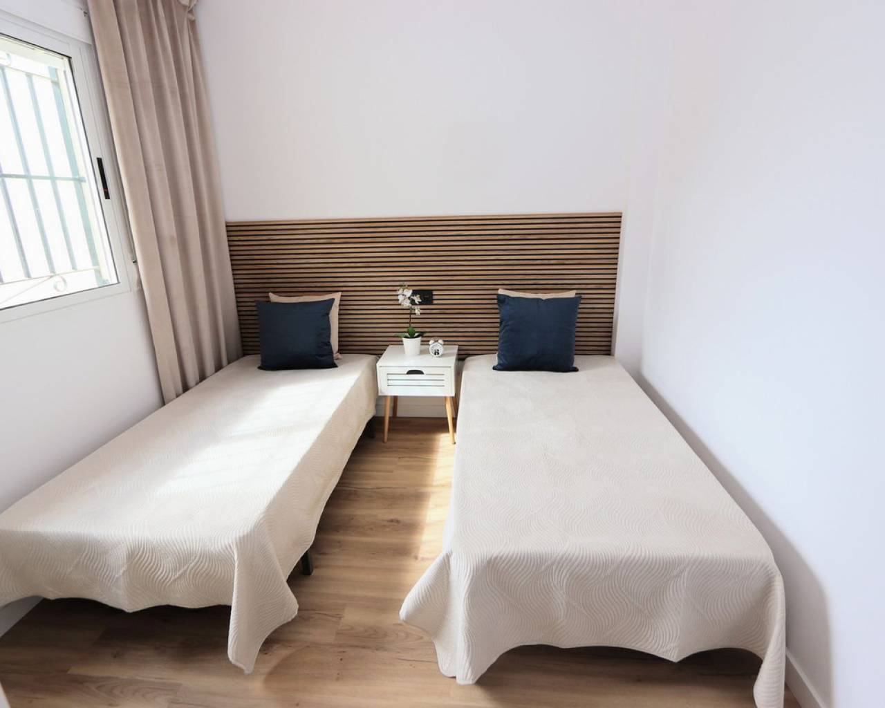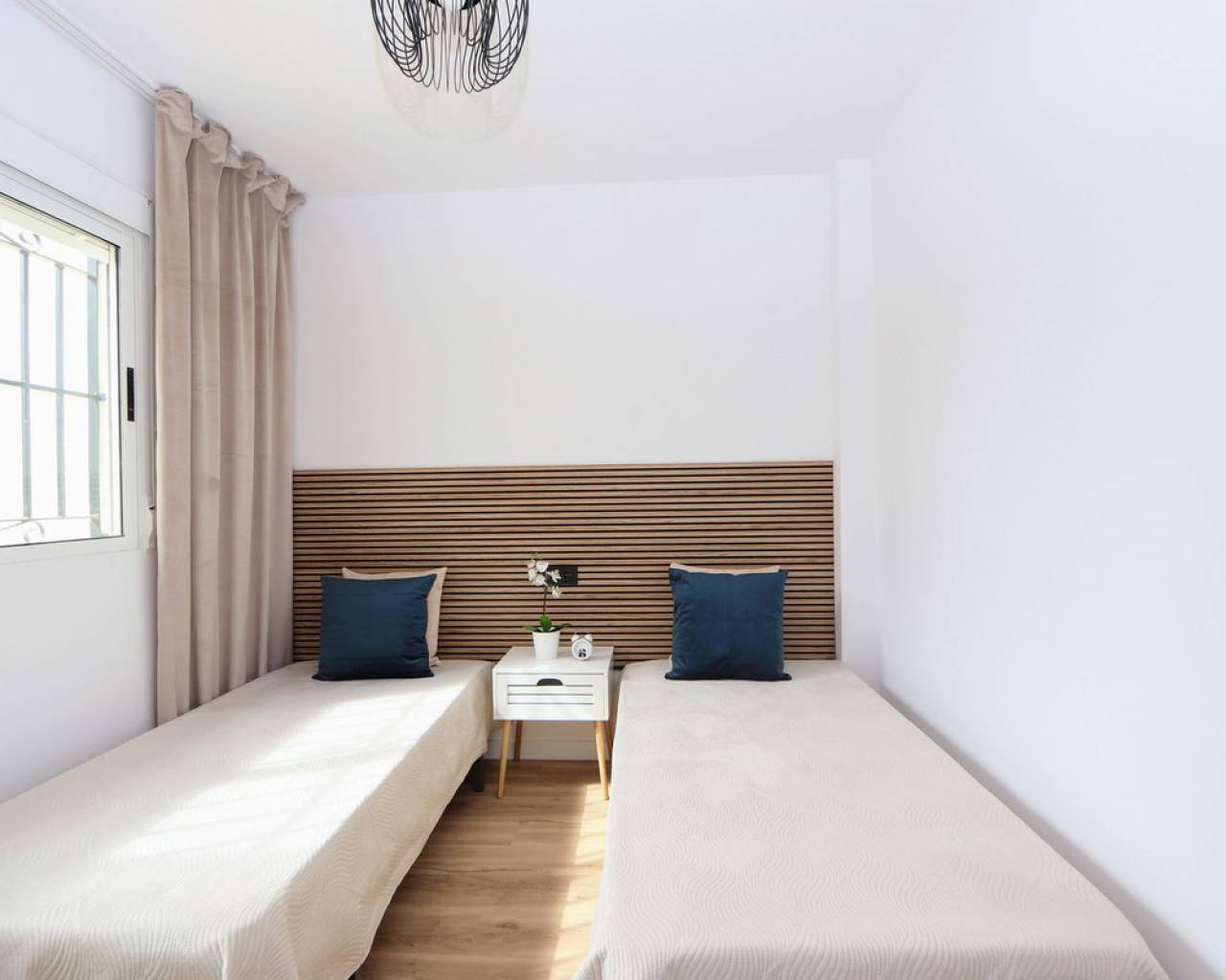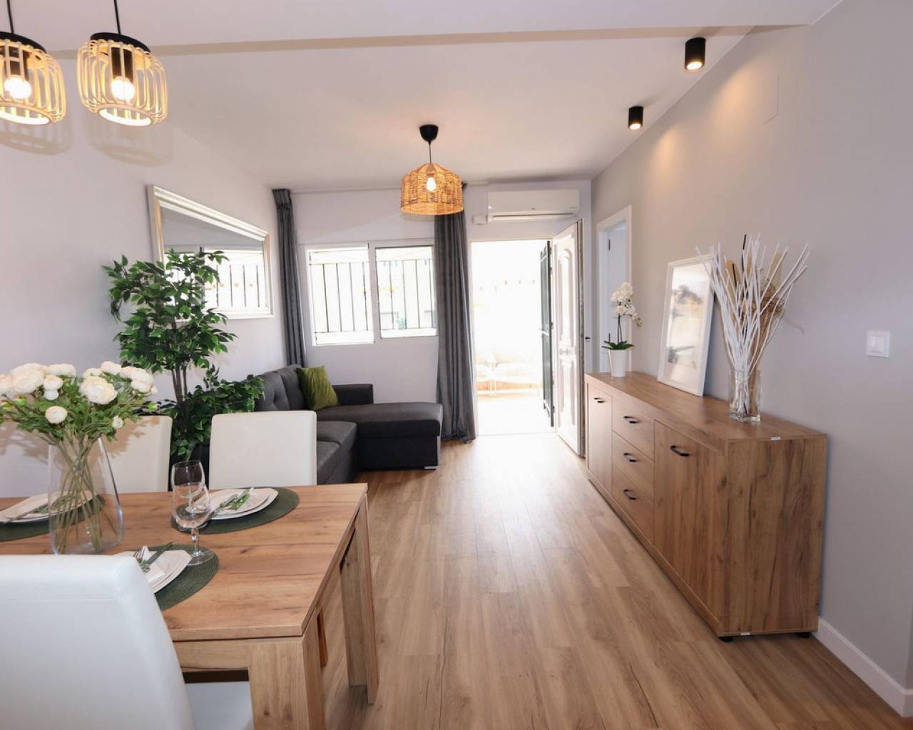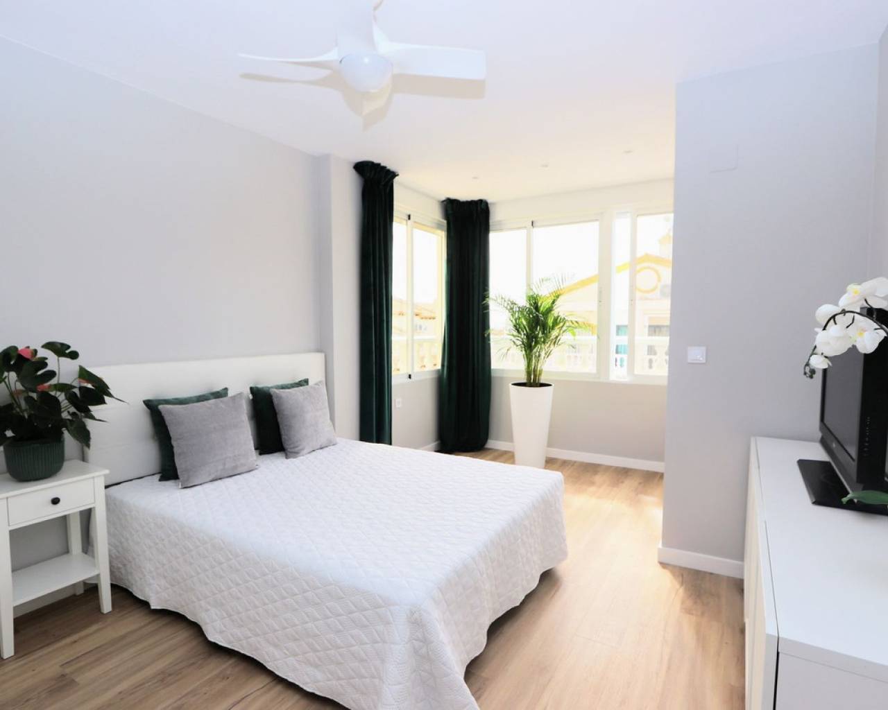 Nos enorgullece presentarles esta hermosa casa adosada completamente renovada, ubicada en la popular zona de Punta Prima, en el Residencial Naranjos II, a poca distancia del centro comercial Punta Marina, con numerosas tiendas, restaurantes y bares, y a solo 1 km de las playas. La propiedad ofrece 3 dormitorios con armarios empotrados, 2 baños, salón-comedor y cocina equipada con lavadero. Dispone de terraza privada, aire acondicionado y se vende amueblada. También cuenta con piscina comunitaria. Punta Prima es un destino turístico costero español situado en el sur de la Costa Blanca, a 30 minutos de dos aeropuertos internacionales, Murcia y Alicante. Sus playas son de las más limpias de la zona y cuentan con la Bandera Azul. Punta Prima también cuenta con un centro comercial con supermercado y numerosos restaurantes de cocina internacional. En la zona hay tres campos de golf, además de deportes acuáticos, pesca y vela. Los sábados puede visitar el mercado local de Playa Flamenca para comprar frutas, verduras, zapatos, bolsos y ropa. Para los más enérgicos, pueden llegar a Torrevieja a pie, con un simple paseo de treinta minutos a lo largo de la costa, o hay un servicio de autobús cada hora que los lleva allí.