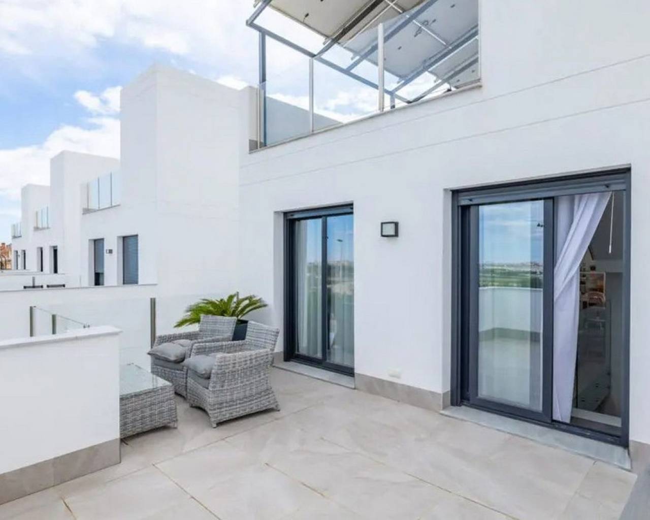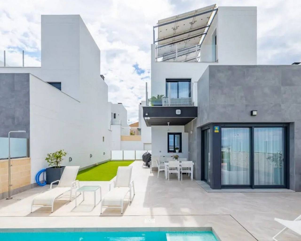 Eche un vistazo a esta fabulosa villa independiente de obra nueva en reventa ubicada en Los Balcones. La propiedad ofrece 3 amplios dormitorios con armarios empotrados, 3 baños, salón-comedor y cocina totalmente equipada. En la planta baja encontrará un dormitorio con baño en suite y vestidor, y en la planta superior otros 2 dormitorios y un baño. La propiedad cuenta con terrazas, solárium en la azotea con vistas a las salinas, calefacción por suelo radiante, paneles solares y un sótano de 70 m² con garaje y amplio espacio para guardar bicicletas o equipo deportivo. La propiedad también cuenta con piscina privada, ducha exterior, aire acondicionado y mucho más. La villa se encuentra en una zona tranquila y bien comunicada, con supermercados, farmacias, restaurantes y cafeterías a poca distancia a pie. La playa está a un corto paseo en bicicleta, y para ir de compras y disfrutar del popular bulevar La Zenia, a poca distancia en coche. Los Balcones es una zona tranquila con buenas conexiones de transporte. Se trata de una tranquila zona residencial con numerosos parques y zonas verdes, cerca de maravillosas playas de Torrevieja, como la Playa de los Náufragos, y a 7 km del parque acuático Aquopolis Torrevieja. También está cerca de hospitales como el Hospital Universitario de Torrevieja (a 3 km) y aeropuertos como el de Alicante (a 35 km) y el Aeropuerto Internacional de la Región de Murcia (a 43 km). Los Balcones cuenta con sus propios servicios cerca del centro comercial Filton, con servicios como supermercado, peluquería, bares, restaurantes y ferretería. También hay un gran supermercado y dos farmacias, una en cada extremo de la zona principal. Hay un colegio de primaria a poca distancia y la línea de autobús que conecta con todos los colegios de secundaria y con la ciudad de Torrevieja.