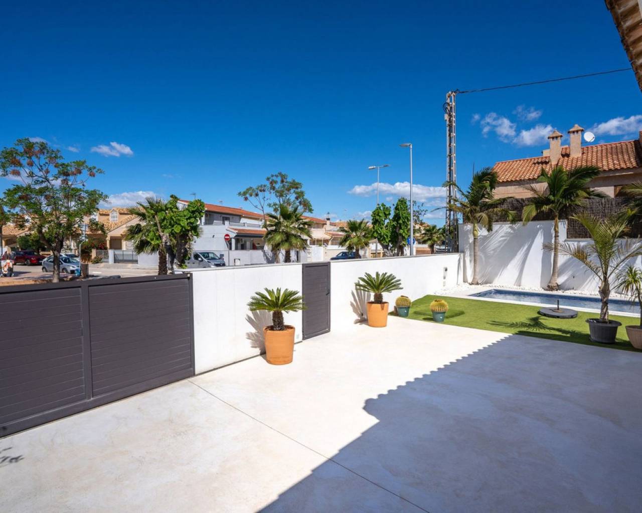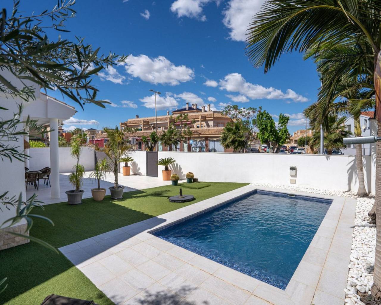 Nos complace presentar esta impresionante villa en Torre de la Horadada, con una ubicación ideal a pocos pasos de las hermosas playas. Esta espaciosa propiedad cuenta con 5 dormitorios, 3 baños, salón-comedor y cocina totalmente equipada. La villa se distribuye en dos plantas. La planta baja consta de 3 dormitorios, un baño, salón-comedor y cocina. La planta superior ofrece un dormitorio adicional, un baño y un trastero. En el exterior, encontrará encantadoras terrazas, jardín, garaje y piscina privada, ideales para disfrutar del sol español. Torre de la Horadada es una encantadora localidad costera del sur de la Costa Blanca, conocida por sus playas de arena fina, ideales para familias. Su ubicación ofrece un cómodo acceso a los aeropuertos de Alicante y Murcia. Situada al norte del Mar Menor y al vecino Pilar de la Horadada, también está a poca distancia de Torrevieja, La Zenia, Mil Palmeras, Cabo Roig, Campoamor, Playa Flamenca y Punta Prima. Este complejo turístico se considera uno de los más pintorescos del sur, con una atractiva costa, encantadores paseos marítimos y una histórica torre de vigilancia. También encontrará numerosas playas de arena, un clima soleado constante y un acogedor puerto deportivo con amplio espacio de amarre. Al ser uno de los complejos turísticos más meridionales de la Costa Blanca, junto con Pilar de la Horadada y El Mojón, dirigiéndose hacia el sur desde Torre de la Horadada se llega a la Costa Cálida y el Mar Menor, con la antigua ciudad de Cartagena un poco más lejos. Torre de la Horadada conserva el ambiente de un pequeño pueblo español, evitando los altos bloques de apartamentos comunes en gran parte de la Costa Blanca. El casco antiguo cuenta con una plaza tradicional y una iglesia, además de servicios esenciales como una farmacia, un banco, tres supermercados y una variedad de restaurantes que ofrecen tapas, especialidades españolas, mariscos y algunos platos internacionales. Creemos que esta villa ofrece una maravillosa oportunidad para disfrutar del mejor estilo de vida de la Costa Blanca. Háganos saber si tiene alguna pregunta o desea concertar una visita.