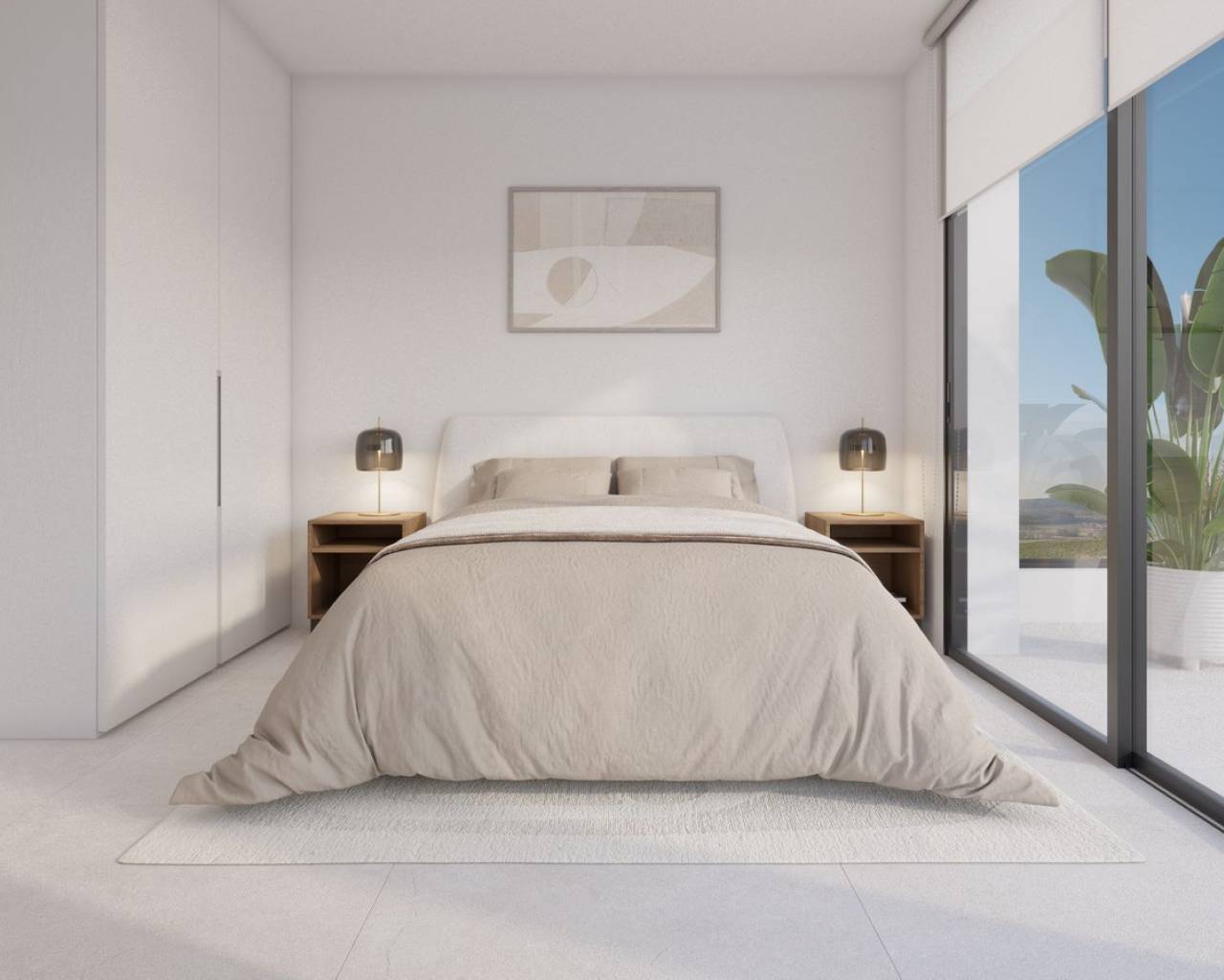 Exclusivas villas en primera línea de golf en Hacienda del Álamo, Costa Cálida Modernas villas en uno de los mejores complejos turísticos de golf de España Descubra una oportunidad única de adquirir una villa de lujo de nueva construcción en primera línea del complejo turístico Hacienda del Álamo Golf Resort, situado entre las históricas ciudades de Cartagena y Murcia, en el corazón de la Costa Cálida. Estas villas contemporáneas están diseñadas para ofrecer comodidad, privacidad y elegancia, y se encuentran en un entorno excepcional dedicado al golf y al ocio. Cada propiedad ofrece una distribución espaciosa con 3 dormitorios, 2 baños y un aseo de invitados, en un diseño de una o dos plantas, según el modelo elegido. Con generosas parcelas a partir de 700 metros cuadrados y una superficie construida de 146 metros cuadrados, estas viviendas ofrecen un amplio espacio para la vida interior y exterior. Características y acabados de alta calidad Estas villas en primera línea están equipadas con todas las comodidades modernas para garantizar el máximo confort y estilo, incluyendo: Piscina privada y jardín paisajístico con sistema de riego por goteo Cocina totalmente equipada con armarios y electrodomésticos incluidos Aire acondicionado por conductos en toda la propiedad Baños con muebles, espejos y mamparas de ducha Ventanas de aluminio con rotura de puente térmico y doble acristalamiento Acceso a una gran piscina comunitaria con césped natural y zona infantil Vida de lujo en Hacienda del Álamo Golf Resort Hacienda del Álamo es conocida por ser uno de los mejores complejos turísticos de golf de España, ya que ofrece a sus residentes un estilo de vida relajado, deportivo y cómodo. Campo de golf de 18 hoyos y academia Instalaciones deportivas que incluyen tenis, pádel, gimnasio y clases de fitness Casa club principal con vistas panorámicas, un restaurante de cocina mediterránea y terrazas soleadas Hotel y spa de 4 estrellas para el relax y el bienestar Espacios para toda la familia, con zonas de juegos infantiles, piscinas y carriles bici. Pueblo tradicional español con tiendas, cafeterías y nuevos restaurantes que abrirán próximamente. Ubicación estratégica con excelentes conexiones Aeropuerto de Corvera (Murcia): 18 km (aprox. 15 minutos) Cartagena: 36 km Centro de Murcia: 40 km Playas del Mar Menor: 28 km Centros comerciales (Dos Mares, Espacio Mediterráneo): a menos de 30 km
