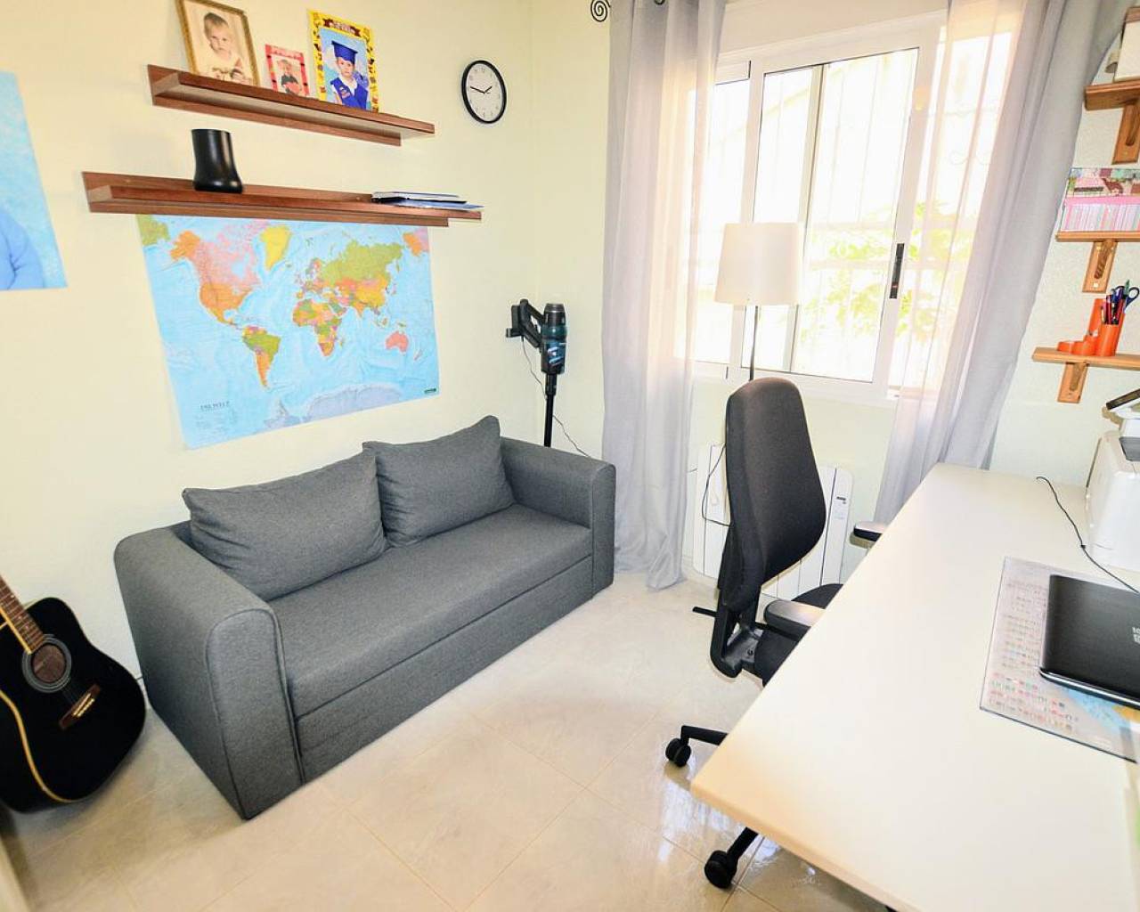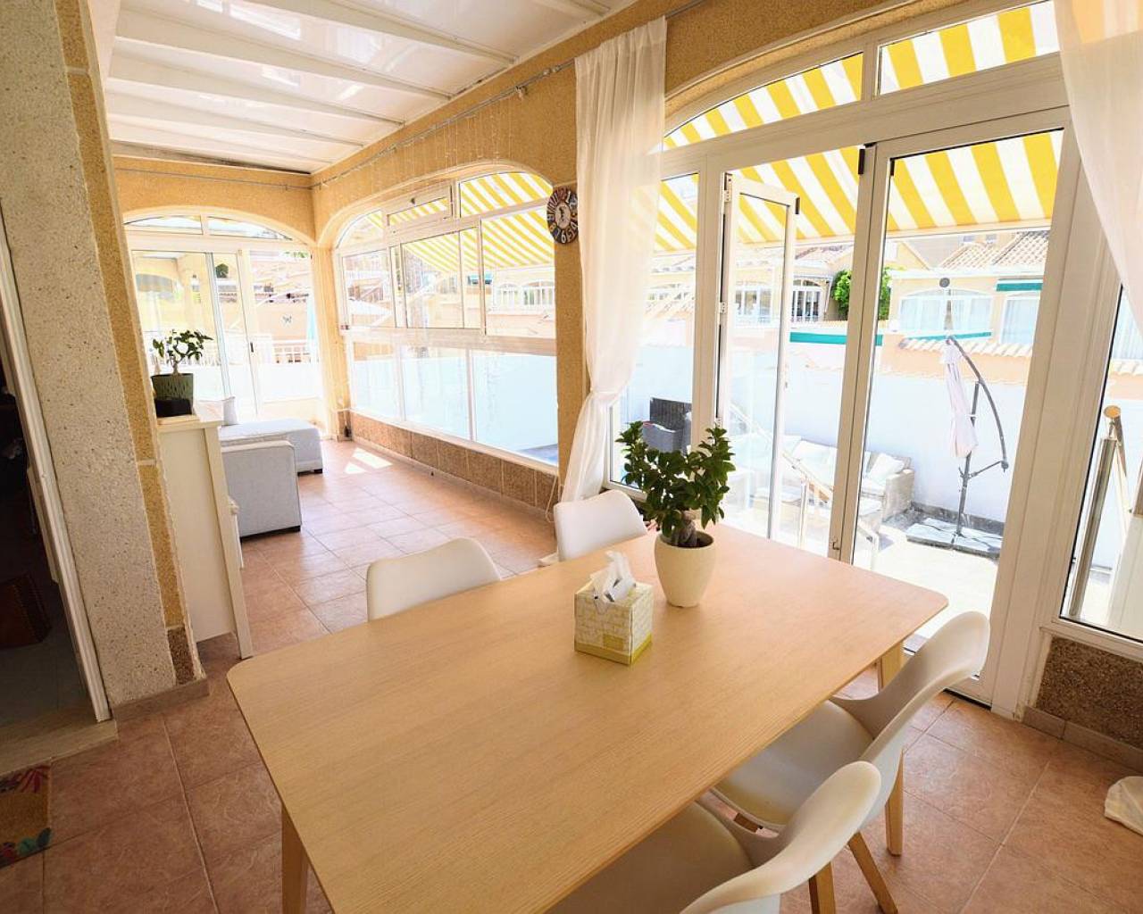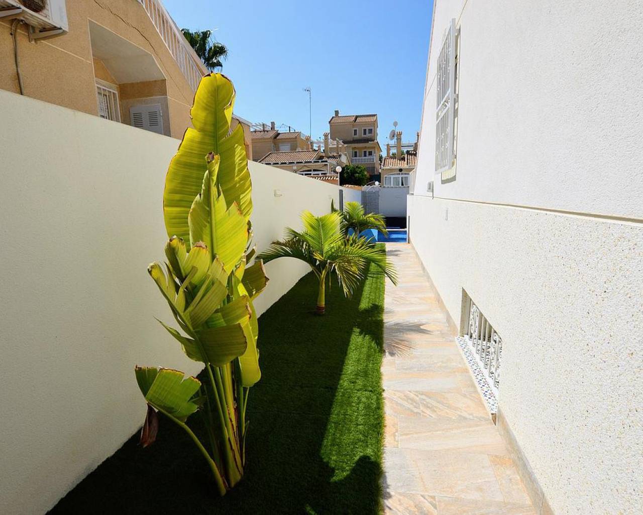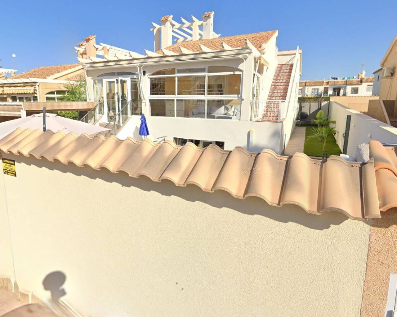 Nos complace presentar esta hermosa villa independiente renovada, perfectamente ubicada a un corto paseo de todas las comodidades en la urbanización Las Palmeras de Los Altos. Esta propiedad con orientación sur disfruta de luz natural durante todo el día y cuenta con: * 3 dormitorios con armarios empotrados * 3 baños * 2 salones-comedor, cada uno con chimenea * 2 cocinas totalmente equipadas con electrodomésticos nuevos * Terrazas privadas que rodean la villa * Aparcamiento privado * Ducha exterior * Una encantadora piscina privada de agua salada Para mayor atractivo, la villa incluye escaleras interiores y exteriores que conducen a un amplio sótano completamente renovado. Este espacio adicional ofrece otra cocina totalmente equipada, una sala de estar y un baño con sauna. Además, encontrará un solárium en la azotea perfecto para disfrutar del sol, una terraza acristalada, aire acondicionado en toda la propiedad, radiadores eléctricos y la villa se ofrece completamente amueblada. Para apreciar plenamente todo lo que esta excepcional propiedad ofrece, le recomendamos encarecidamente visitarla. Los Altos, un barrio residencial de Torrevieja situado a unos 5 kilómetros del animado centro de la ciudad, ofrece una gran variedad de servicios. Entre ellos, se incluyen un gran supermercado Consum, una variedad de restaurantes y bares, un colegio de primaria y una oficina de correos. Dispone de un cómodo transporte público mediante una línea principal de autobuses, que ofrece fácil acceso al Hospital de Torrevieja en Los Balcones y un rápido trayecto de 10 minutos a la hermosa playa de Punta Prima. Punta Prima ofrece una gran variedad de restaurantes, supermercados, tiendas de electrodomésticos y muebles, así como un McDonald's con servicio para llevar. En resumen, Los Altos es un destino vacacional ideal para toda la familia en cualquier época del año.