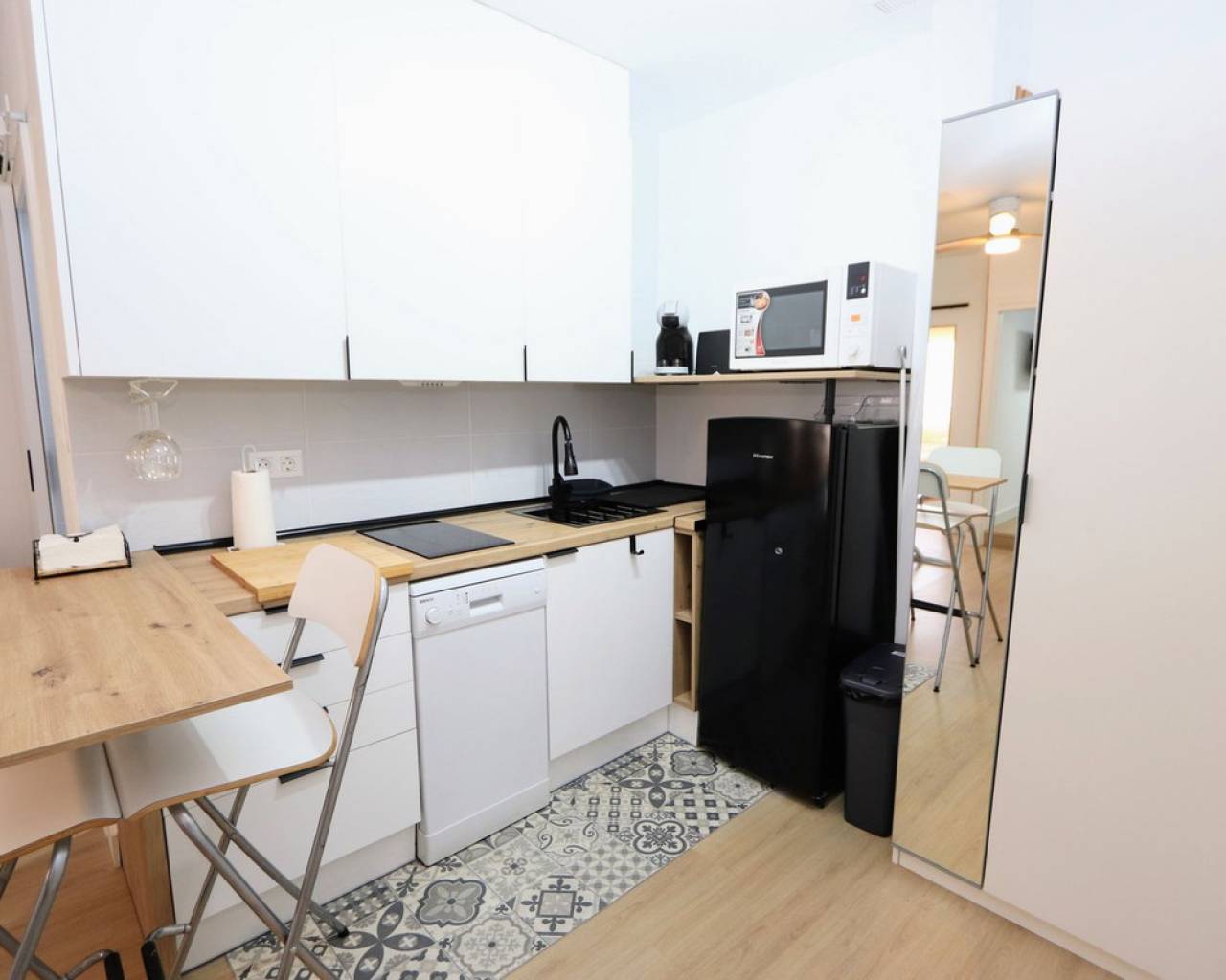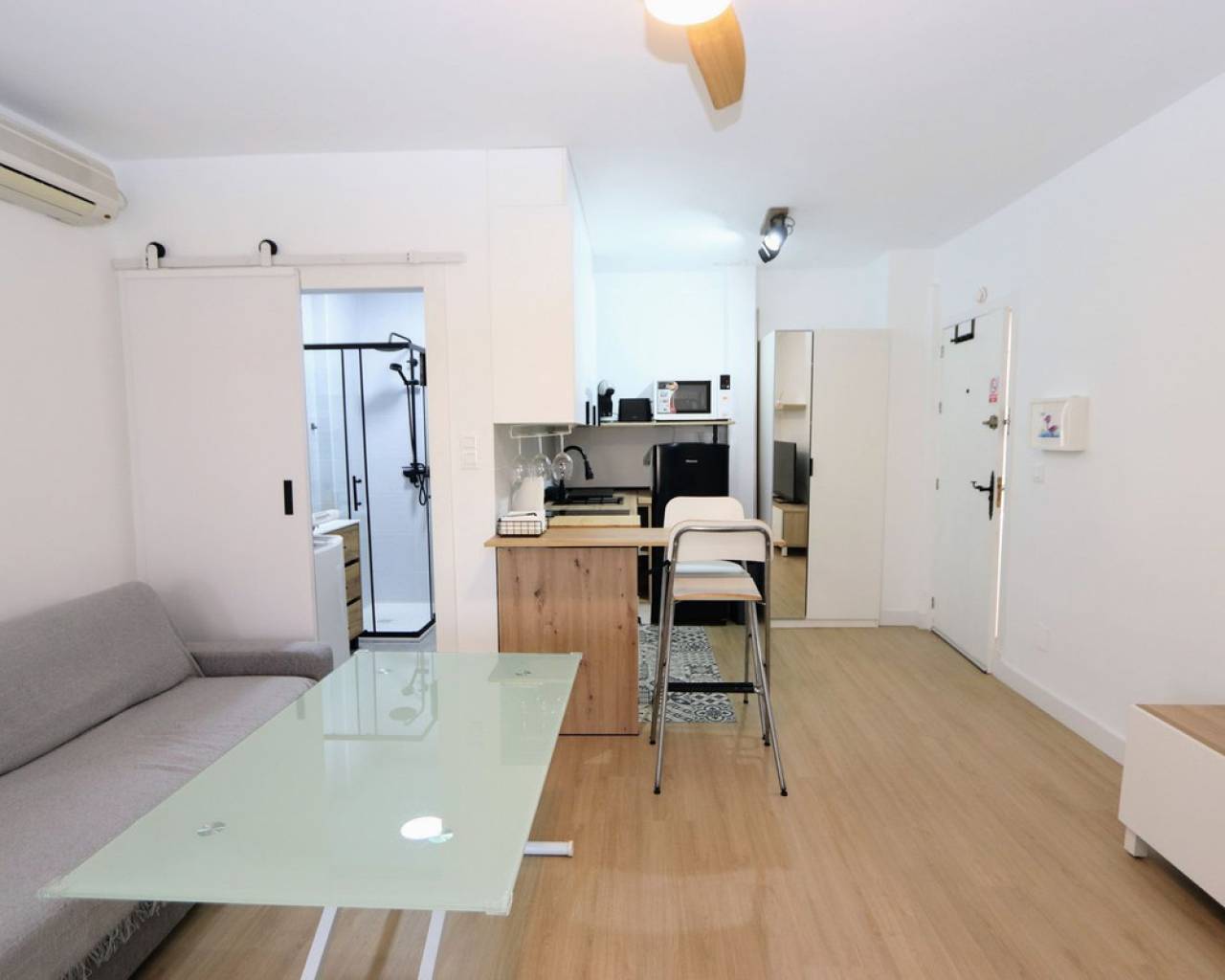 Nos complace presentarles un precioso apartamento en primera planta, recién reformado, en El Mojón, Pilar de la Horadada. Este apartamento goza de una ubicación ideal a solo 200 metros de las playas y a poca distancia a pie de bares y restaurantes. La propiedad cuenta con dos dormitorios con armarios empotrados, un baño, salón-comedor y cocina totalmente equipada con electrodomésticos. También dispone de aire acondicionado, acceso a un solárium comunitario y se vende amueblado. El Mojón es un encantador pueblo costero situado junto al mar Mediterráneo. Su singularidad reside en que sus viviendas pertenecen tanto a la provincia de Alicante (Comunidad Valenciana) como a la Región de Murcia, con un pequeño canal que separa ambas zonas. La Playa del Mojón, una hermosa playa con paseo marítimo adyacente, se encuentra en el corazón de El Mojón y linda con el Parque de las Salinas y Arenales de San Pedro del Pinatar. Al norte, encontrará la playa de la Torre, y más al norte, la playa homónima de Pilar de la Horadada y la playa de Higuericas en Torre de la Horadada. Pilar de la Horadada goza de una ubicación privilegiada cerca de las tranquilas playas de arena del Mar Menor. La zona es principalmente agrícola, rodeada de huertas, frutales, cítricos y granjas. El pueblo presume de un litoral de arena fina y aguas cristalinas, con atractivas calas que ofrecen una amplia gama de servicios. La playa de Mil Palmeras es perfecta para los amantes de la vela, ya que conecta con las calas de Rincón y Puerto, esta última con un animado paseo marítimo durante las noches de verano. La playa más extensa es Las Villas, detrás del puerto deportivo de Torre Horadada, seguida de la playa más pequeña de La Mojón, que llega hasta la frontera con Murcia. Creemos que este apartamento ofrece una fantástica oportunidad en una ubicación privilegiada.