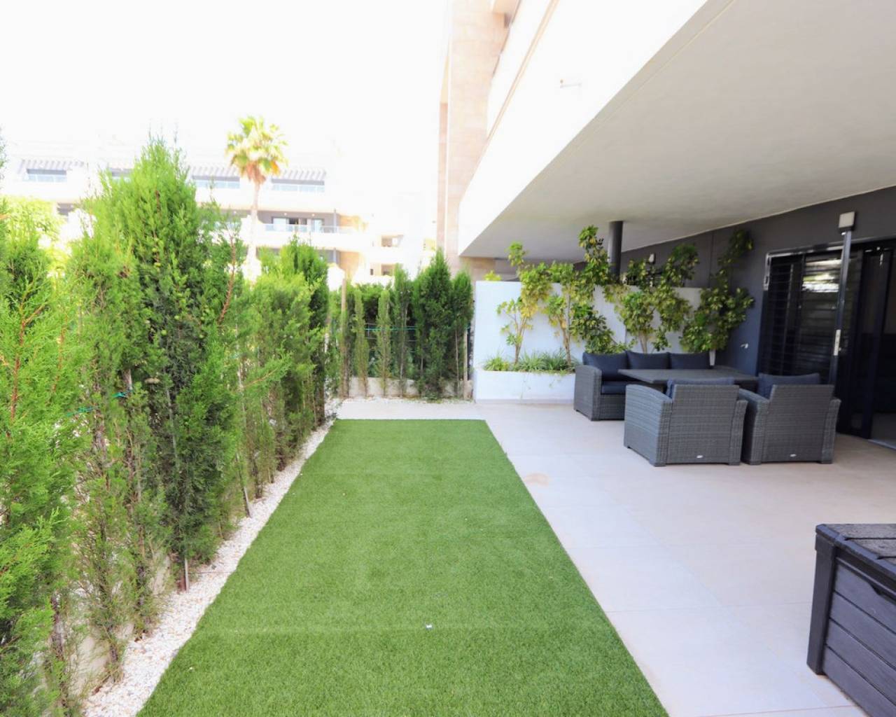 Bienvenido a Flamenca Village en Playa Flamenca, un hermoso complejo que le ofrece amplios parques, senderos para caminar y andar en bicicleta. Piscinas exteriores climatizadas y no climatizadas para adultos y niños, jacuzzis, parques y un parque acuático infantil, lagos y fuentes decorativas, un relajante salón con bar y barra integrada en la piscina, una pérgola con terraza, un gimnasio con fachada de cristal y vistas panorámicas al lago y una sauna finlandesa. Este increíble apartamento en planta baja consta de 3 dormitorios con armarios empotrados, 2 baños, salón-comedor y cocina totalmente equipada con lavadero. La propiedad cuenta con una amplia terraza, trastero, aire acondicionado, suelo radiante en los baños, aparcamiento subterráneo y se vende amueblado. Ubicación: Flamenca Village A pocos pasos de Flamenca Village podrá nadar en la hermosa Playa Flamenca. Playa La Zenia, Playa Punta Prima, Cala Las Estacas y Cala Capitán son otras opciones cercanas en Orihuela Costa. Estas playas ofrecen numerosos servicios recreativos y de ocio, así como la posibilidad de practicar deportes acuáticos. Playa Flamenca es una de las principales zonas de crecimiento de Orihuela Costa. Cuenta con una amplia gama de servicios, incluyendo transporte público, algunos de los principales supermercados y diversas opciones de ocio y gastronomía. Todos los servicios necesarios para la vida diaria se encuentran cerca de la urbanización: supermercados, restaurantes, transporte, etc. Además, las ciudades de Torrevieja y Orihuela y el pueblo de Pilar de La Horadada están muy cerca, así como el Centro Comercial La Zenia, el más grande de Alicante y uno de los más importantes de la región, con una superficie de 80.000 m².