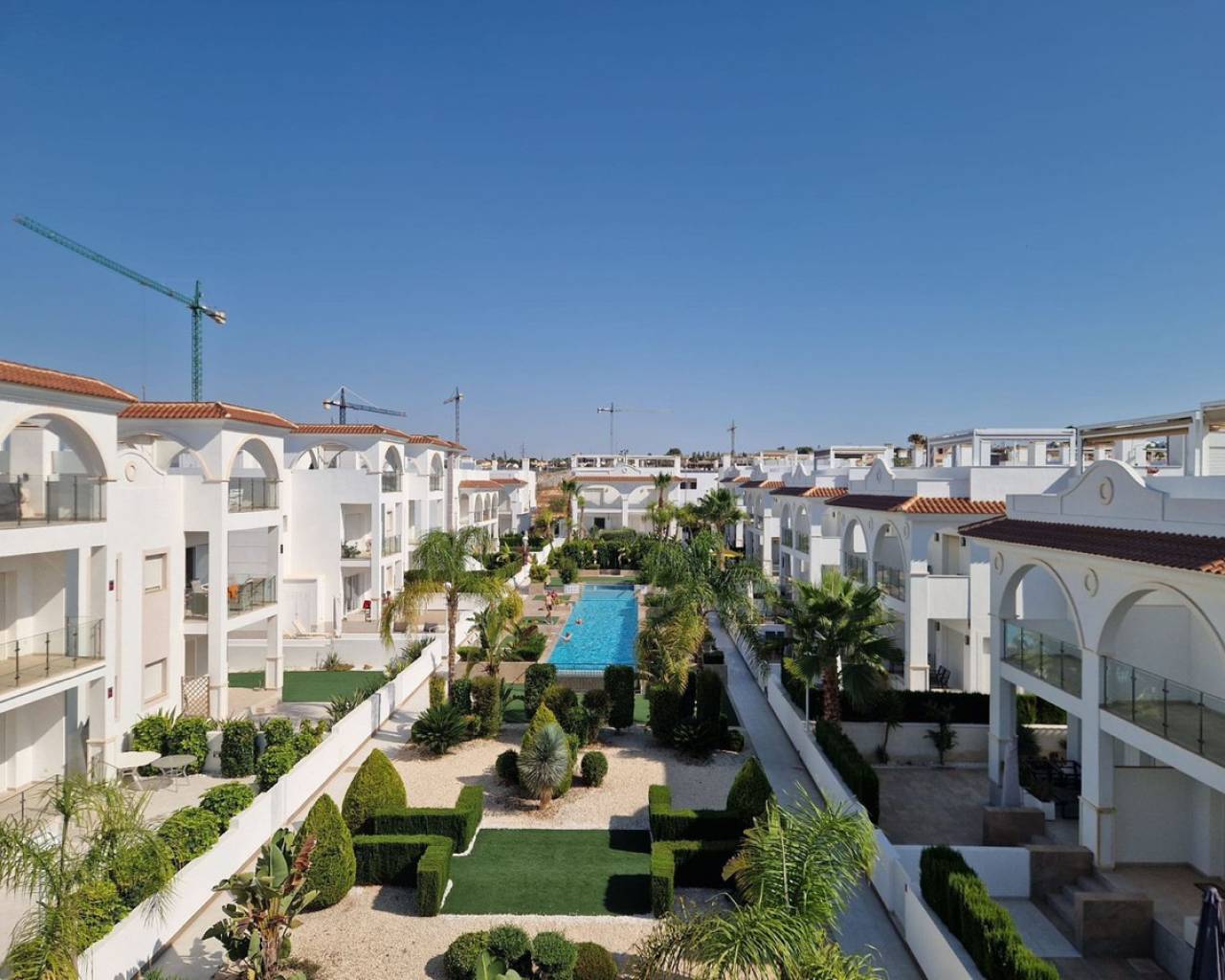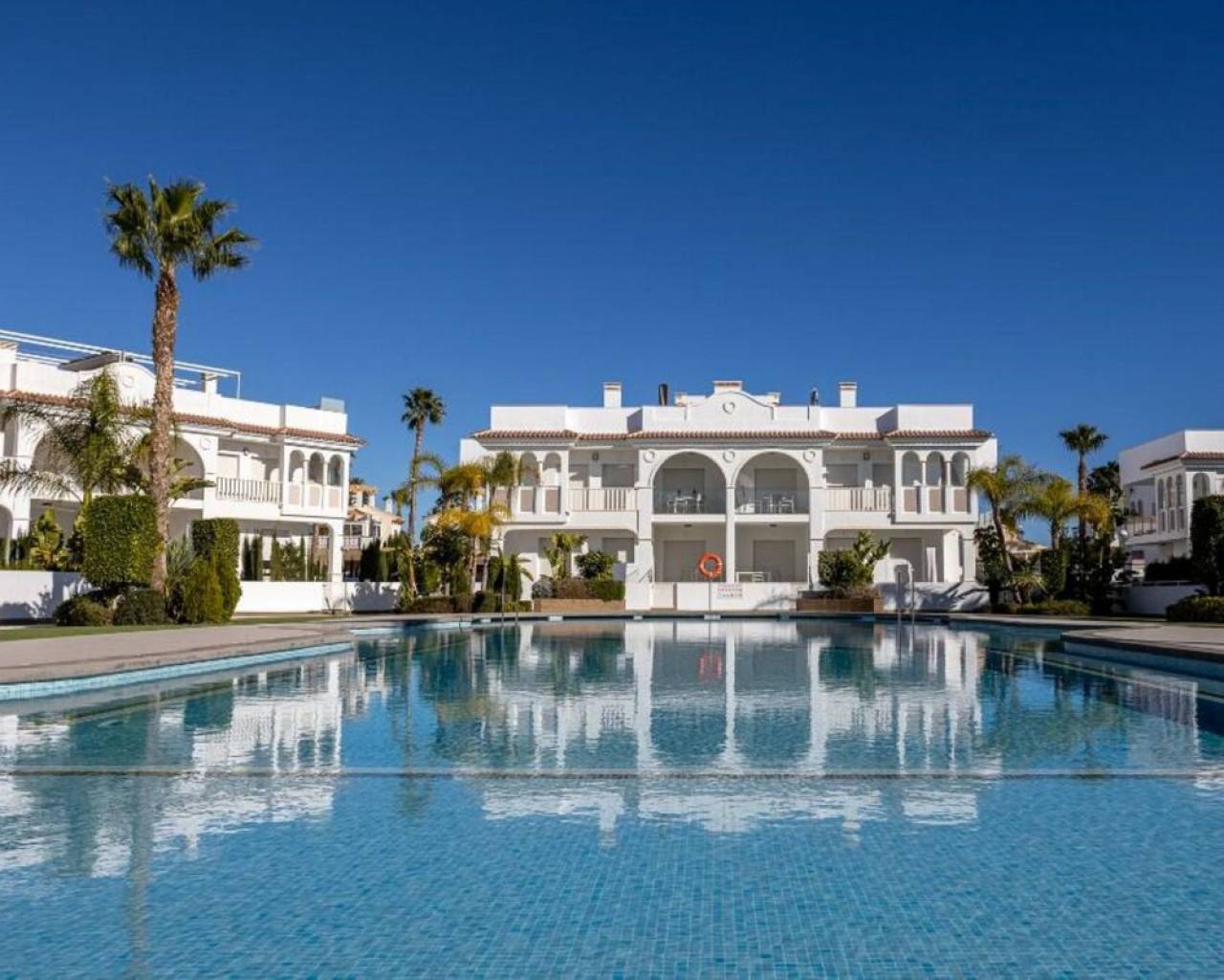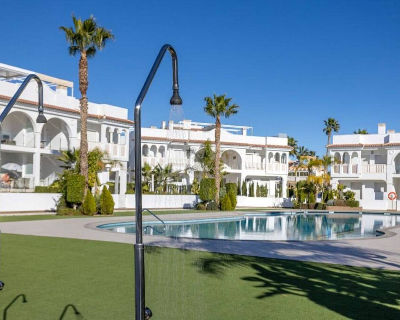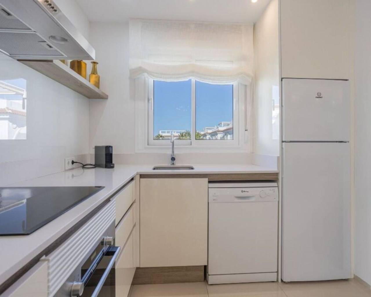 Enclavado en la impresionante Costa Blanca Sur, en la encantadora localidad de Rojales/Quesada, el ático 'Allegra' promete un refugio excepcional. A un paso del balneario de Torrevieja y cerca de la encantadora Guardamar del Segura, con sus hermosas playas de arena, este ático ofrece una accesibilidad inigualable. Con el Aeropuerto de Alicante-Elche convenientemente ubicado a solo 30 minutos, llegar a este hermoso destino es pan comido. El ático 'Allegra' presenta un meticuloso diseño con interiores modernos y está equipado con todas las comodidades modernas, ofreciendo un ambiente cálido y acogedor que le hará sentirse como en casa al instante. La propiedad cuenta con dos amplios dormitorios completamente amueblados, dos modernos baños y una cocina totalmente equipada. El amplio salón está decorado con muebles muy cómodos, y podrá disfrutar de su tiempo libre en dos terrazas, incluyendo un balcón con una mesa y cuatro sillas y una terraza excepcionalmente grande en la azotea. Desde aquí, podrá disfrutar de las impresionantes vistas a la laguna y al hermoso jardín con tres amplias piscinas comunitarias. Para quienes buscan comodidades adicionales, hay un parque infantil, gimnasio y pistas de tenis gratuitas en las inmediaciones. La terraza de la azotea es especialmente impresionante, con una amplia mesa de comedor con seis sillas bajo un toldo retráctil, un acogedor conjunto de salón, tumbonas, una cocina exterior completa con barbacoa, nevera y fregadero, así como una ducha exterior con agua fría y caliente. Además, el ático ofrece aparcamiento exterior seguro con tres puertas eléctricas y una plaza de aparcamiento privada, lo que garantiza tranquilidad durante toda su estancia. El ático 'Allegra' personifica la vida de lujo con su combinación de confort moderno, impresionantes vistas y cómodo acceso a lo mejor de la Costa Blanca Sur.
