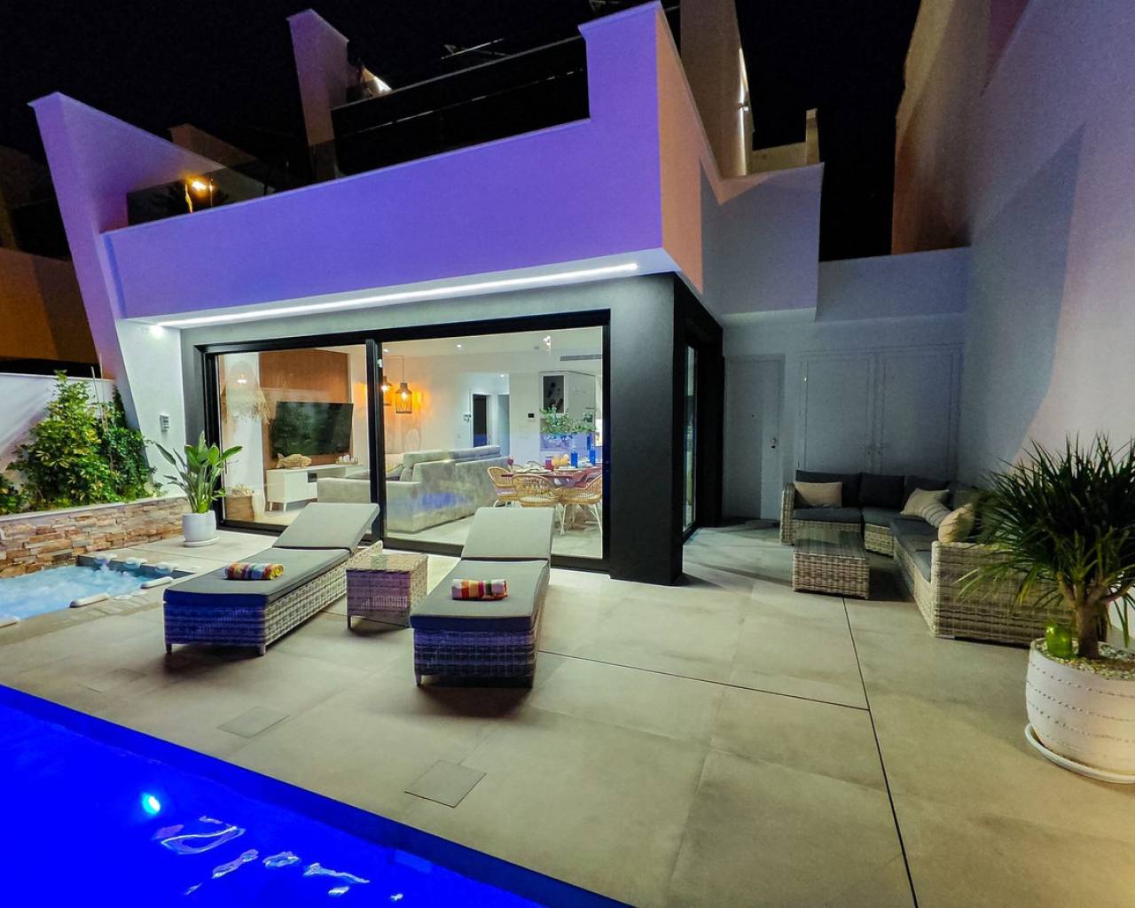 Nos complace presentarles esta hermosa villa independiente ubicada en una popular zona de Santiago de la Ribera, a solo 800 m de las playas. Esta villa ofrece todo lo que pueda desear y mucho más: tres dormitorios con armarios empotrados y terrazas privadas, tres baños con suelo radiante, un amplio salón-comedor y una cocina totalmente equipada. La propiedad goza de abundante luz natural y puertas correderas que dan acceso directo a jardines privados, terrazas y piscina privada. Además, incluye garaje, lavadero, persianas eléctricas, solárium en la azotea con pérgola, cocina exterior y sistema de cerradura inteligente con sensor de huella dactilar. Esta propiedad también ofrece una alta rentabilidad como alquiler vacacional, gracias a su proximidad a la playa, piscina privada y amplias instalaciones, ideales para familias y grupos. Santiago de la Ribera es un encantador pueblo situado a orillas del Mar Menor. Originalmente un sencillo pueblo pesquero, se ha convertido en un popular destino vacacional, atrayendo tanto a visitantes españoles como de toda Europa. Aunque moderno, Santiago conserva su tradicional ambiente de pueblo pesquero. Cuenta con un hermoso paseo marítimo bordeado de majestuosas palmeras y dos kilómetros de maravillosas playas de arena. Desde aquí, puede disfrutar de un paseo en barco por las tranquilas aguas del Mar Menor hasta la Franja de La Manga. Si bien la principal zona comercial se encuentra en San Javier, Santiago ofrece varias tiendas para explorar, especialmente los miércoles por la mañana, cuando se celebra un gran mercadillo. Aquí tiene algunas ideas para disfrutar de Santiago de la Ribera: * Pase la mañana del miércoles en el gran mercado de Santiago y luego haga un paseo en barco de 40 minutos por el Mar Menor hasta la Franja de La Manga para almorzar en el Puerto Deportivo Tomás Maestre, antes de regresar a Santiago para un paseo nocturno por el paseo marítimo. * Combine su viaje a Santiago con visitas a otros pueblos y ciudades del Mar Menor. Punta Brava es una excelente opción, ya que ofrece un magnífico mirador con impresionantes vistas de la laguna hacia la Franja de La Manga y la Sierra Minera. * Santiago también es una parada conveniente si su vuelo se retrasa en el Aeropuerto de Murcia-San Javier, ya que está a solo 10 minutos en coche. Si desea más información o concertar una visita, contáctenos.