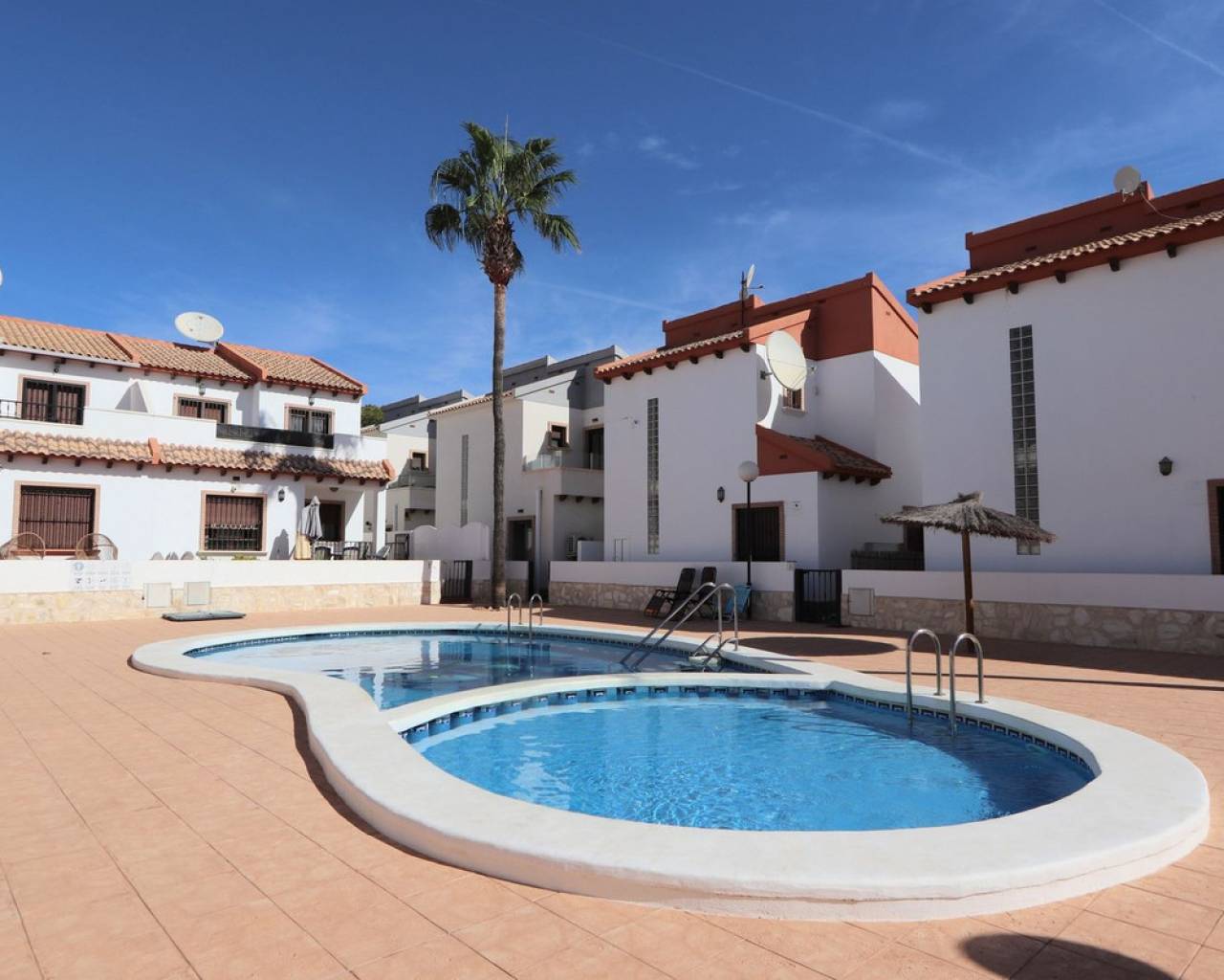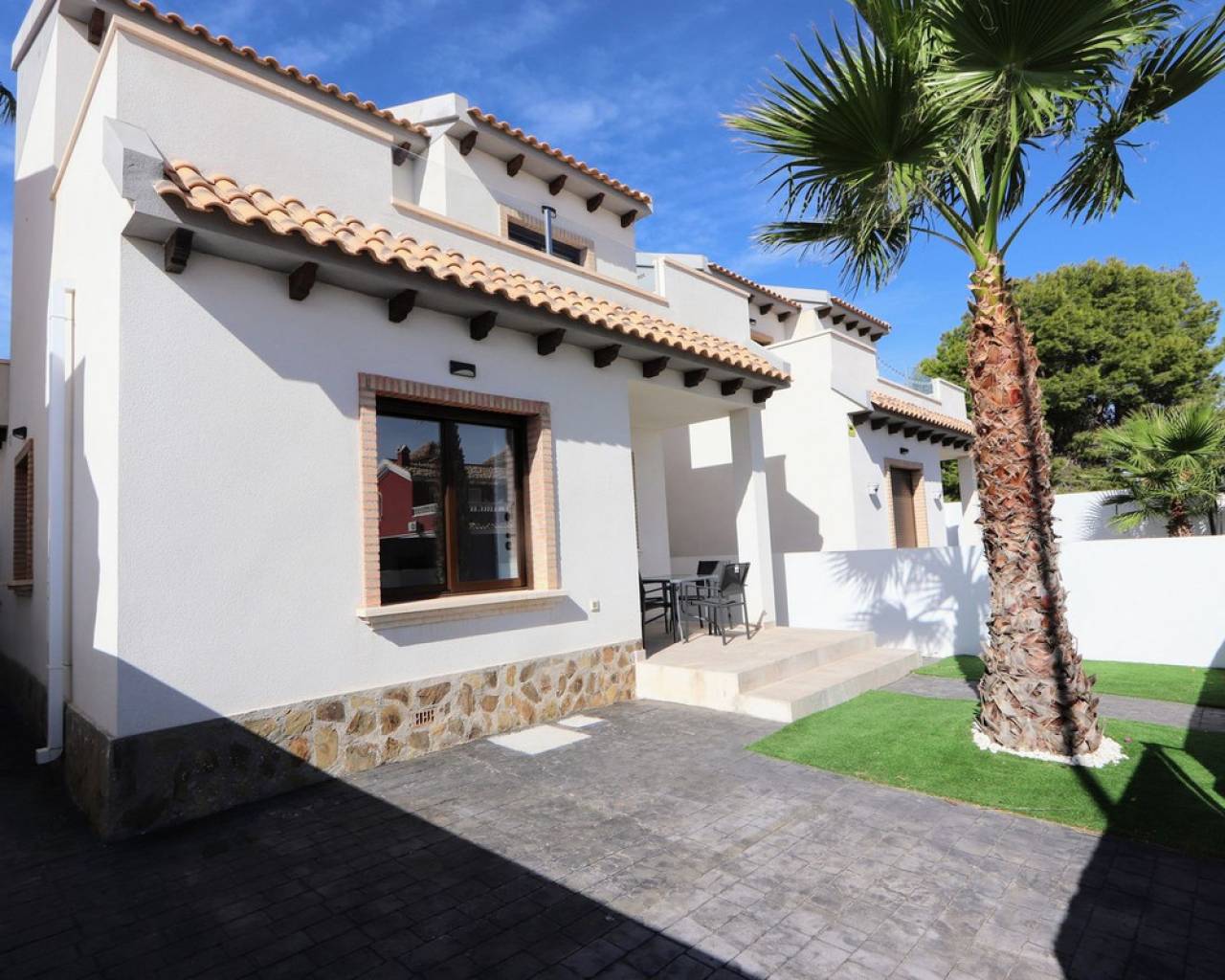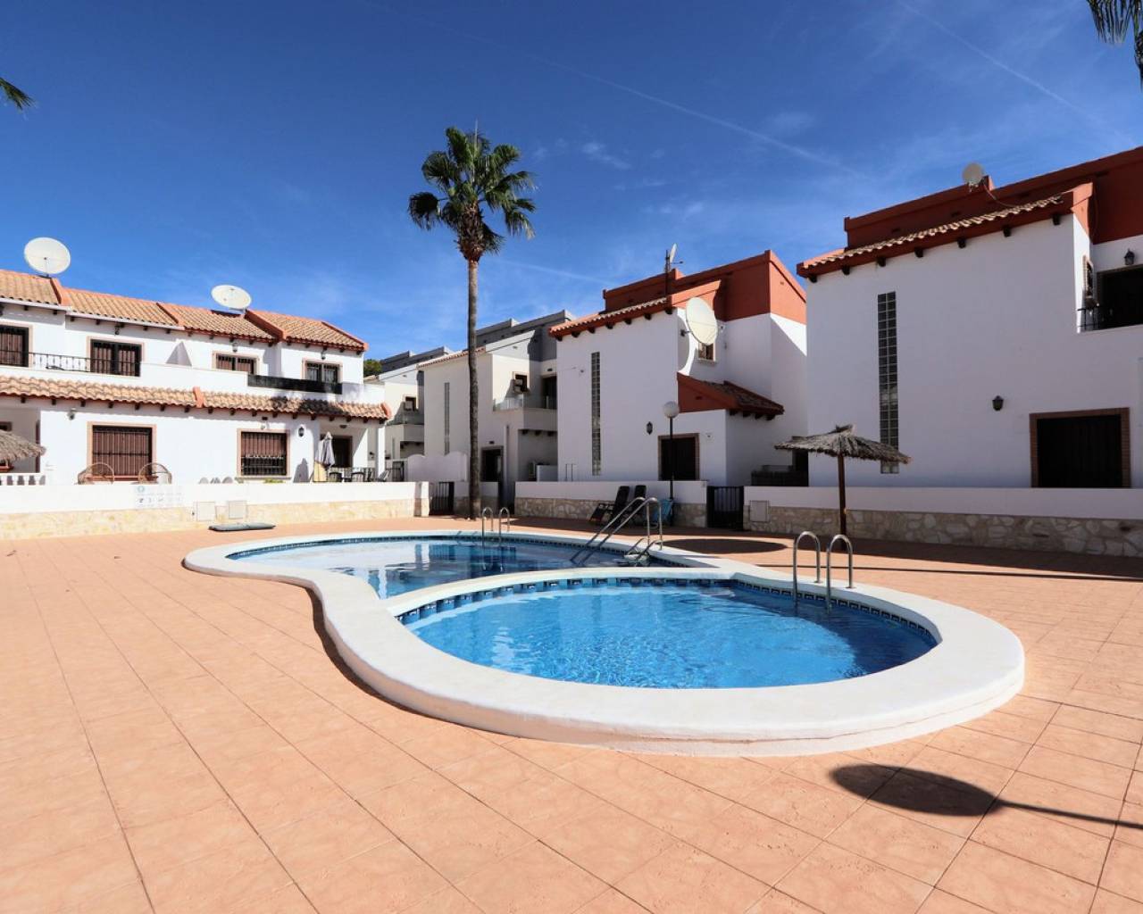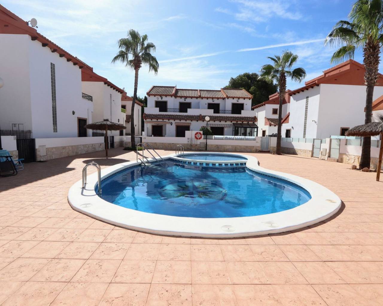 Eche un vistazo a esta fabulosa villa independiente ubicada en Villamartín. Esta propiedad cuenta con 3 dormitorios, 2 baños, un amplio salón-comedor y una cocina totalmente equipada. También cuenta con una soleada terraza privada, jardín y aparcamiento privado. Para su comodidad, la villa incluye aire acondicionado en toda la vivienda, persianas eléctricas y se vende amueblada. Una de las grandes ventajas de este complejo es la piscina comunitaria, a la que se accede directamente desde la parte trasera de la propiedad. Villamartín se encuentra en el interior, cerca de hermosas playas como Dehesa de Campoamor, Cabo Roig, La Zenia, Playa Flamenca y Punta Prima, aunque forma parte de la zona de Orihuela Costa. El pueblo ofrece varios centros comerciales, siendo Villamartín Plaza el más grande. Esta plaza es un popular destino gastronómico, con un encanto español que evoca la esencia de la Costa del Sol, con sus azulejos de cerámica, balcones de hierro y lámparas, y ofrece una amplia variedad gastronómica y de entretenimiento para todas las edades. Además, el consolidado campo de golf de Villamartín de 18 hoyos está cerca.