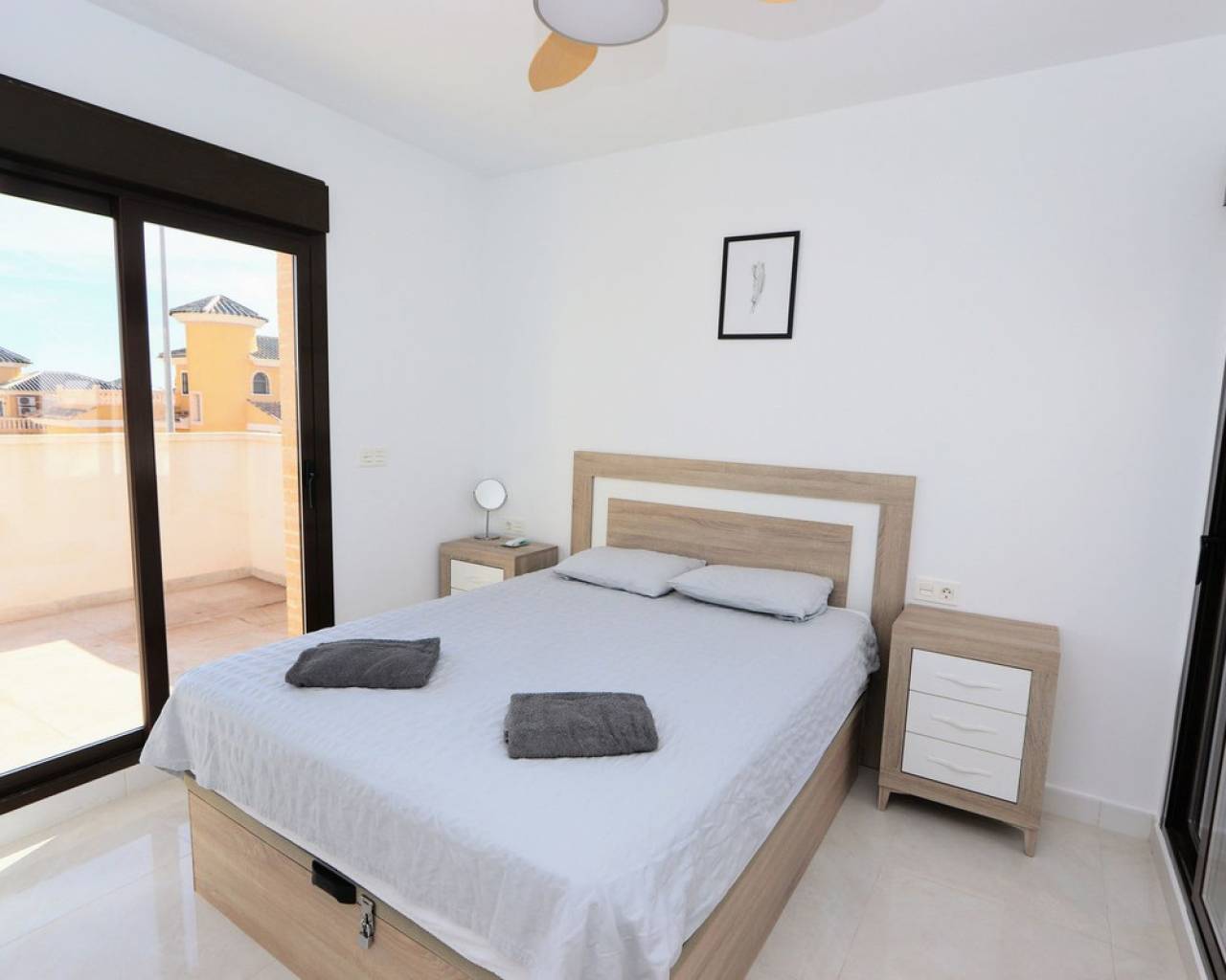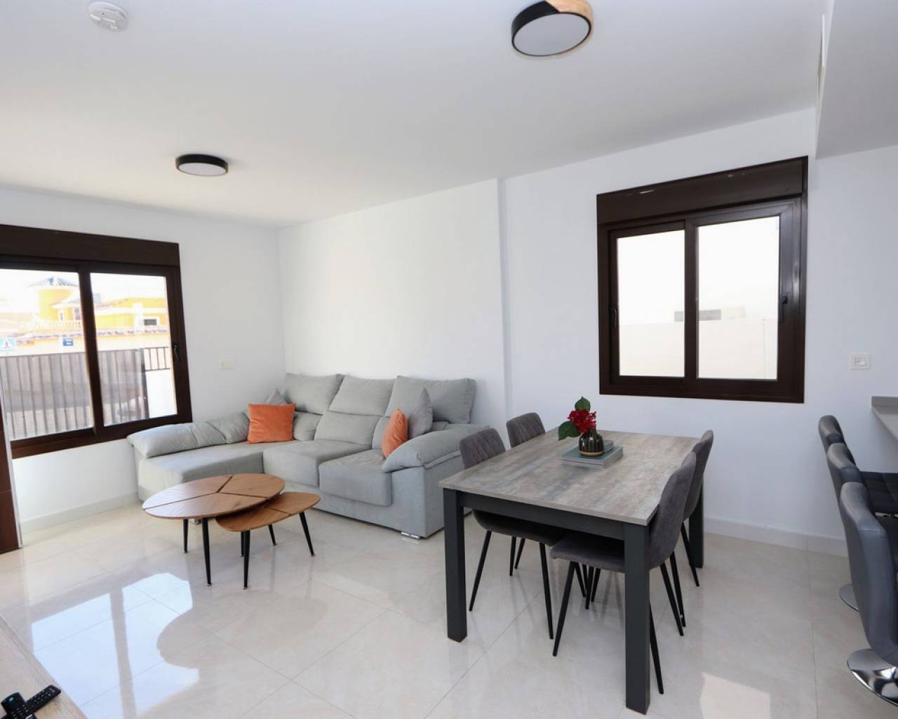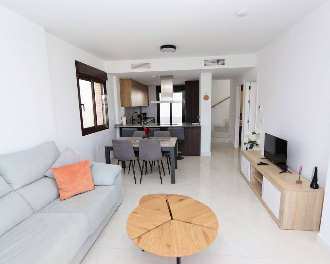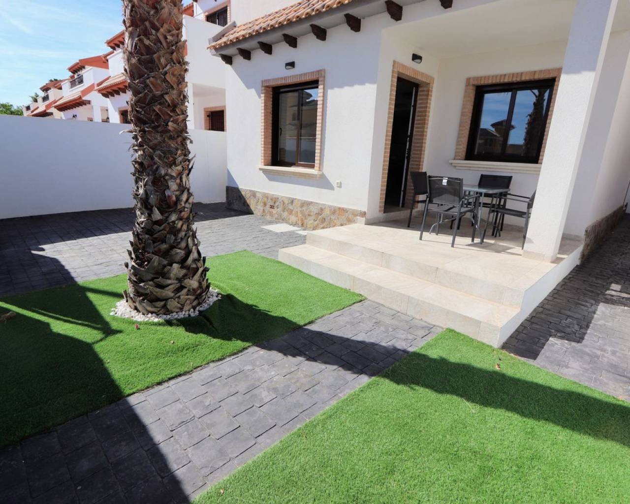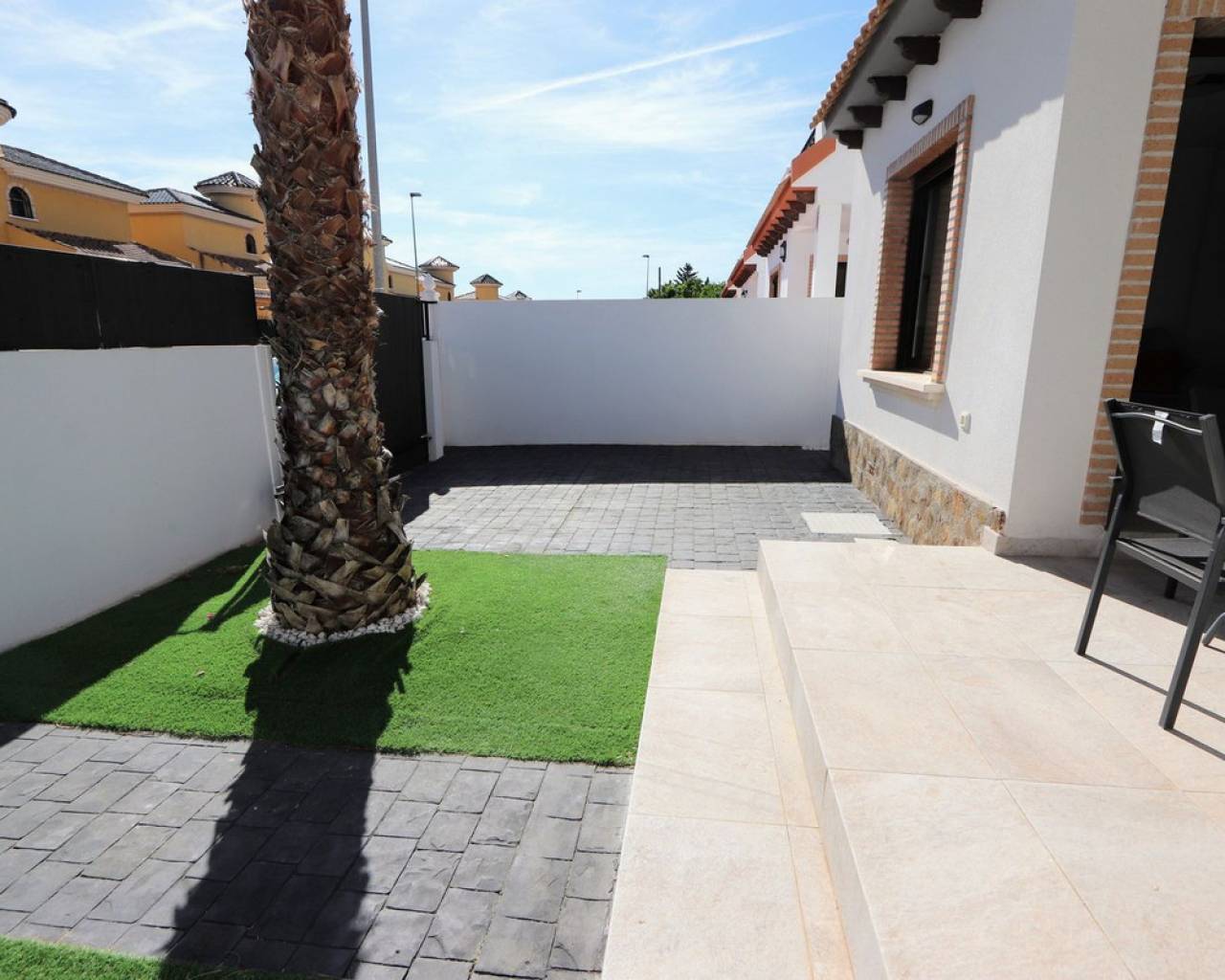 Eche un vistazo a esta fabulosa villa independiente ubicada en Villamartín. Esta propiedad cuenta con 3 dormitorios, 2 baños, un amplio salón-comedor y una cocina totalmente equipada. También cuenta con una soleada terraza privada, jardín y aparcamiento privado. Para su comodidad, la villa incluye aire acondicionado en toda la vivienda, persianas eléctricas y se vende amueblada. Una de las grandes ventajas de este complejo es la piscina comunitaria, a la que se accede directamente desde la parte trasera de la propiedad. Villamartín se encuentra en el interior, cerca de hermosas playas como Dehesa de Campoamor, Cabo Roig, La Zenia, Playa Flamenca y Punta Prima, aunque forma parte de la zona de Orihuela Costa. El pueblo ofrece varios centros comerciales, siendo Villamartín Plaza el más grande. Esta plaza es un popular destino gastronómico, con un encanto español que evoca la esencia de la Costa del Sol, con sus azulejos de cerámica, balcones de hierro y lámparas, y ofrece una amplia variedad gastronómica y de entretenimiento para todas las edades. Además, el consolidado campo de golf de Villamartín de 18 hoyos está cerca.