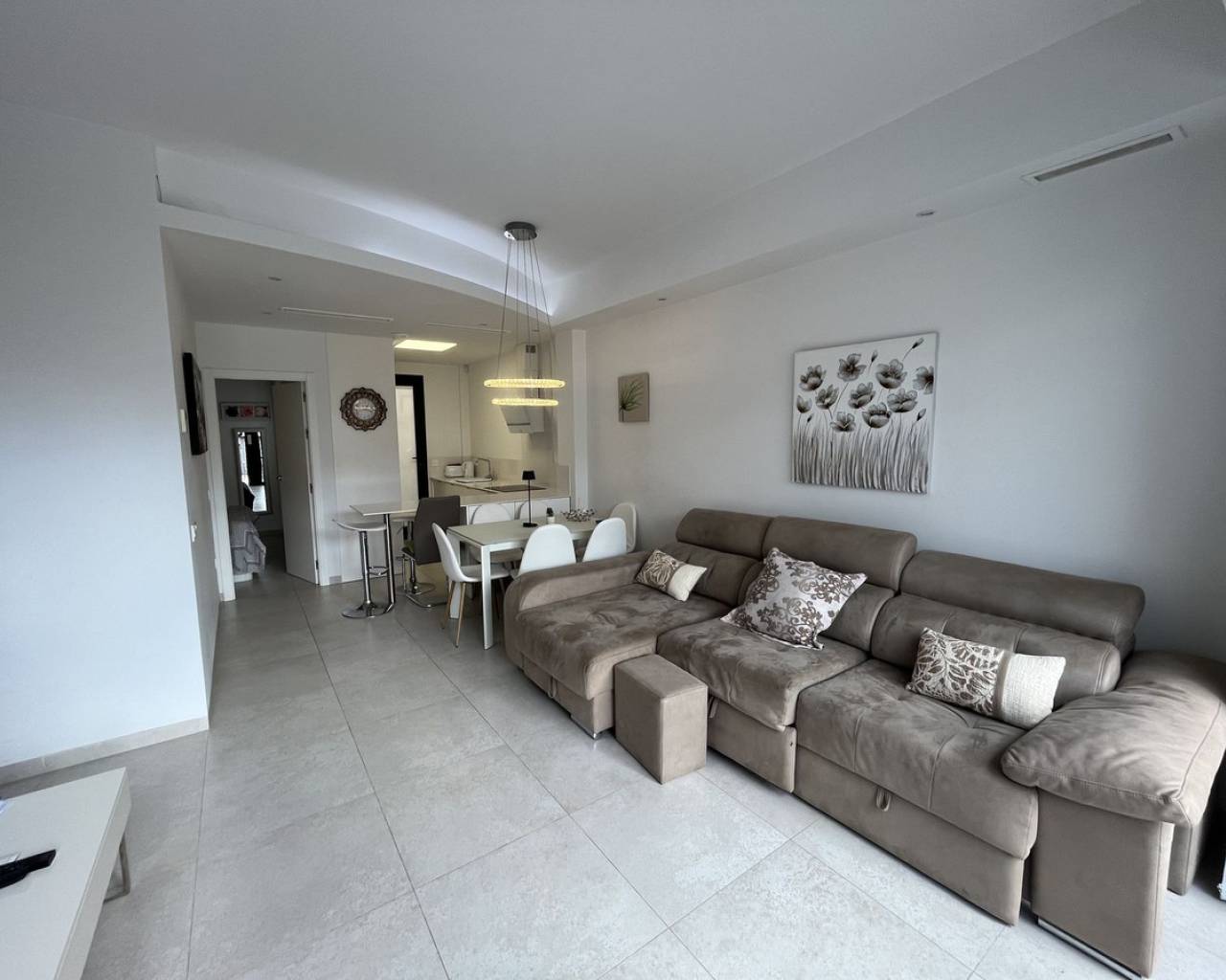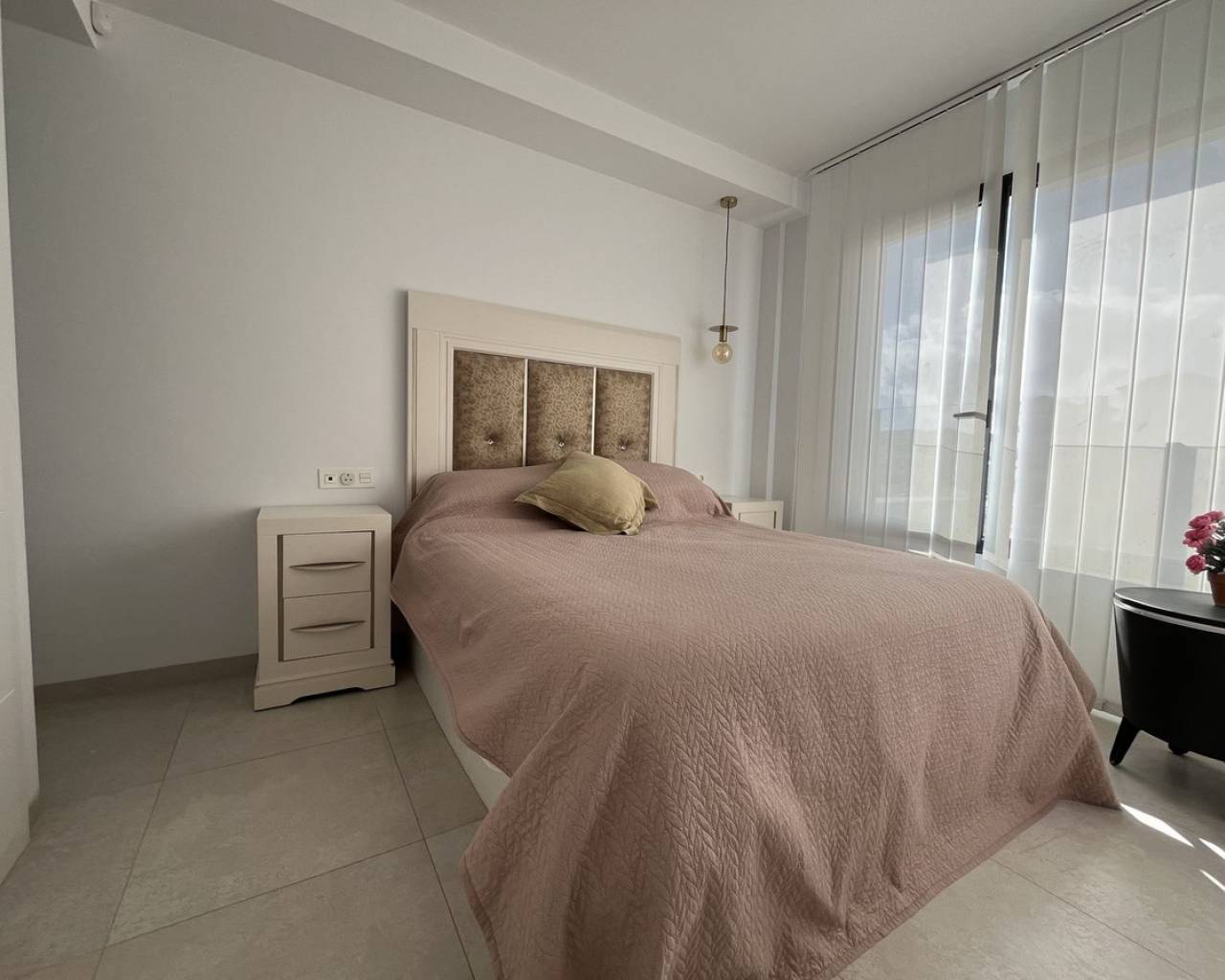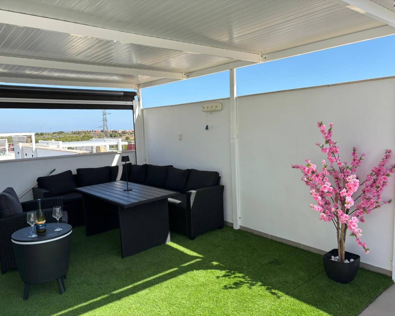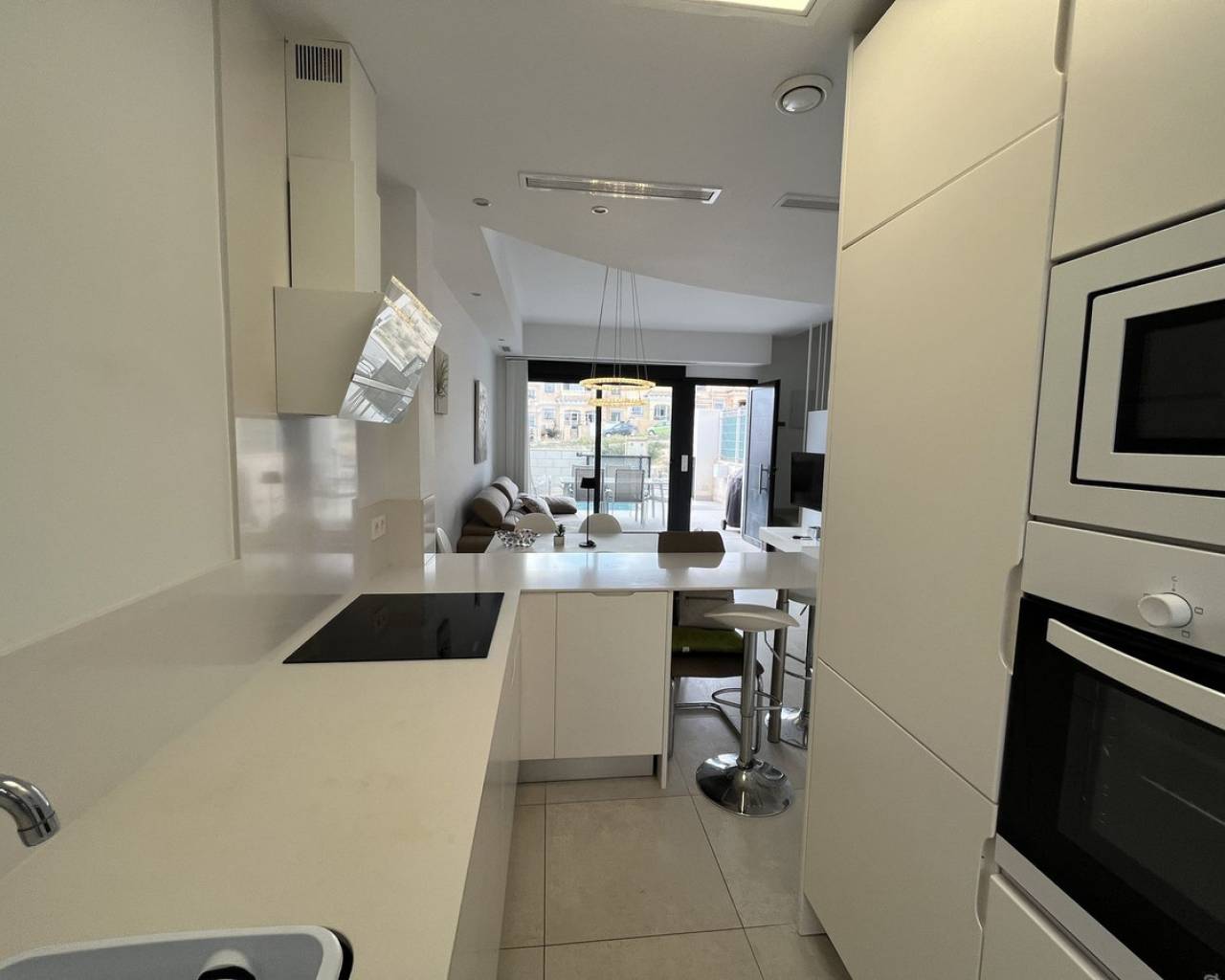 Casa adosada de 3 dormitorios con orientación sur, piscina privada y piscina comunitaria. Descubra el confort contemporáneo en esta impresionante casa adosada de 3 dormitorios y 3 baños, diseñada a la perfección para una vida moderna y relajada. Cada amplio dormitorio cuenta con su propio baño privado, ofreciendo máxima privacidad y comodidad para sus invitados. Disfrute al máximo de la vida al aire libre con su propia piscina privada, además de acceso a una piscina comunitaria impecablemente mantenida, rodeada de jardines paisajísticos, ideal para refrescarse en los días cálidos. Contemple las impresionantes vistas desde el espacioso solárium en la azotea, perfecto para tomar el sol o cenar en privado. La casa, orientada al sur, recibe abundante luz natural durante todo el día, creando un ambiente cálido y acogedor. Ubicación ideal a poca distancia de todos los servicios locales. La propiedad cuenta con licencia turística, ideal para inversión o alquiler vacacional.