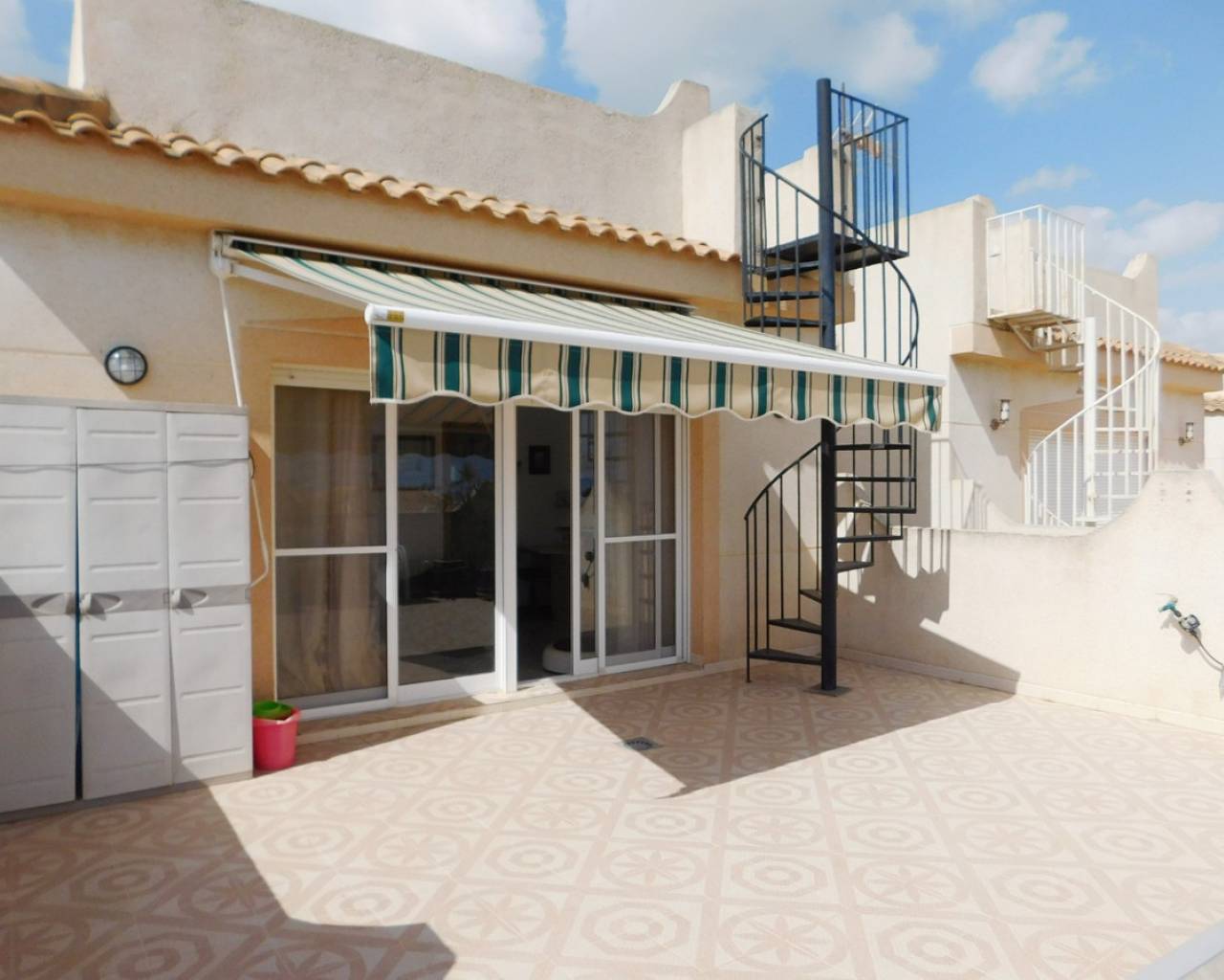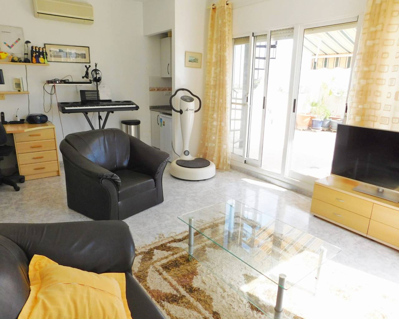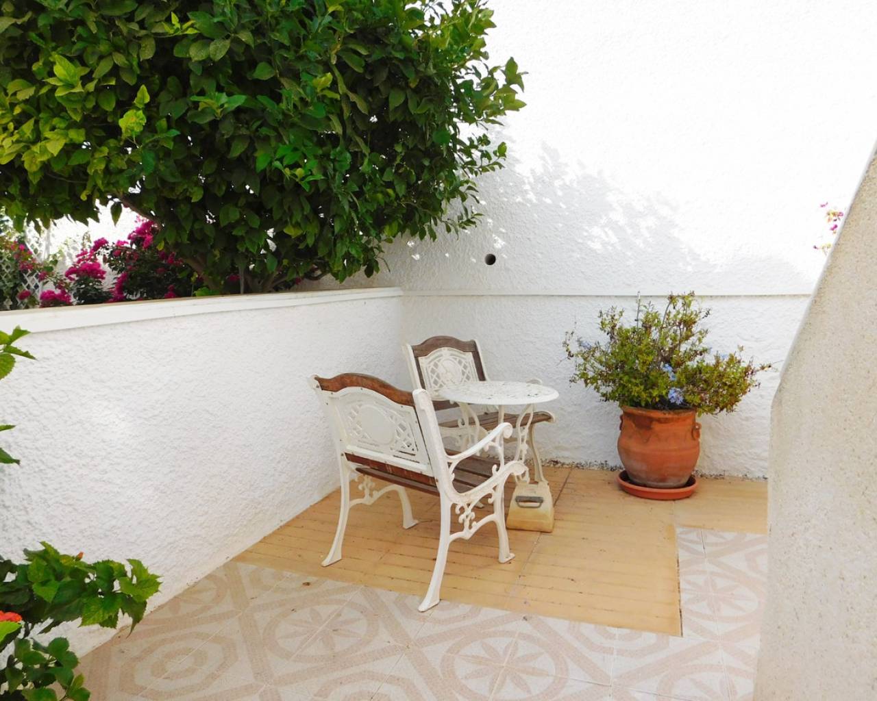 Me enorgullece presentarles esta maravillosa villa independiente en El Galán, en el límite con Villamartín. Consta de 3 dormitorios y 2 baños, construida en 1999 con orientación este. Disfrute de fabulosas vistas al mar desde su balcón privado y solárium en la azotea. Disfrute de todos los servicios a poca distancia, como el campo de golf de campeonato de Villamartín, el minigolf Greenland y el colegio privado internacional. Incluye calefacción central de gas natural, aire acondicionado, portón eléctrico, toldos con mosquiteras y calentador de agua solar. El jardín es de fácil mantenimiento, con árboles maduros, barbacoa de obra y macetas. Dispone de ducha exterior y tres trasteros. Breve descripción de la propiedad: Al entrar, le da la bienvenida la piscina privada que da a la terraza delantera. Al entrar, se encuentra el espacioso salón en forma de L y la cocina de estilo francés totalmente equipada. En esta planta, hay dos dormitorios dobles y un baño familiar, y el apartamento anexo independiente en la planta superior se accede por una escalera exterior. Consta de un salón abierto con cocina, un dormitorio doble y un baño independiente. Desde aquí se accede al amplio balcón y a las escaleras de caracol que conducen al solárium de la azotea, con magníficas vistas de los alrededores y el mar. Semiamueblado. Blue Lagoon tiene todo lo que necesita a su alcance, con una gran variedad de bares, restaurantes y tiendas, incluyendo peluquerías, mueblerías y grandes supermercados. Hay un excelente colegio internacional cerca y el campo de golf de Villamartín está a solo 3 minutos en coche. También hay otros 6 campos de golf de campeonato cerca. A solo 10 minutos en coche se encuentran las playas con bandera azul y el centro comercial La Zenia Boulevard. Los gastos de comunidad son 131€ al año siendo la suma 311€ al año.