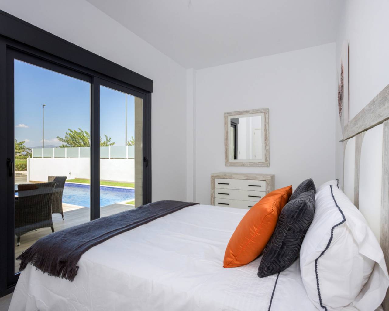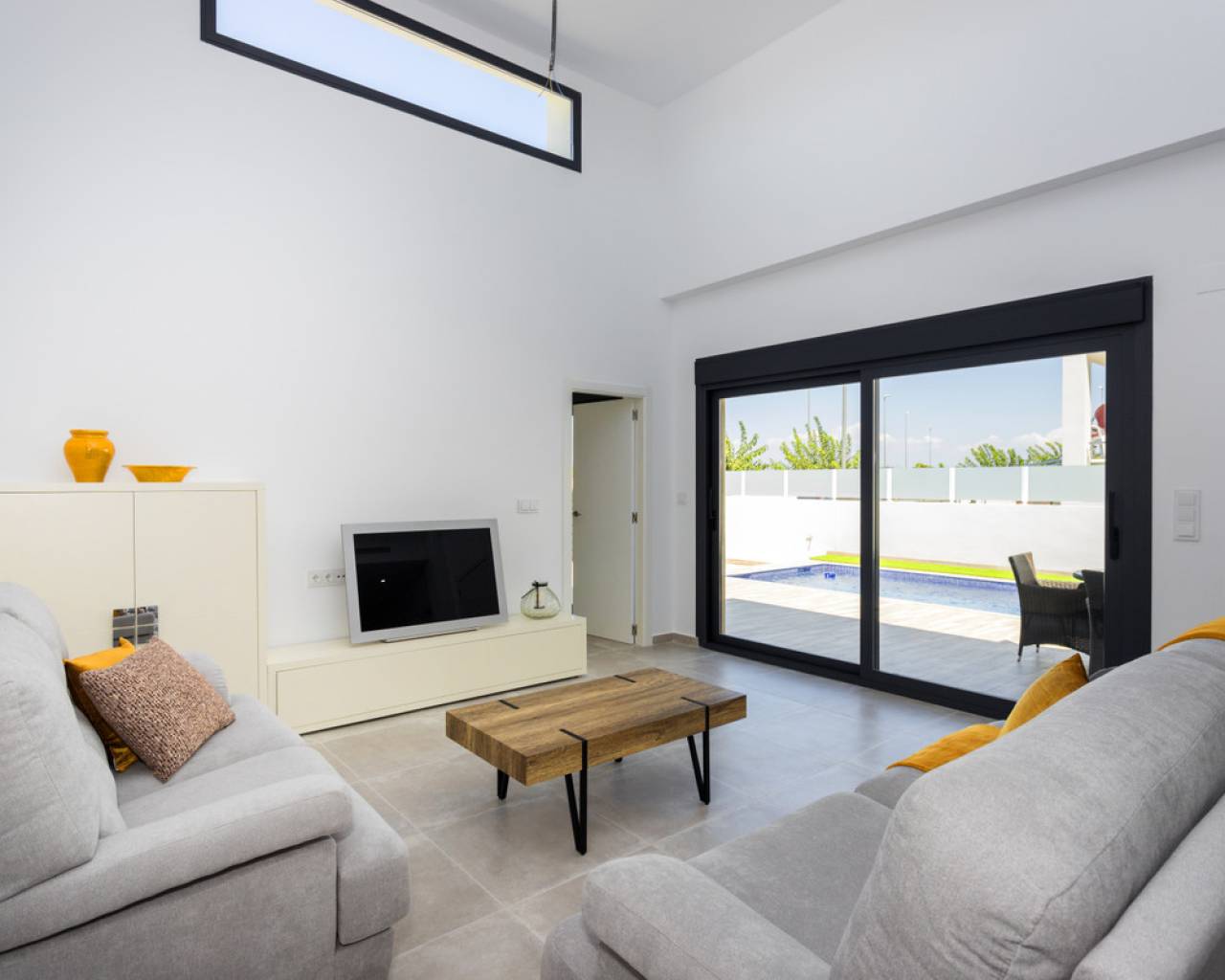 EL ESTILO DE VIDA MEDITERRÁNEO TODO EN UN NIVEL Esta promoción es la combinación perfecta entre un estilo de vida rural tranquilo y confortable y las vibrantes zonas costeras de la Costa Blanca. El desarrollo ha sido diseñado con toda la atención al detalle y construido con un alto nivel de detalles. Todas las villas tendrán su propia piscina privada. TU PROPIO ESPACIO PARA VIVIR, TODO A UN NIVEL Se ha incorporado un enfoque luminoso, fresco y moderno en el diseño. Estas villas están ubicadas en un pequeño pueblo en el sur de la provincia de Alicante. El pueblo se llama Daya Nueva. Villas de nueva construcción en una sola planta en la parte nueva de Daya Nueva. A pocos minutos andando del centro del pueblo. La propiedad consta de 3 dormitorios, 2 baños y una piscina privada de 18m2. Salón / comedor con techo de doble altura, cocina abierta, luz natural y opción para solarium. El dormitorio principal tiene opción de walk in closet y baños en suite. Situado en una zona residencial nueva y tranquila, a unos 10 minutos de la playa de La Marina del Pinet y Guardamar del Segura. Fácil acceso a la autopista A-70 y aproximadamente a 25 minutos del aeropuerto internacional de Alicante.