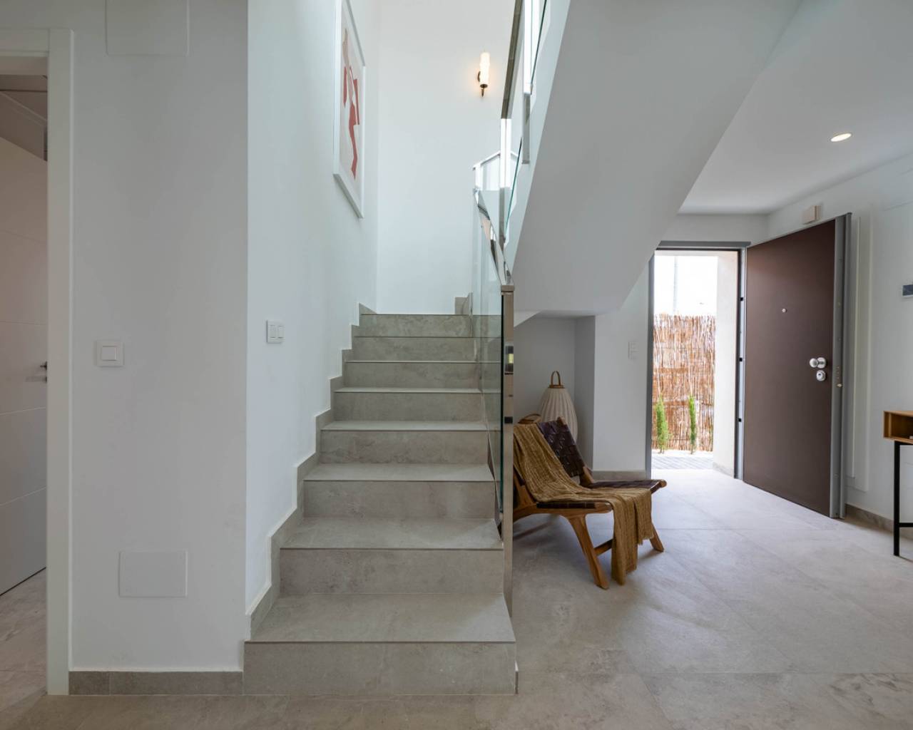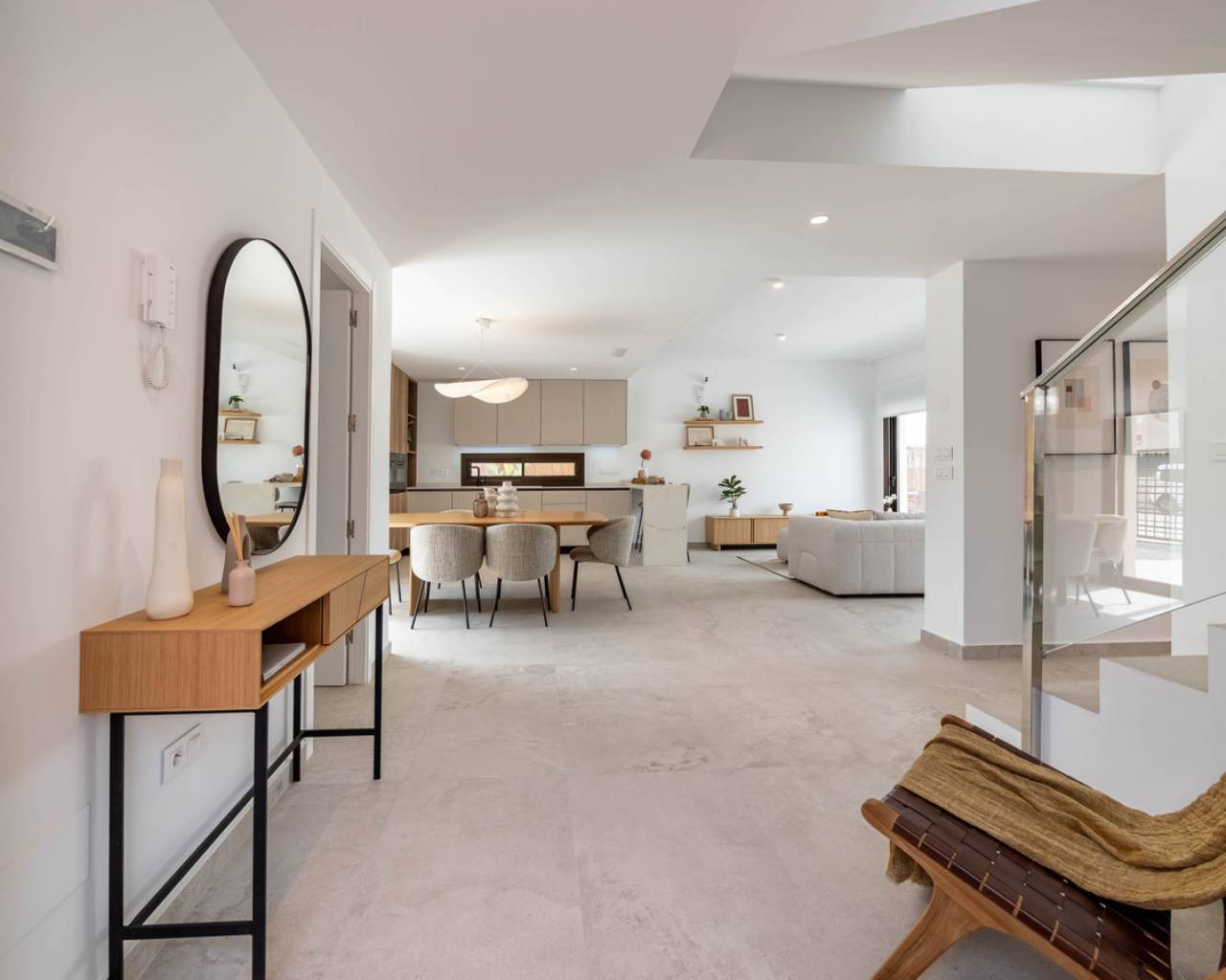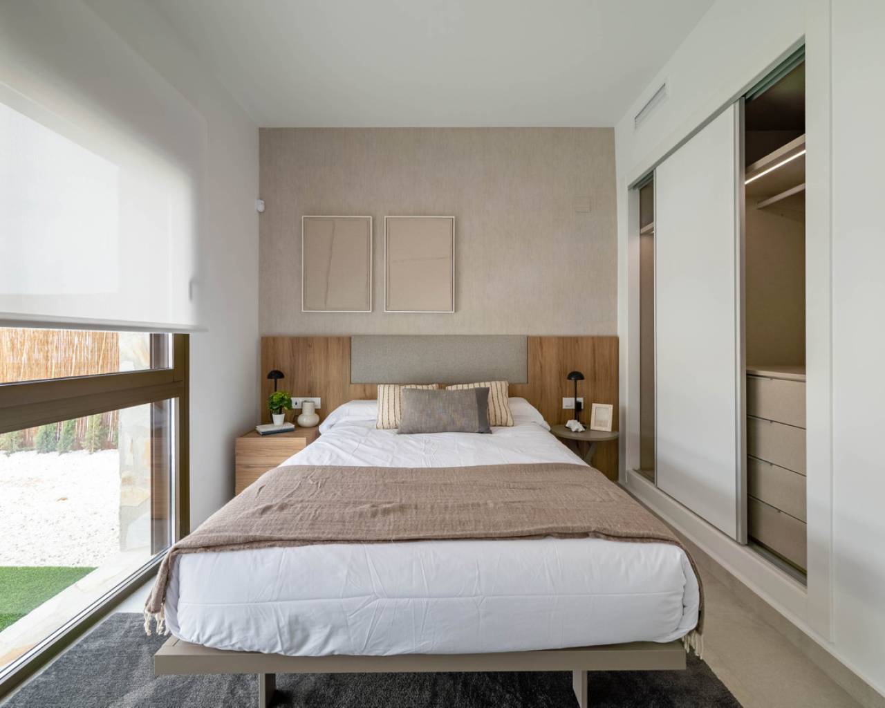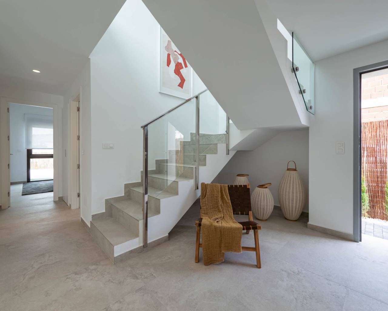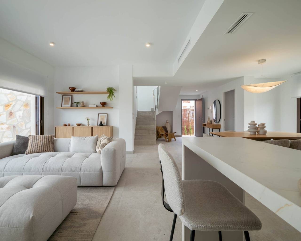 Estas Villas están situadas en Algorfa en el entorno de uno de los Resorts de 5 estrellas con campo de golf más exclusivos de España en el extremo sur de la provincia de Alicante. Su privilegiada ubicación junto a La Finca Golf & Spa Resort permite disfrutar de todos los servicios que ofrece el complejo. Además, se encuentra próximo a las más bellas playas del sur de la Costa Blanca y a lugares de excepcional belleza como las Salinas Rosadas de Torrevieja y las Dunas de Guardamar del Segura. Su proximidad y fácil acceso a la autopista AP-7 y a las principales carreteras nacionales conectan estas villas con numerosas localidades de la Costa Blanca, como Orihuela, Cartagena, Elche, Murcia y Alicante. Los aeropuertos de Alicante y Murcia están a menos de 40 km y ofrecen conexiones con las principales capitales europeas. Alicante, la capital de la provincia, está a menos de una hora en coche. El nuevo proyecto consta de 6 villas, cada una con 3 dormitorios y 2 baños en dos niveles, incluyendo una cocina totalmente equipada y una piscina privada. Características como aparcamiento interior privado, persianas eléctricas, aire acondicionado por conductos, un sistema domótico de gestión y un sistema de alarma totalmente equipado son algunas de las principales especificaciones de esta exclusiva promoción. Sol todo el día. Las propiedades de concepto abierto con ventanas y puertas correderas que permite la ventilación cruzada y deja entrar la luz. Las viviendas están situadas de tal forma que la luz entra por todas partes, pero al mismo tiempo ofrecen rincones frescos y acogedores. Diseño Exclusividad con diseño contemporáneo Estas villas nos conectan con las antiguas culturas mediterráneas y la tradición constructiva combinada con la arquitectura moderna para crear hogares con encanto, reflejando nuestro compromiso y esfuerzo por ofrecerle lo mejor en espacio y tendencias de diseño. El diseño combina líneas modernas con elementos tradicionales como la piedra en la fachada y la madera, añadiendo la calidez de la construcción tradicional. La distribución de las viviendas maximiza el aprovechamiento de la luz solar natural a lo largo del día y potencia la privacidad y la ventilación cruzada.