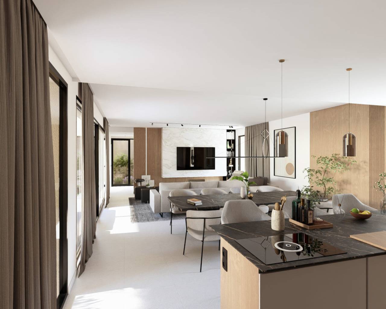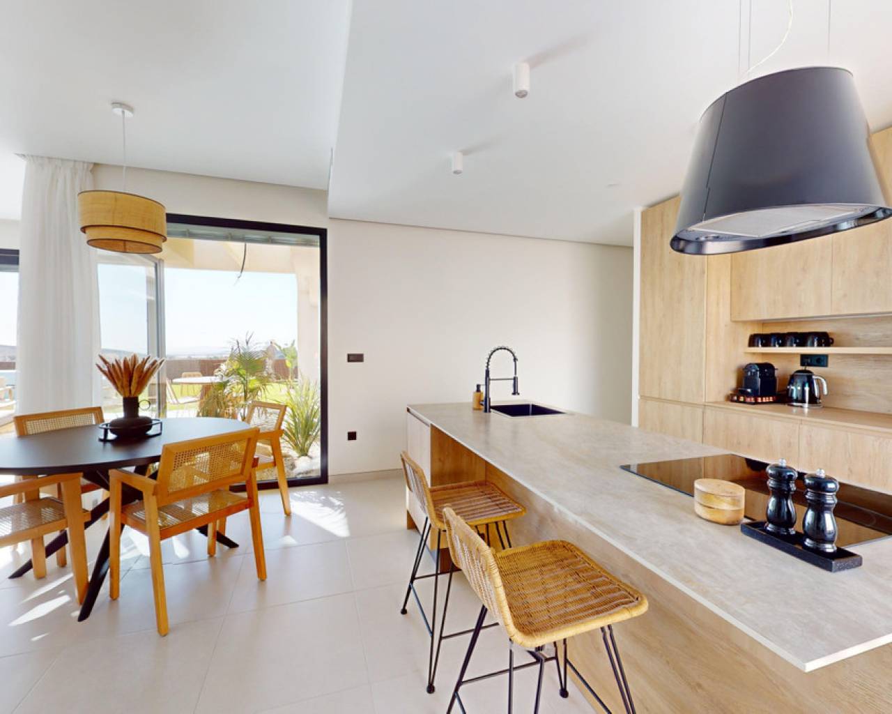 Estas viviendas han sido meticulosamente diseñadas para ofrecerle, tanto desde el interior como desde el exterior, vistas infinitas al campo de golf, a los serenos lagos y al paisaje montañoso que se extiende hacia el horizonte. Con un extenso jardín con piscina privada y estratégicamente orientadas hacia el sur, podrá disfrutar de la vida al aire libre y del cálido sol murciano.