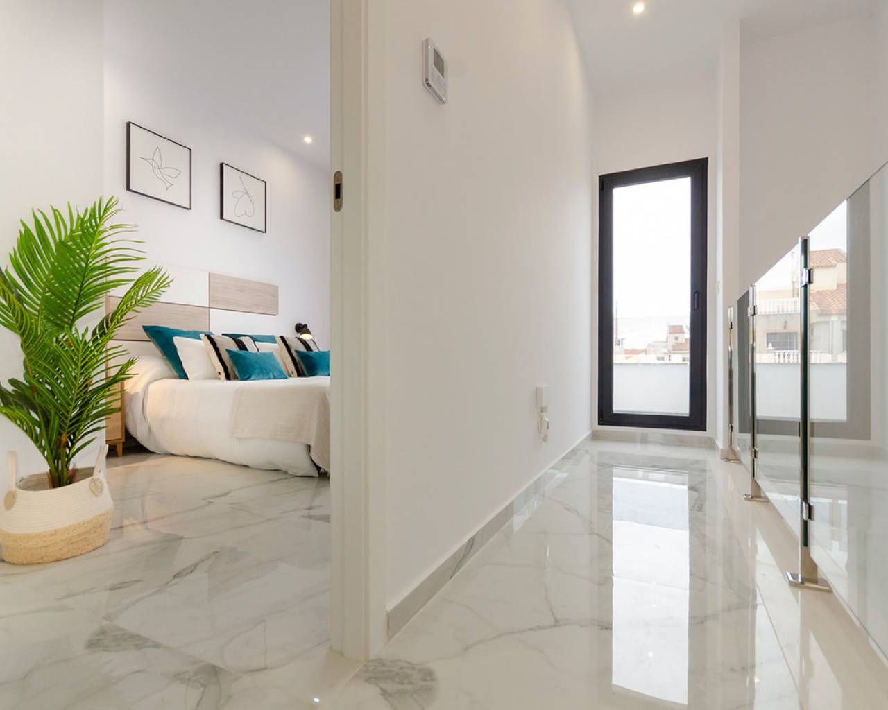 Con vistas a la singular y encantadora Laguna Rosa, y rodeado de todos los servicios que puedas necesitar: supermercados, hipermercados, Centro Comercial Habaneras, colegio, instituto.. Muy cerca de las internacionales playas de Torrevieja, Guardamar y Orihuela costa. A 40 minutos del Aeropuerto Internacional de Alicante. Todas las casas tienen muy buena orientación al sureste o suroeste, con muchas horas de sol y luz natural. Estas excelentes viviendas mediterráneas independientes ofrecen una óptima relación calidad-precio, todas con parcela independiente con espacio de parking, piscina privada, y una magnífica distribución: En la planta baja cuentan con amplia zona de salón-comedor y cocina abierta, 1 dormitorio con armario empotrado, 1 baño completo y porche de acceso a la vivienda. La planta primera se distribuye en 2 grandes dormitorios con armarios empotrados, 2 baños en suite y una terraza en cada dormitorio. Opcionalmente se puede construir un gran solárium terminado de 45,70 m2. Las calidades y acabados de serie de esta obra nueva son excelentes: todas las viviendas incluyen persianas automatizadas, preinstalación de aire acondicionado por conductos, suministro de agua caliente sanitaria a través de placa solar.. Además por tiemplo limitado también se incluye de regalo por cortesía del promotor: • Iluminación interior y exterior • Mamparas de ducha en baños • Electrodomésticos en la cocina