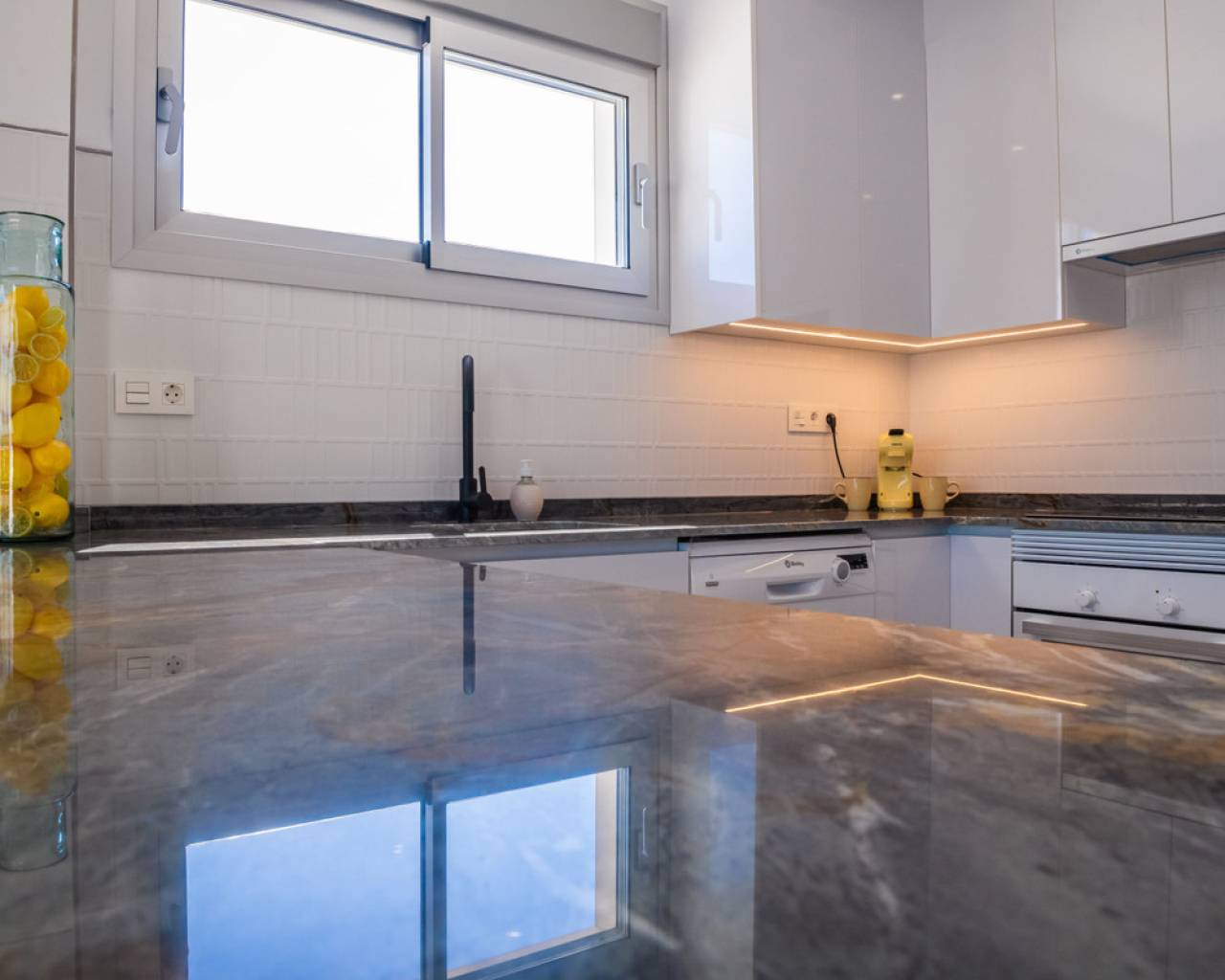 Vivienda de 3 dormitorios, dos baños, trastero y salón-comedor-cocina con solarium en plata alta y garaje cerrado en planta baja.