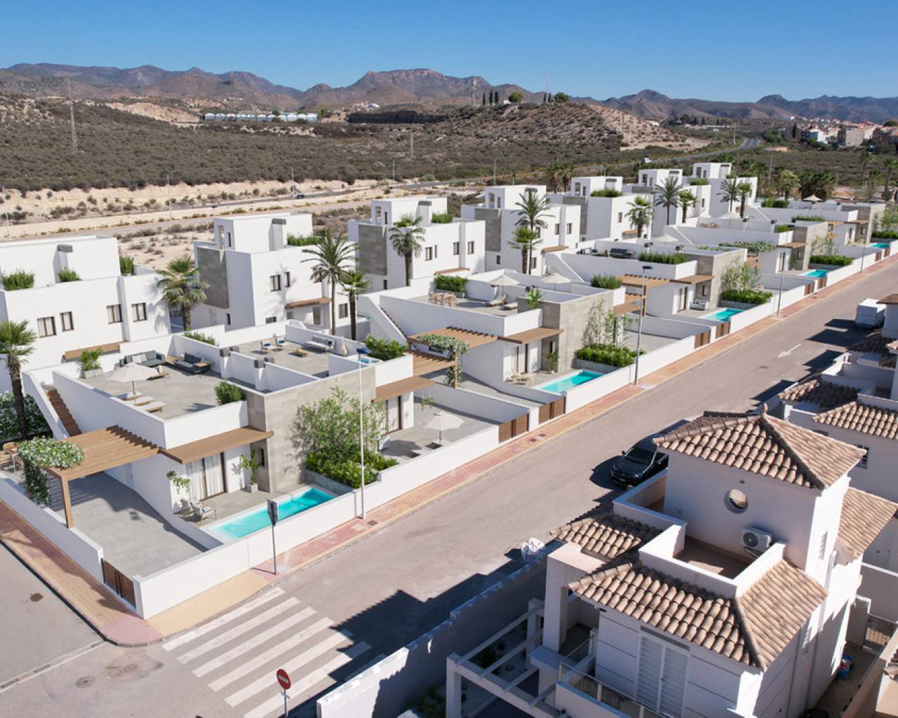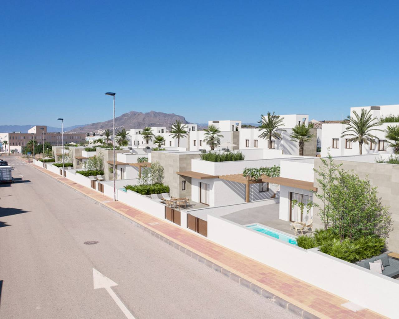 Presenta esta fantástica promoción de 12 villas pareadas en planta baja, situadas en Urbanización Los Caleñares, en Puerto de Mazarrón. Muy próximos a todos los servicios como colegios, supermercados, centros comerciales y paradas de autobuses. Con 88.30 m. de superficie construida, todas las viviendas constan de terraza, salón con cocina americana y despensa, 3 habitaciones dobles y 2 baños. Además de una estupenda terraza SOLÁRIUM. El exterior lo forma una amplia PARCELA en esquina con espacio para APARCAMIENTO y posibilidad de construir una piscina propia. *ENTREGA 2025.
