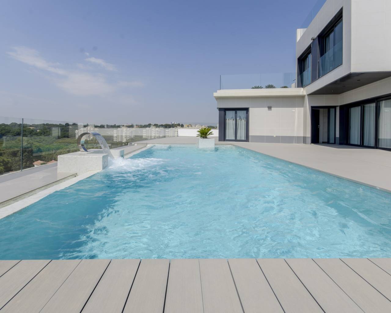 En Dehesa de Campoamor está nuestra promoción estrella. Para los clientes más exigentes se ha creado esta promoción. Un complejo de villas independientes situado en una de las mejores zonas de Campoamor, a tan solo cuatro minutos de las playas de Orihuela y alrededor de todos los servicios imprescindibles como zonas de restauración, supermercados, farmacias, etc..., podemos encontrar este paraíso. Aquí es donde estamos construyendo villas adaptadas exclusivamente a los requisitos de nuestros clientes, que pueden incluir de dos a cinco dormitorios, estacionamiento, un jardín privado y piscinas de diferentes tamaños. Las parcelas tienen alrededor de 500 metros cuadrados, en las cuales los clientes pueden elegir entre 5 modelos diferentes. GEMMA: El modelo Gemma es una Villa independiente de 92m2 diseñada pensando en la practicidad del día a día. La casa es una propiedad de una sola planta que incluye el salón, una amplia cocina, baños y dormitorios. Los clientes pueden elegir entre dos o tres dormitorios, y quienes deseen más espacio pueden añadir un sótano o incorporar un dormitorio adicional en la planta superior. SILVIA El modelo Silvia es una de nuestras Villas más populares. El diseño inigualable de la Silvia se puede elegir con 3 o 4 dormitorios. Este modelo tiene 157m2 y se distribuye entre planta baja, primera planta y solárium. Las ventanas muy grandes aumentan el espacio y proporcionan mucha luz natural a la casa. PENELOPE Una propiedad excepcional construida con un diseño vanguardista y, como en todos nuestros modelos, los mejores y más modernos materiales del mercado. Esta Villa cuenta con 193m2 con 3 dormitorios y 3 baños. Todas las estancias de la casa están orientadas para recibir la máxima cantidad de luz natural gracias a las amplias ventanas en toda la vivienda. MARTA Uno de los modelos más grandes de nuestra gama en este sitio es el modelo Marta, que cuenta con 197m2 de superficie y los clientes pueden elegir entre 3 o 5 dormitorios según sus necesidades. Una distribución bien pensada aprovecha al máximo las principales áreas de estar, con materiales de la más alta calidad que ofrecen un diseño único del cual todos se enamorarán. Los elementos principales del diseño están acabados en blanco con toques de madera y vidrio, creando un espacio relajante y cómodo para vivir y entretener. GRETA La estructura del modelo Greta es única y rompe con todos los estándares que hemos realizado hasta ahora. Con una fachada moderna y un toque mediterráneo, el diseño de Greta es una revolución en toda la casa. El cliente puede elegir entre 3 o 4 dormitorios; la casa ya cuenta con un amplio salón, y se han seleccionado los mejores materiales para diseñar la cocina y los baños de la vivienda.