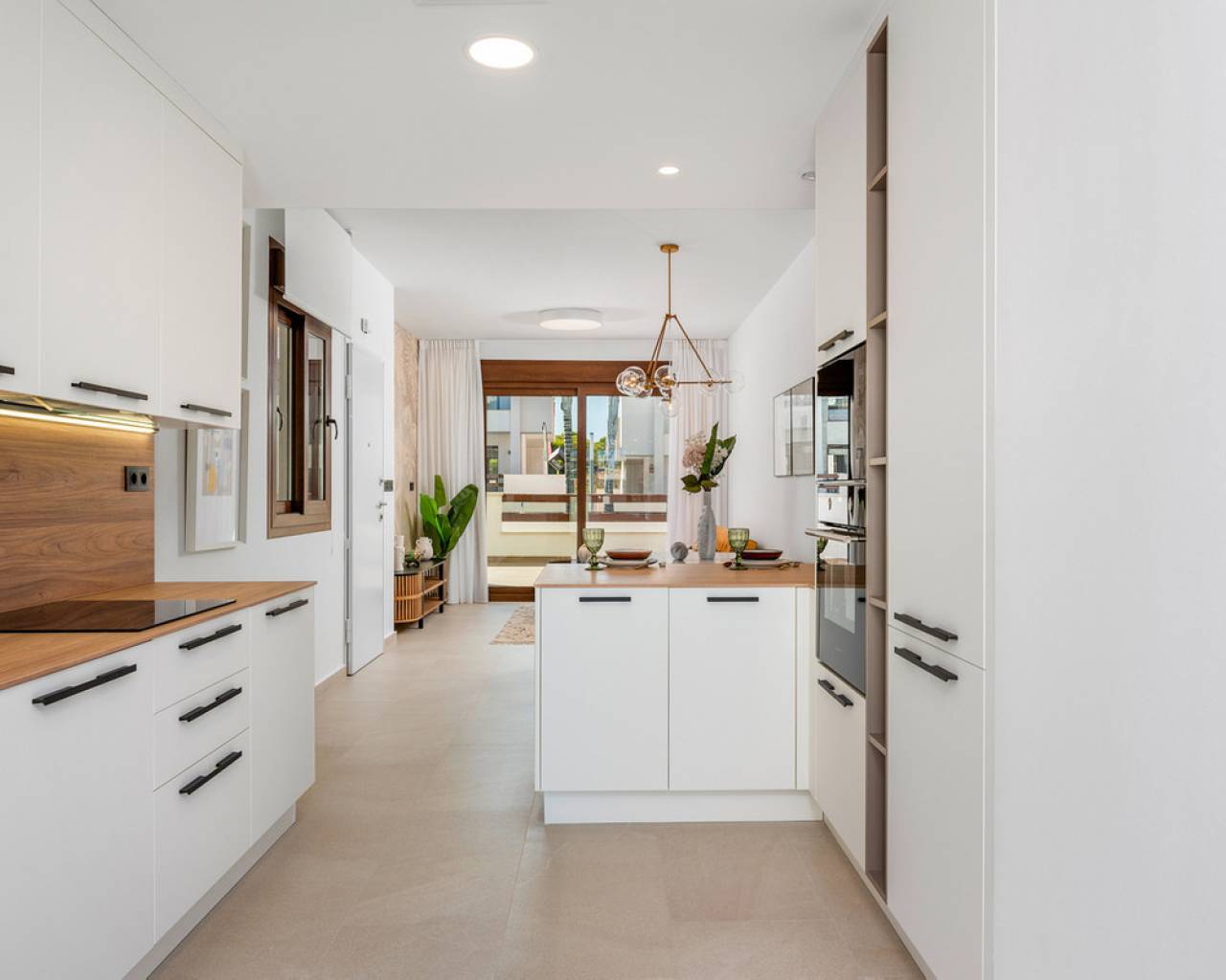 La promoción es un proyecto completamente nuevo que se encuentra en la ladera de una colina con magníficas vistas al lago de sal rosa. Este proyecto consta de 104 apartamentos. La fase I, que ya está a la venta, cuenta con 52 viviendas, 28 de 2 dormitorios y 24 de 3 dormitorios. Los apartamentos de la planta superior ofrecen vistas panorámicas a la laguna salada y los apartamentos de la planta baja tienen grandes terrazas con vistas a la zona verde. Estos apartamentos comparten hermosas áreas verdes y dos grandes piscinas. Este residencial ofrece un diseño moderno, con materiales seleccionados de primera calidad. Parking subterráneo opcional y trasteros disponibles. El complejo está situado en una zona tranquila, al lado de Torrevieja, y es muy especial, no solo en España sino en toda Europa. Junto a las salinas y también al mar Mediterráneo, vives en el aire más limpio y saludable. El residencial se construirá en una ladera; de esta manera, la vista y también el aire son claros y de una calidad única. Cerca de todos los servicios, como bares, restaurantes, supermercados, el hotel Doña Montse, el supermercado Mercadona, el centro comercial Zenia Boulevard, etc. Además, encontrará 4 campos de golf a poca distancia, incluido el galardonado Las Colinas Golf & Country Club.