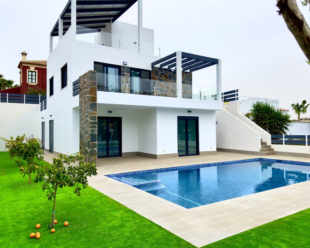 Villa en primera línea del campo de Golf La Marquesa. Esta villa cuenta con ascensor en todas las plantas de la villa, con una distribución de 1 habitación, 2 suites, 3 baños, salón amplio y confortable, cocina, terrazas con vistas al campo de golf, zona de deporte y sauna, piscina privada. Contamos con calificación ENERGÉTICA A, apostando por la bioconstrucción, villas ecoeficientes del sigo XXI. Cuenta con 424,00 m2 de superficie de parcela, 302,79 m2 de superficies útiles, 122 m2 metros construidos