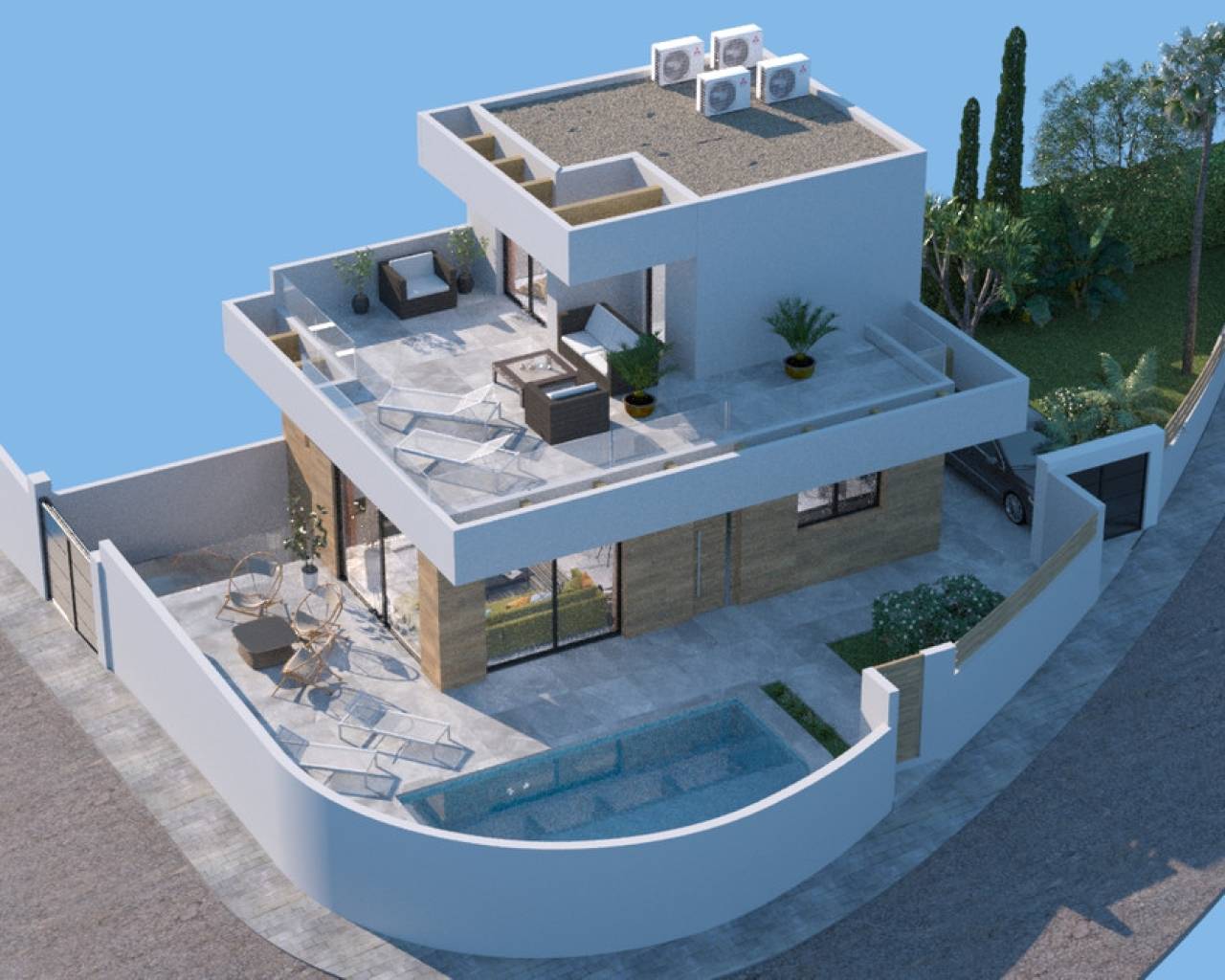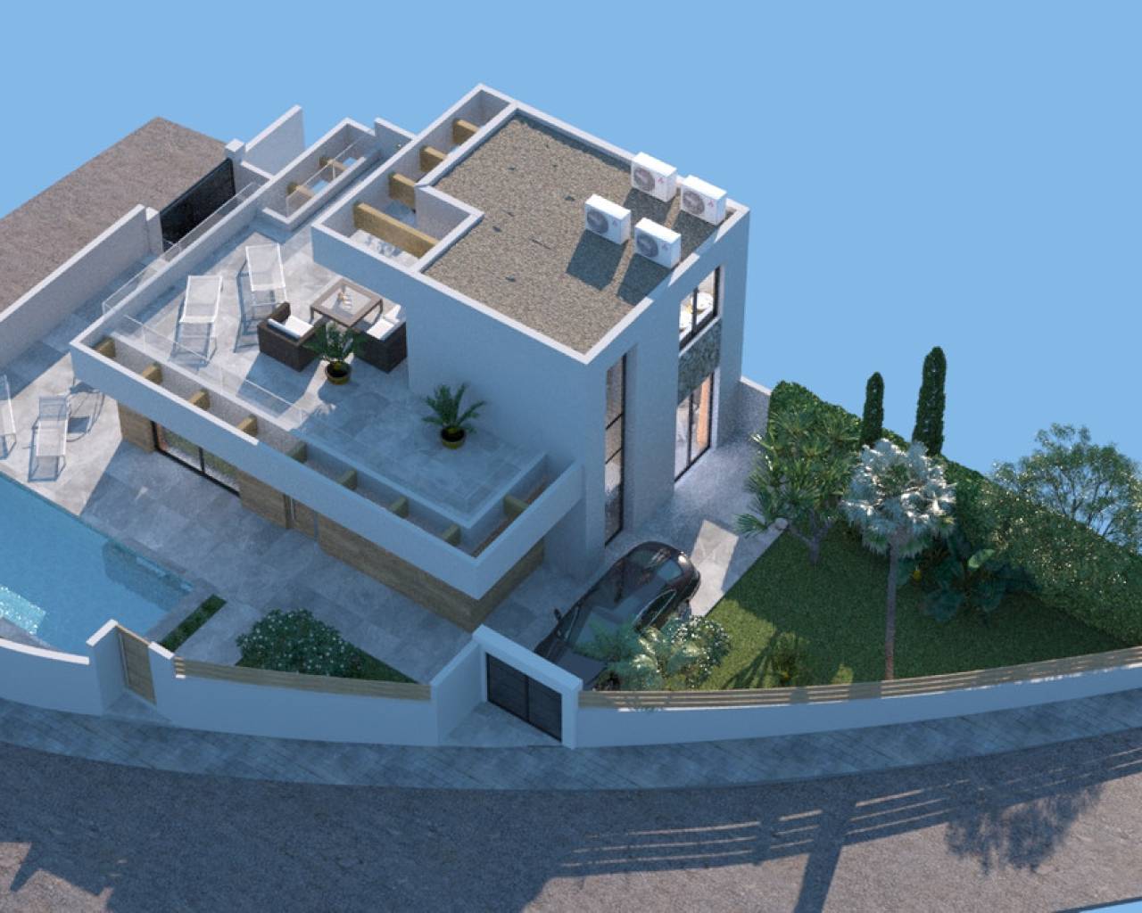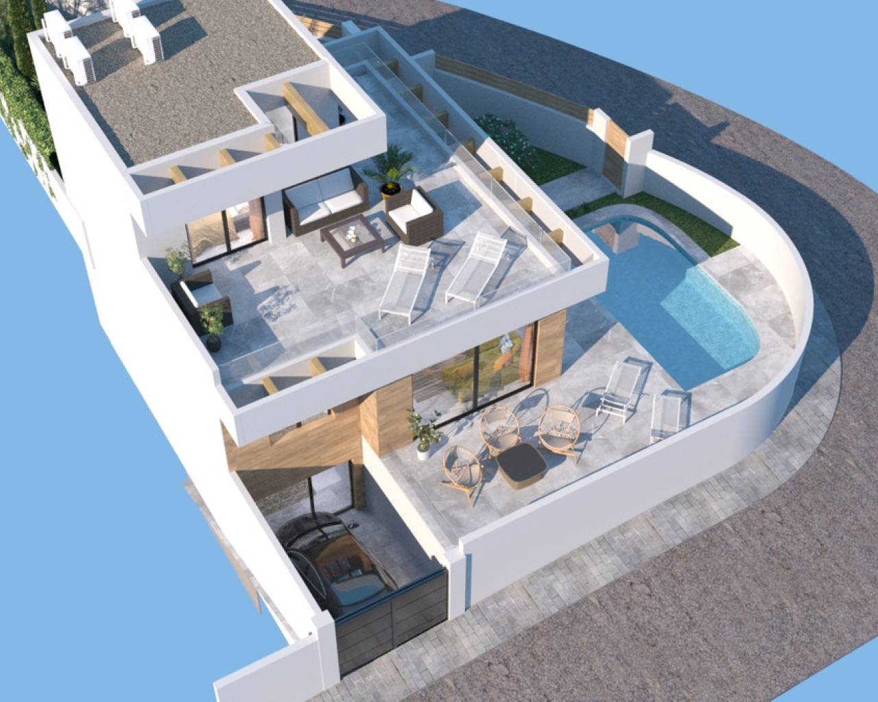 Villa situada a 50 metros del campo de Golf La Marquesa, incluye piscina y terrazas en la parte de jardín y piscina. Dispone de solarium y una amplia zona de parking. A escasos metros del centro comercial con tiendas, supermercado, bares y restaurantes internacionales. A 5 minutos del pueblo Rojales y a 15 de las playas de Guardamar. El aeropuerto está a 35 minutos.
