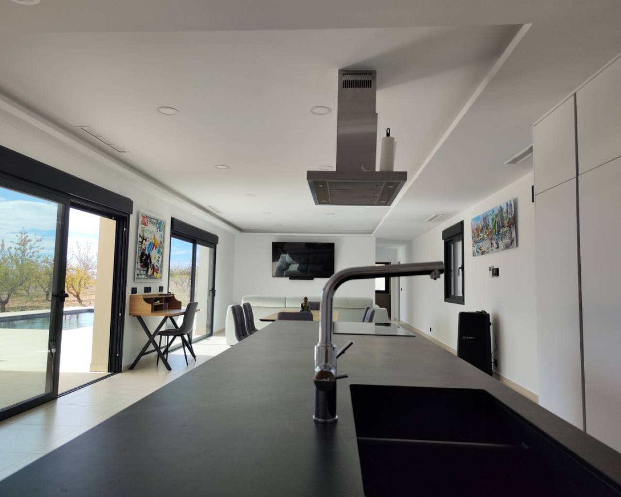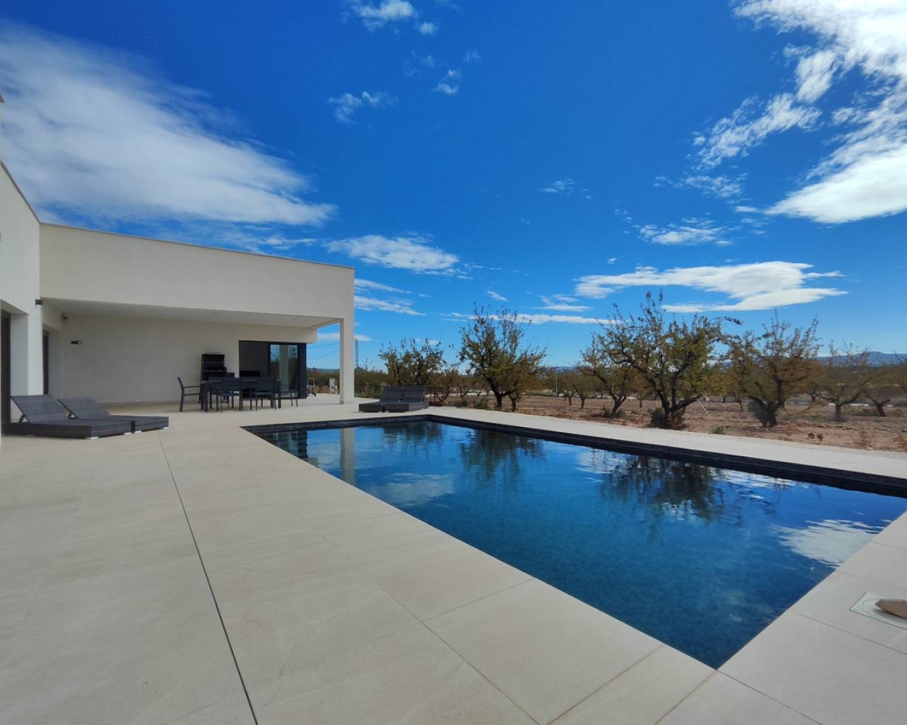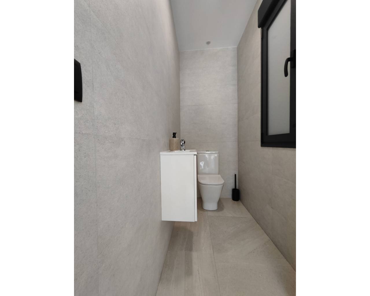 Las villas son modernas y completamente independientes, lo que significa que se adaptan a las necesidades específicas de cada cliente, ofreciéndoles la posibilidad de elegir entre parcelas rústicas o urbanas. Además, se destacan por su diseño personalizado y flexibilidad en cuanto a ubicación. Las parcelas disponibles se encuentran en varias ubicaciones en la provincia, como:Aspe, Monforte del Cid, La Romana, Pinoso, Salinas, Yecla, Elche Estas áreas son conocidas por su tranquilidad, belleza natural y proximidad a importantes centros urbanos, lo que las convierte en lugares ideales para aquellos que buscan viviendas independientes en un entorno agradable y accesible. Construcción y Estructura Fundación y Estructura: Fundación de hormigón con vigas y losas de hormigón armado. Aislamiento térmico e impermeabilización para techo y terrazas. Paredes Exteriores: Bloques de hormigón celular (Ytong) o bloques de termoarcilla con mortero resistente al agua. Paredes Interiores: Ladrillo cerámico o paneles de yeso con aislamiento térmico. Aislamiento Acústico y Térmico: Materiales de alta calidad que proporcionan un excelente confort térmico y acústico. Características Interiores Suelos: Baldosas de porcelana de alta calidad (hasta 20 €/m²) en toda la villa. Pintura: Tonos neutros de pintura plástica en las paredes. Techos: Techos suspendidos de paneles de yeso, con acabado liso en áreas de mantenimiento. Distribución Interior: Paredes de cerámica o paneles de yeso, paneles resistentes al agua en áreas húmedas. Cocina Totalmente Equipada: Cocina personalizada con muebles de melamina, electrodomésticos de alta calidad (placa de inducción, horno, microondas, extractor) y encimeras de cuarzo o granito. Grifo del Fregadero: Fregadero de acero inoxidable o resina con grifo monomando. Baños Acabados: Azulejos de cerámica de alta calidad (hasta 20 €/m²). Accesorios: Inodoros suspendidos con cisternas ocultas, platos de ducha de resina antideslizante, columnas de ducha cromadas. Almacenamiento: Muebles de baño de melamina con lavabo integrado y espejo. Carpintería Exterior: Ventanas de aluminio con rotura de puente térmico y doble acristalamiento (Climalit). Persianas enrollables motorizadas. Interior: Puertas lacadas en blanco, puerta de entrada de seguridad, armarios empotrados. Espacios Exteriores Pavimentación: Acera de cerámica que rodea la villa, grava (1.000 m²) en parcelas rústicas. Vallas: Muro decorativo con puerta motorizada y valla de malla metálica en parcelas urbanas. Piscina: Piscina de tamaño personalizado con zona pavimentada alrededor (50 m²), acabada con azulejos de cerámica antideslizantes. Instalaciones Fontanería y Agua Caliente: Tuberías multicapa, alcantarillado de PVC y paneles solares para agua caliente. Electricidad: Sistema eléctrico completamente instalado con mecanismos LEGRAND y luminarias LED empotradas. Aire Acondicionado: Preinstalación de aire acondicionado en toda la casa (excepto en zonas húmedas). Personalización Las villas ofrecen un alto grado de personalización en términos de acabados, desde el suelo y el diseño de la cocina hasta los accesorios y colores de los baños. En resumen, estas villas ofrecen una construcción moderna y de alta calidad, con sistemas eficientes en términos de energía, interiores personalizables y materiales premium para crear un espacio de vida cómodo y contemporáneo.