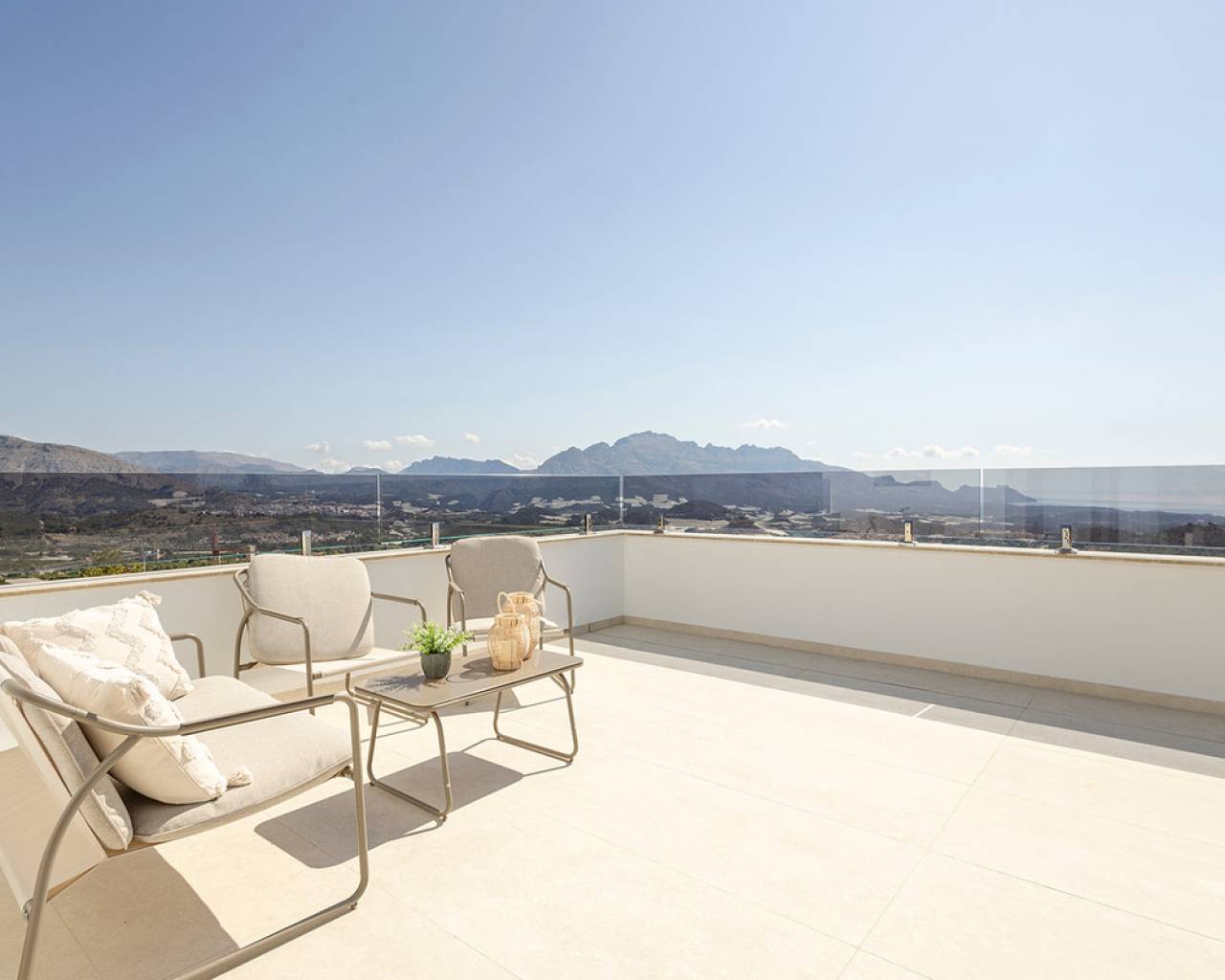 36 Nuevas villas de lujo con todo el calor, modernidad, espacio y encanto del Mediterráneo + Certificación de Eficiencia Energética Clase A La ubicación es ÚNICA: es la parcela más alta que encontrará en el espectacular entorno del Monte Ponoig ("el león dormido"), con vistas al mar y a la montaña. A 20 minutos de las playas de Benidorm y Altea, y con acceso rápido a todo tipo de servicios, como los numerosos colegios internacionales de la zona (Elian's British School, Den norske skole Costa Blanca). A 45 minutos del Aeropuerto Internacional de Alicante. Todas las villas cuentan con una gran parcela independiente de más de 350 m² con aparcamiento, jardín paisajístico de estilo mediterráneo y piscina privada de 7 x 3 m con zona de playa. Cuidadosamente diseñadas con nuevos materiales en todo el interior, exterior y fachada, y una magnífica distribución. La planta baja cuenta con una gran terraza con porche cubierto, un amplio salón-comedor y cocina abierta, 1 dormitorio grande con armarios empotrados, baño en suite completo y aseo de cortesía. La primera planta cuenta con 2 dormitorios grandes con armarios empotrados, 2 baños en suite y una gran terraza frontal con vistas al mar, desde la cual disfrutar de nuestro bien más preciado: el radiante sol que nos acompaña la mayor parte del año. Con solárium opcional. Las características y acabados estándar de esta nueva promoción son excelentes: todas las viviendas incluyen persianas automatizadas, suelo radiante en todos los baños, preinstalación de aire acondicionado por conductos, columna de hidromasaje en el baño principal y Certificación de Eficiencia Energética Clase A. Esta Certificación Clase A incluye: - Aislamiento térmico y acústico con mayor densidad en todas las ventanas y vidrios (ClimaGuard Premium), así como en la cubierta. - Aportación de fuentes de energía renovables, incluyendo tres paneles fotovoltaicos para producción de electricidad y suministro de agua caliente mediante aerotermia. Esta espectacular ubicación con los mejores amaneceres de la Costa Blanca te espera. ¡Contáctanos para visitas e información adicional!