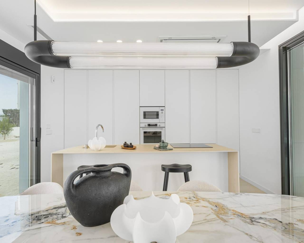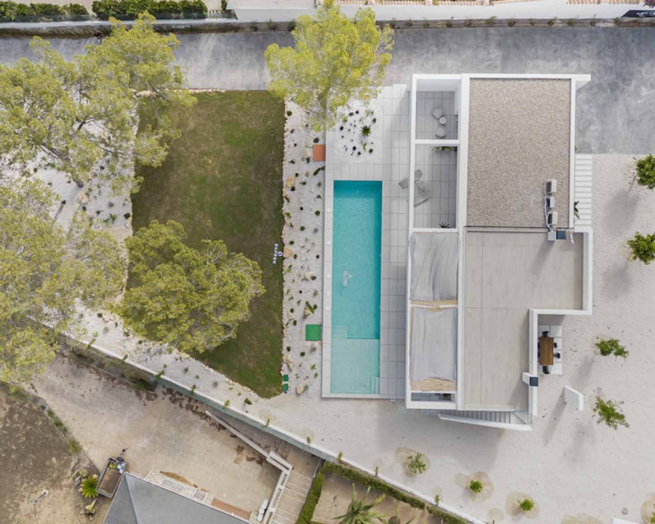 Este proyecto proporciona una bocanada de aire fresco al entrono aprovechando sus espectaculares atardeceres. Siendo este uno de sus puntos fuertes, buscamos estas vistas desarrollamos la vivienda en dos niveles además de acceder al solárium. Se desarrolla el programa con un gran salón-comedor-cocina con una doble altura espectacular, además de disponer de una suite en planta baja para ofrecer una mayor accesibilidad.
