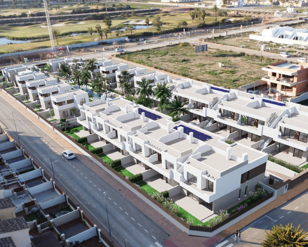 1º Fase, 19 viviendas. 12 Bungalós. 6 en planta baja con jardín y 6 en planta alta con terraza y solárium.