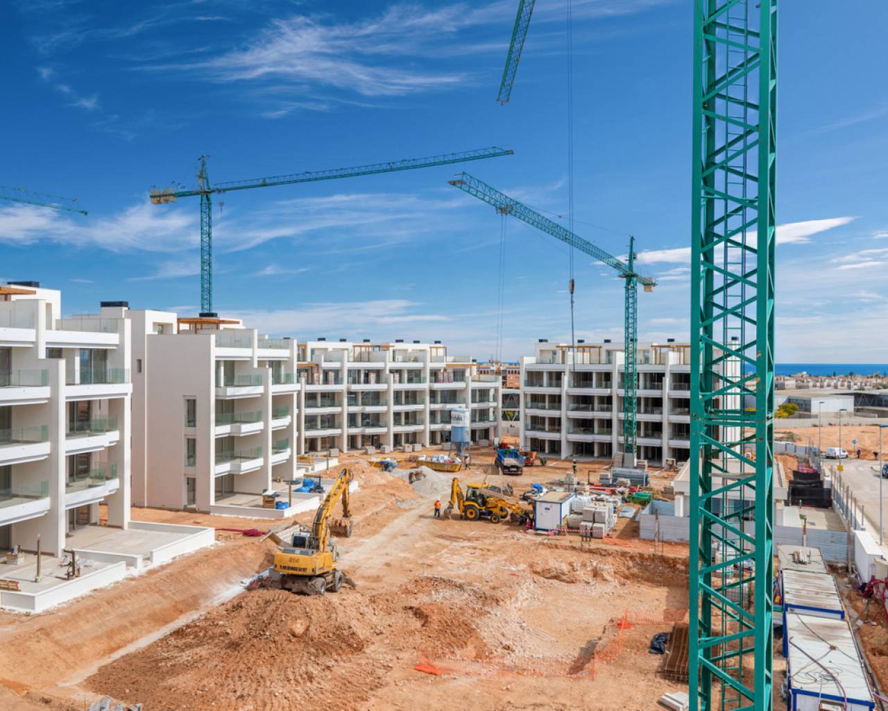 Residencial de 94 de viviendas adosadas, tipo apartamento y bungalow de 2 dormitorios, distribuidas en plantas bajas con jardín o plantas altas con solárium privado.