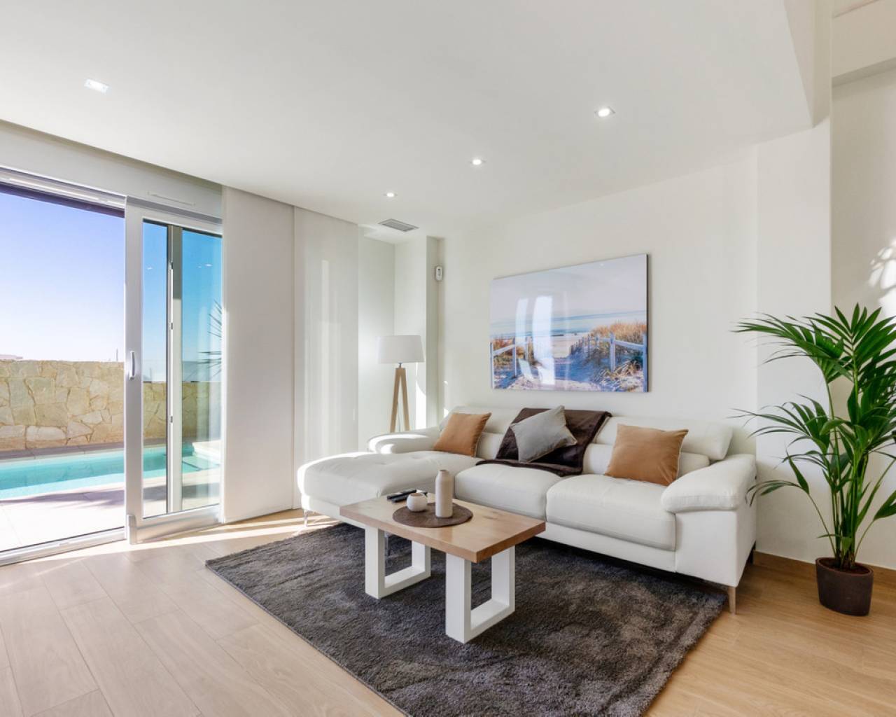 Éste es un exclusivo proyecto residencial que combina diseño moderno, funcionalidad y un entorno privilegiado. Cada detalle ha sido cuidadosamente planeado para proporcionar confort y bienestar, incluyendo áreas verdes, piscina, barbacoa, solárium y unas maravillosas vistas a la laguna de Torrevieja. En esta promoción ofrecemos dos modelos de viviendas para adaptarnos a tus necesidades y preferencias. Nuestra intención es siempre adaptarnos a las preferencias de nuestros clientes.. Una planta 3 habitaciones y 2 baños. Diseñadas para quienes buscan una distribución compacta, funcional y sencilla, ofreciendo comodidad en un solo nivel. Dos plantas 3 habitaciones y 4 baños. Ideales para quienes desean mayor espacio, altura y vistas, con una distribución que maximiza el confort y la amplitud.